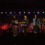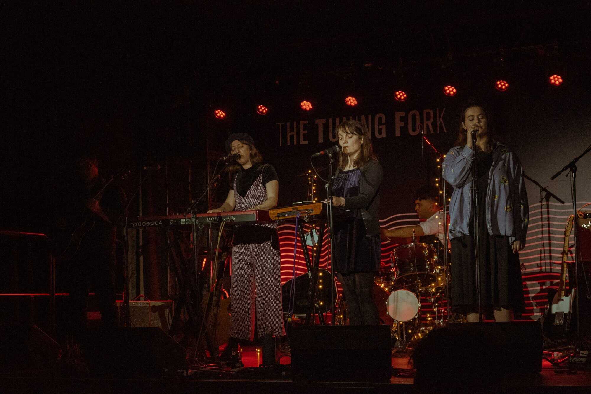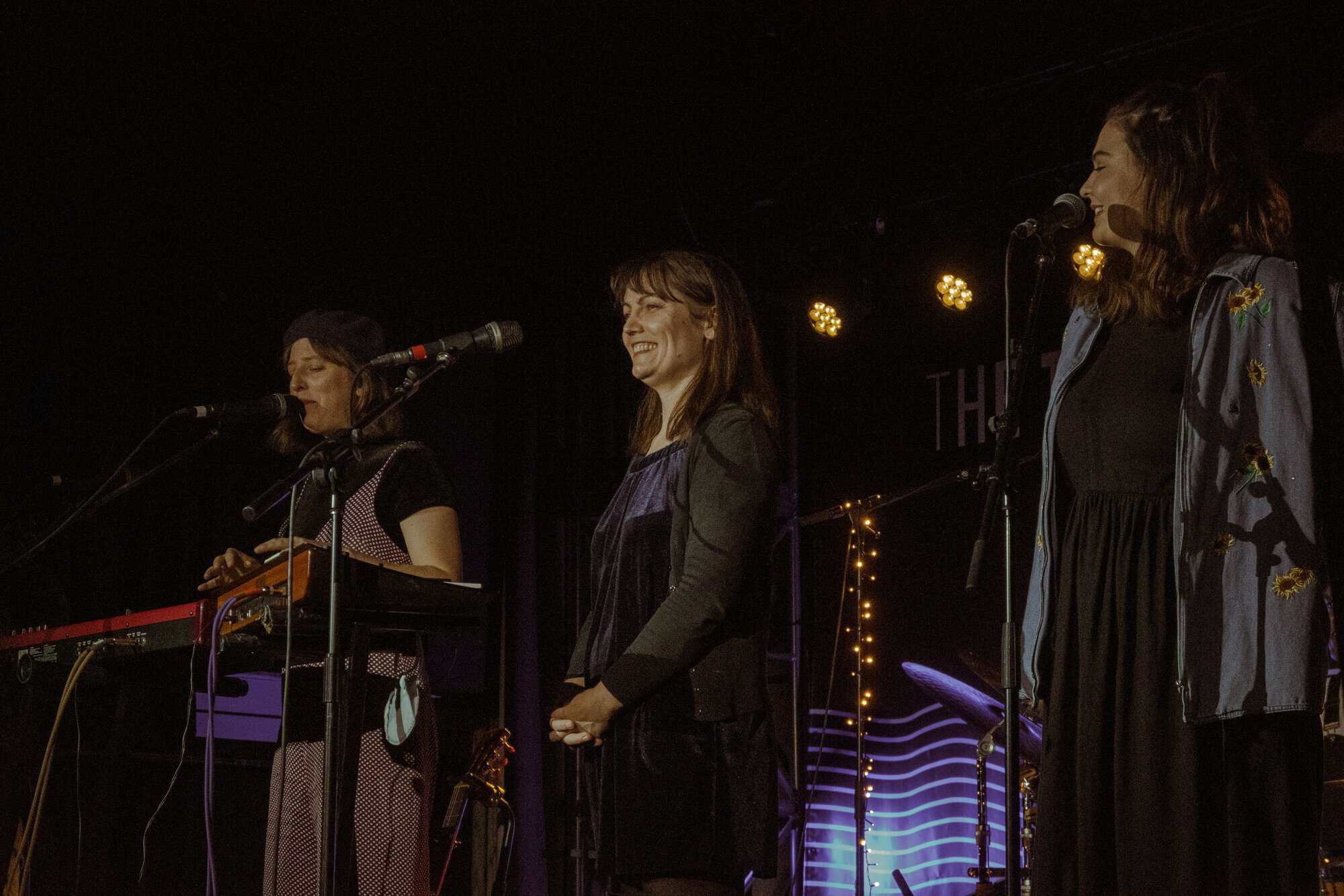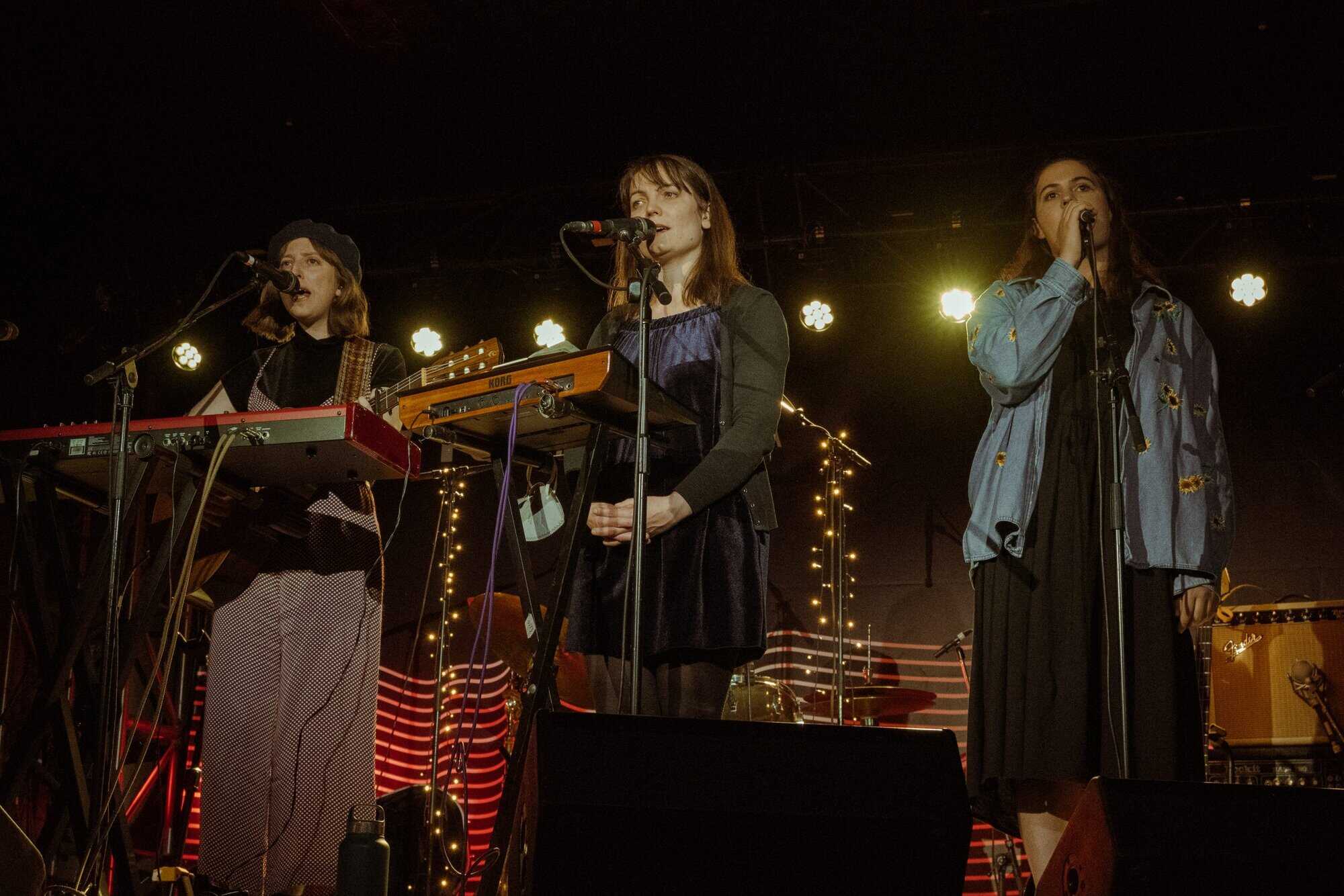 Ben, John, and Hikurangi leave the stage for the three women to sing two numbers by themselves. It’s in the Bag is performed by “just the girls because it’s a bit of a feminist number” followed by a song about leeches. The rest of the band enters the stage again to play “more songs about anxiety which seems to be a bit of a common theme in this album”.