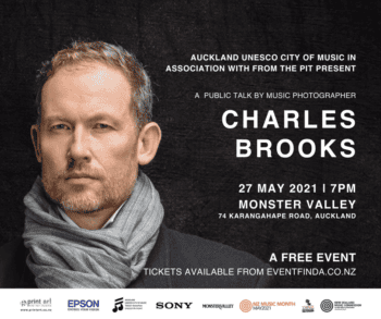 - Charles Brooks photographer talk (27 May 7pm – Auckland)