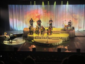 Billed as “Under The Stars with Friends”, the show used the breathtaking venues, in particular, its star-studding ceiling as part of the show, at one point dropping a curtain on the stage, leaving the audience in total darkness except for the shimmering “stars” above.