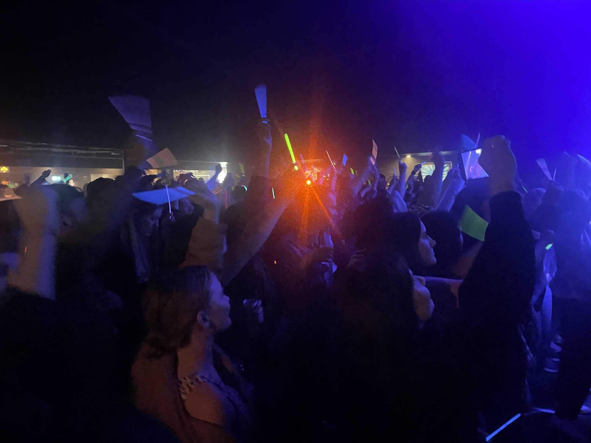 Then, out come the bubbles as the band gets things bumping with End Of The World and Trust…glow sticks are handed out and a singalong is organized with Georgia pitting on half of the audience against the other during Made For Loving.