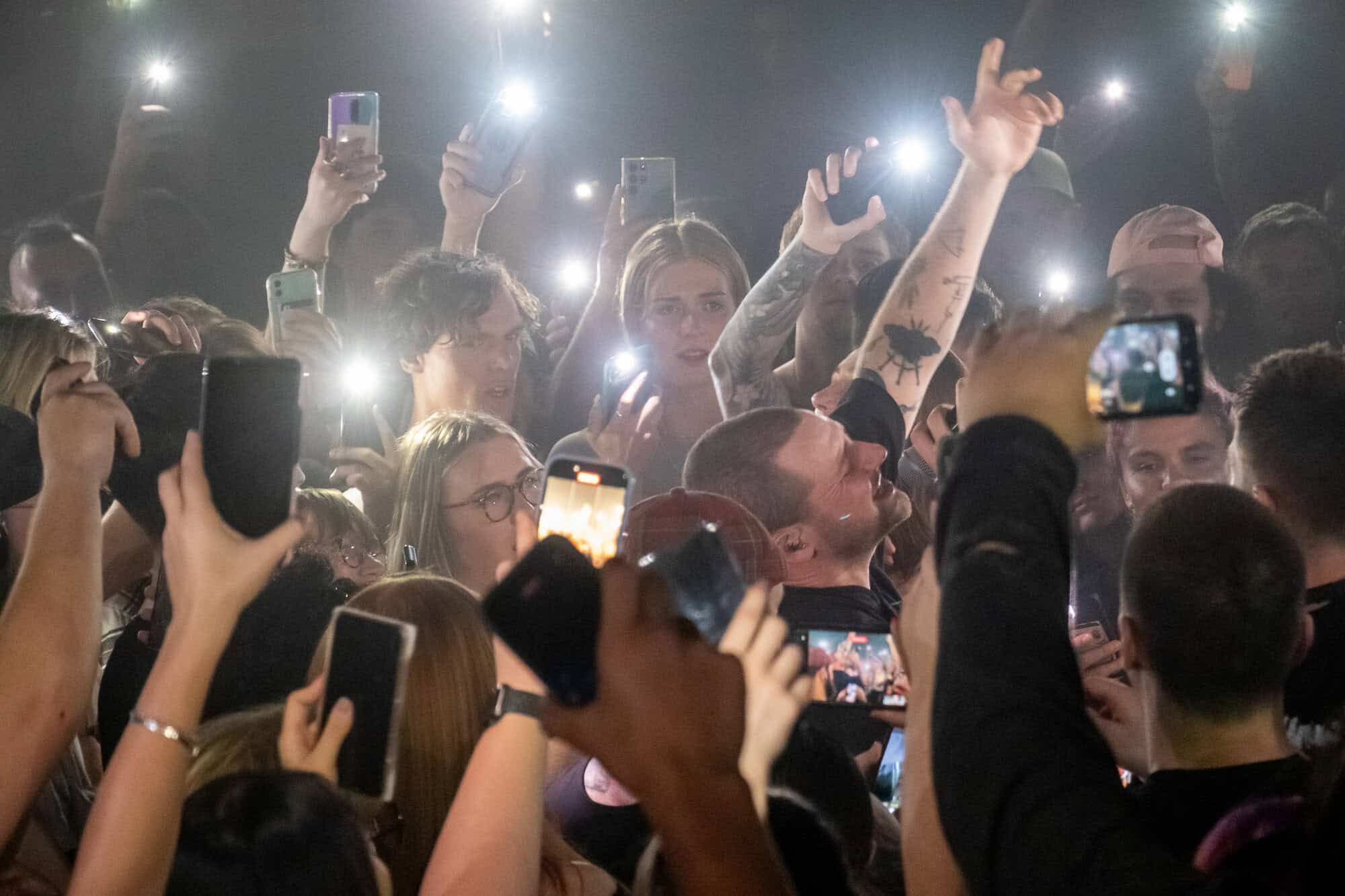 about the nature of the punters attracted to his music. As the stage lights dimmed, Bohemian Rhapsody played in its entirety over the P.A system and I cast my eye over a fired up, mostly youthful crowd. It seemed like a relatively even divide between those sporting black clad and spiked bracelets and those wearing comfortably oversized dress shirts and loafers. Scattered among the front few rows, audience members creatively sported the trademark grandson ‘xx’ incorporated into their outfit and eyeliner stylings.