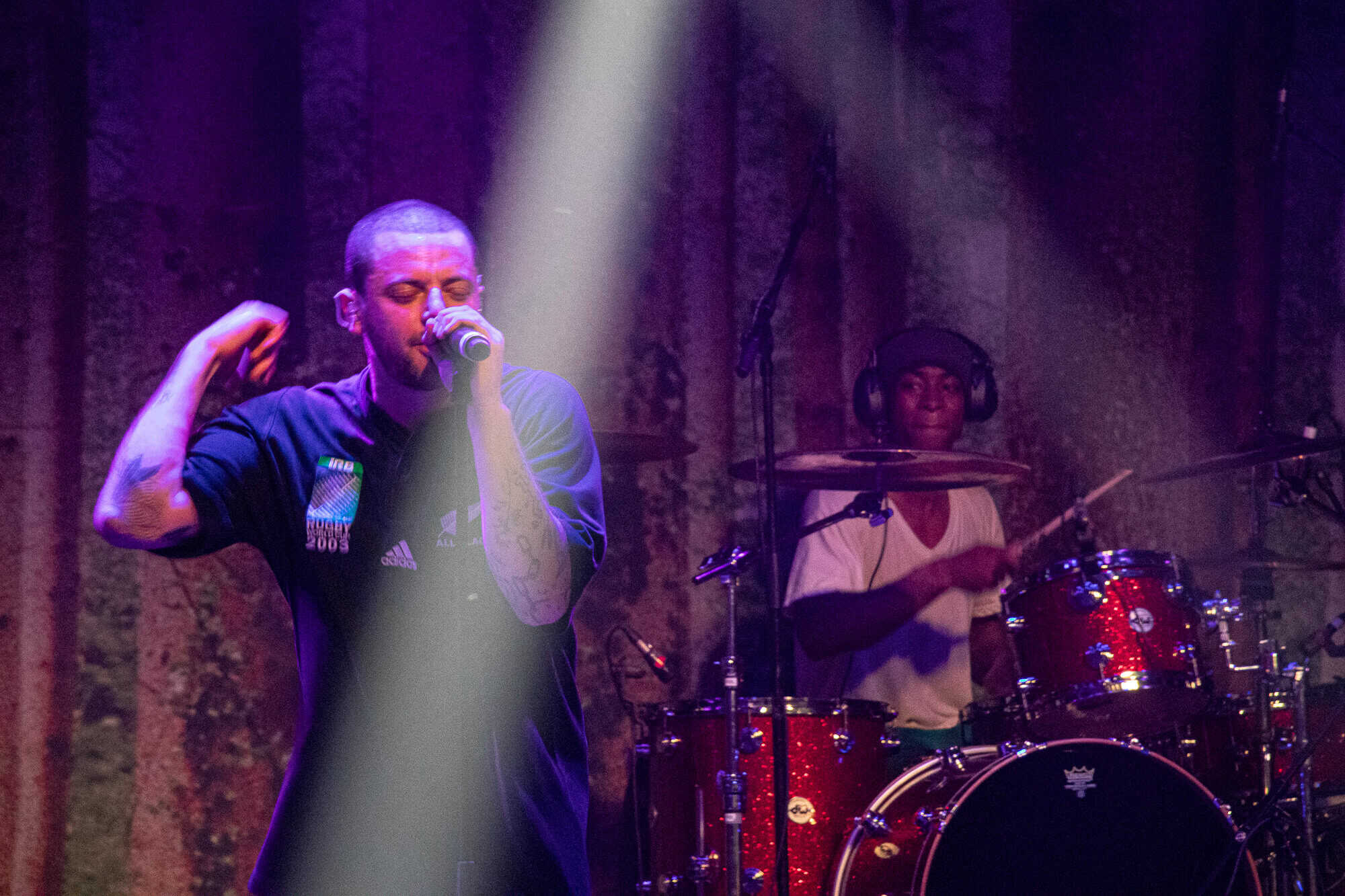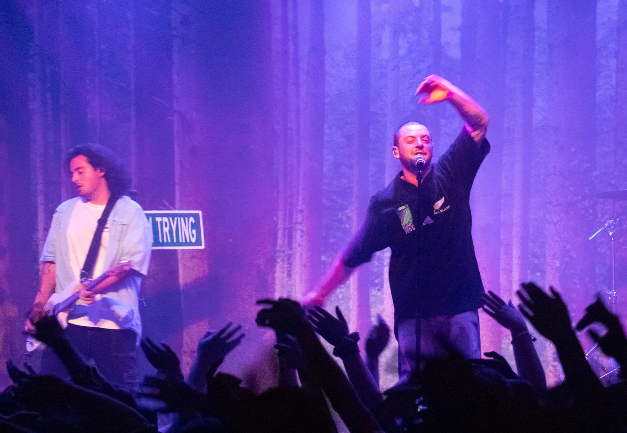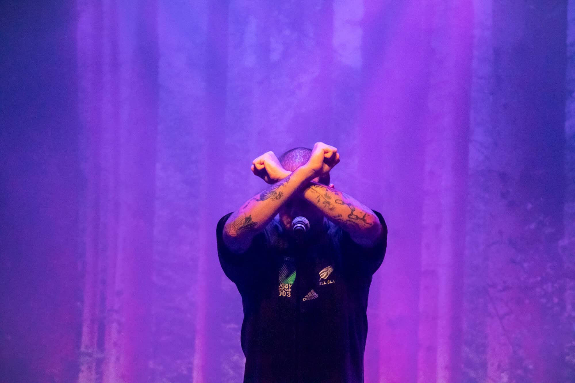After a brief instrumental intro, grandson burst to life with the pulsing bounce of Drones, a song with a chorus made for jumping, in which the Powerstation willingly obliged in unison. Shedding the jacket and sporting a recently purchased All Black’s jersey, he followed with a tense version of Something To Hide, another highlight from the latest album. The setlist progressed into a surprisingly deep selection of songs which included the entirety of his debut EP A Modern Tragedy vol.1 in addition to cuts from each of his e.ps and both full lengths.