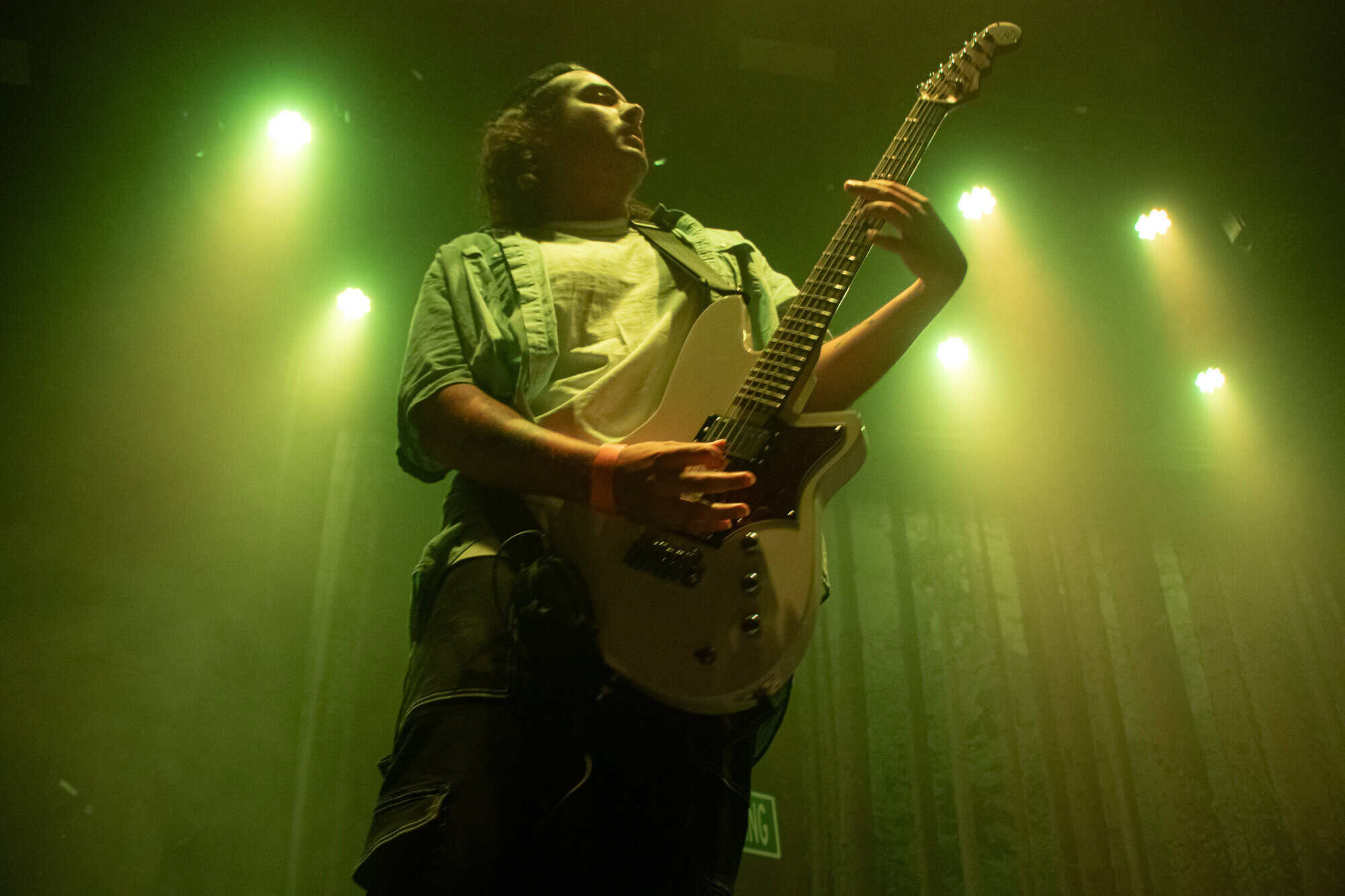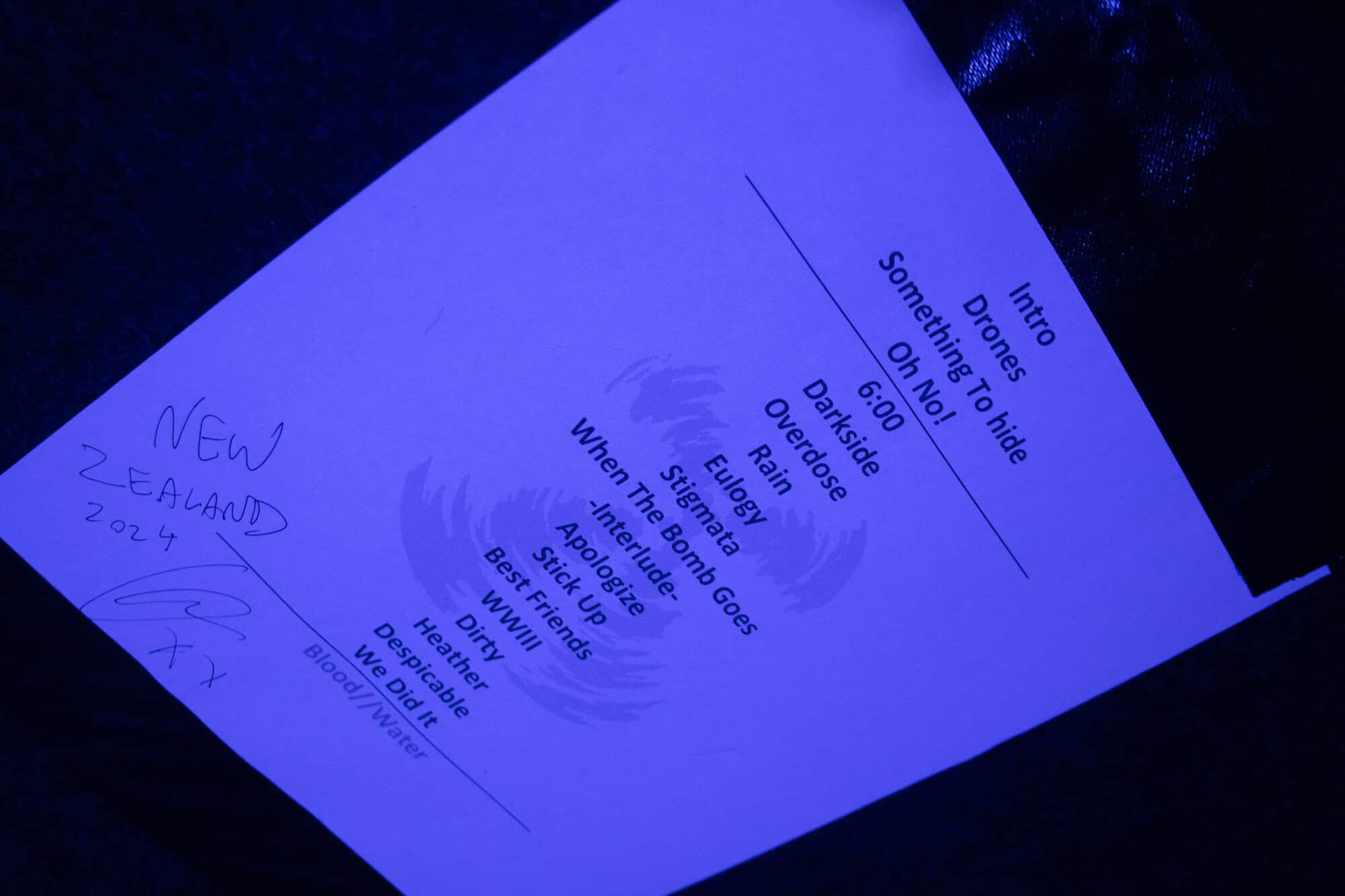 In sound and vision, most of the set felt like a cathartic bloodletting for grandson and audience alike; moshing to the clipped staccato rhythms of Stigmata, the passionate shout out to the indigenous and big fuck you to the military industrial complex during WWIII, and the explosive finale of Blood In The Water. There were also several reflective and humorous moments that punctuated the show. He framed up one song with a message about managing loss through whichever means feel right to the individual and proceeded to sing the song from the middle of the pit, lit solely by cell phone light. He sent a shout out to the people who came to the show on their lonesome, those who he learnt had travelled significant distances to be in attendance and to all those who discovered his songs on the internet, on their laptop, in their own little dark lives. He engaged the audience with each other through ‘grandson speed dating’ encouraging punters to introduce themselves to the person next to them. I complimented a finely styled dude on his half black, half white dress shirt in which he proudly proclaimed having permanently borrowed it from his drama department three years ago. Another moment of connection amongst many.