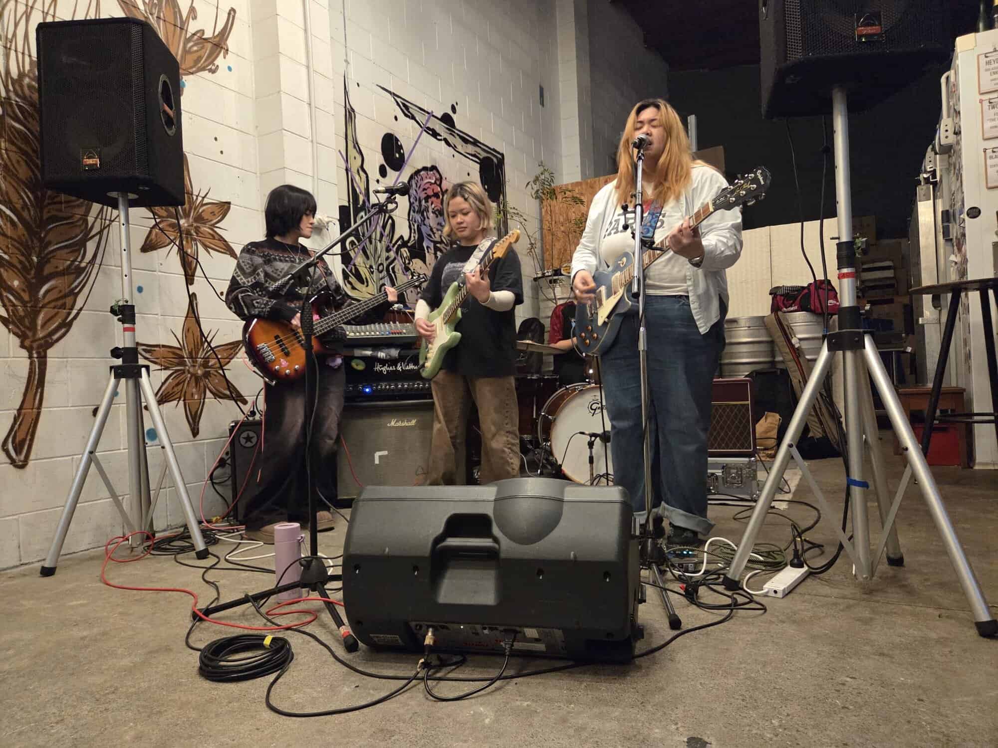 Snuggled in the corner, a taproom, fitting 50 maybe 60 people, a great range of craft beers, no stage, small PA, an intimate space… aroha at first sight. Three bands tonight, one seen before, one also heard of, another an unknown, likely all toru are traversing punk: taking, mimicking, shaking it in different ways.