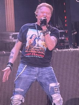 At age 60, Axl is performing better than he has a right to. And he even made an effort with his wardrobe, showing off several Kiwi T’s over the course of the evening.