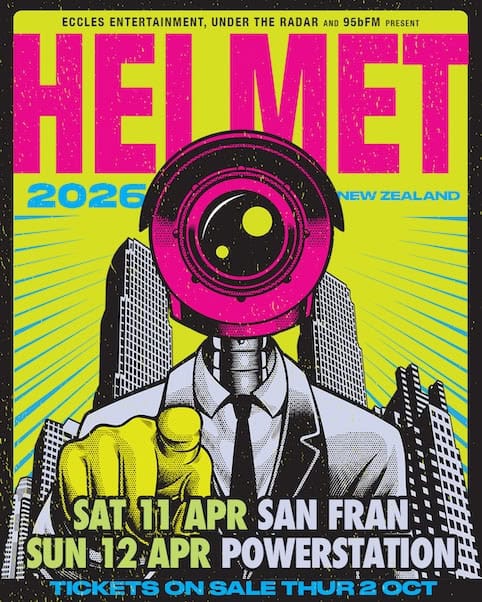 Formed in 1989 in NYC by Page Hamilton, Helmet has been crushing stages for over three decades. In that time they have only come to Aotearoa / NZ a handful of times, most recently in 2023 during their sold out Best of Helmet 1989-2023 tour, with 13th Floor declaring “a complete evening of essential music from one of heavy music’s most essential bands.” With 35 years of rocking behind them, Helmet are at the top of their game. Don’t miss Helmet in New Zealand next April. Tickets on sale Thursday 2 October, 12pm