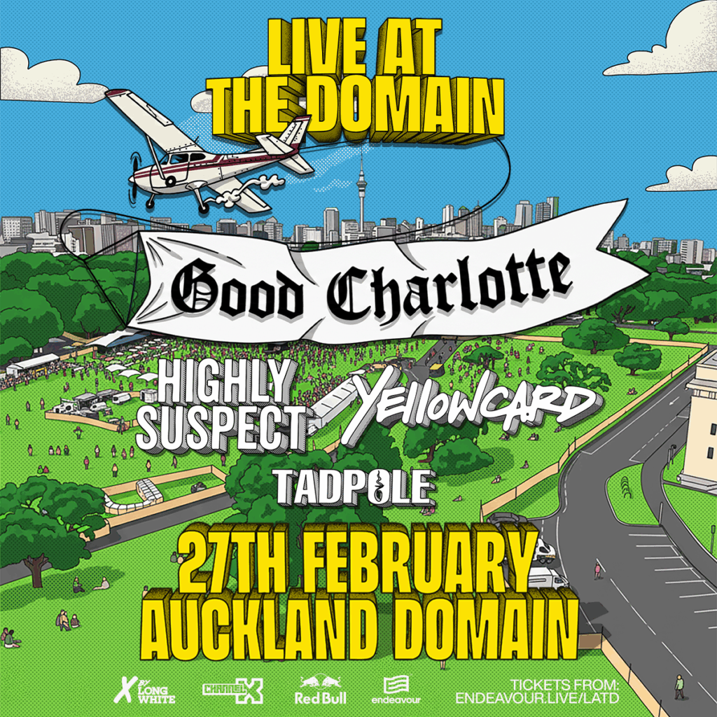One of New Zealand’s favourite US Rock bands HIGHLY SUSPECT and one of our most influential NZ rock bands TADPOLE will be joining already announced headliners in multi-platinum pop-punk rock royalty, GOOD CHARLOTTE, and beloved American pop-punk, alt-rock royalty YELLOWCARD on FEBRUARY 27, 2026 at Auckland’s Domain.