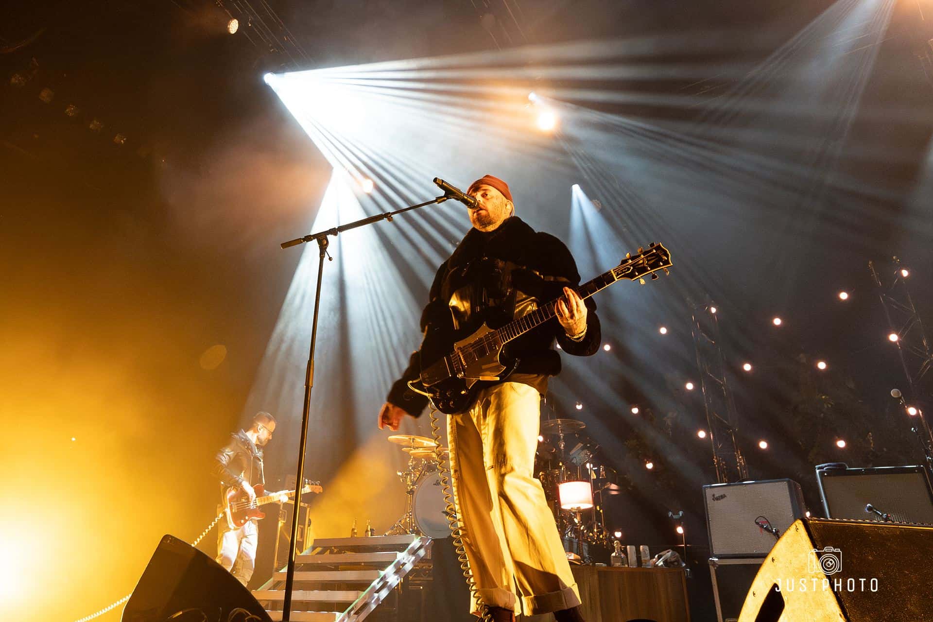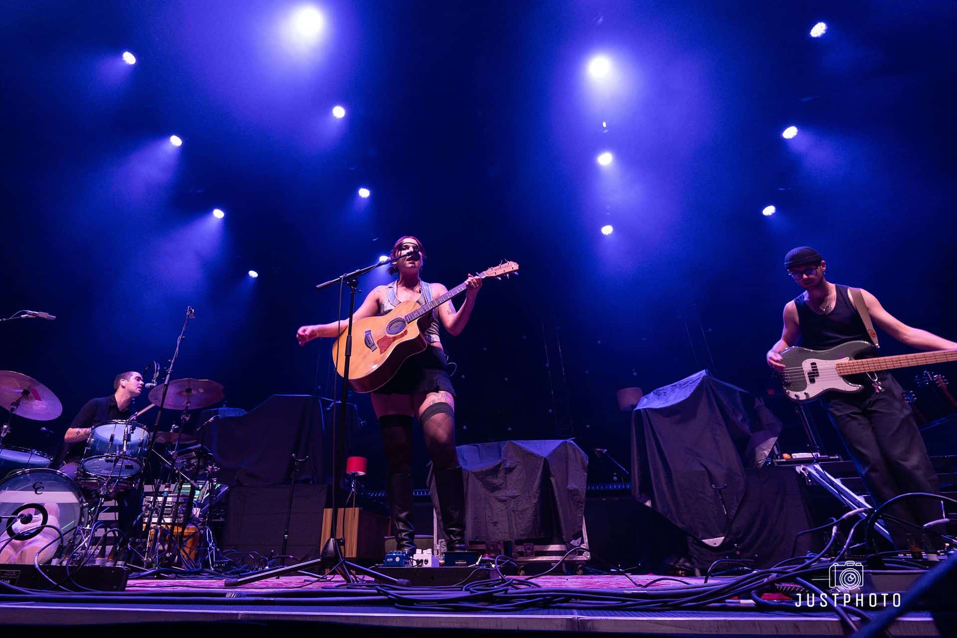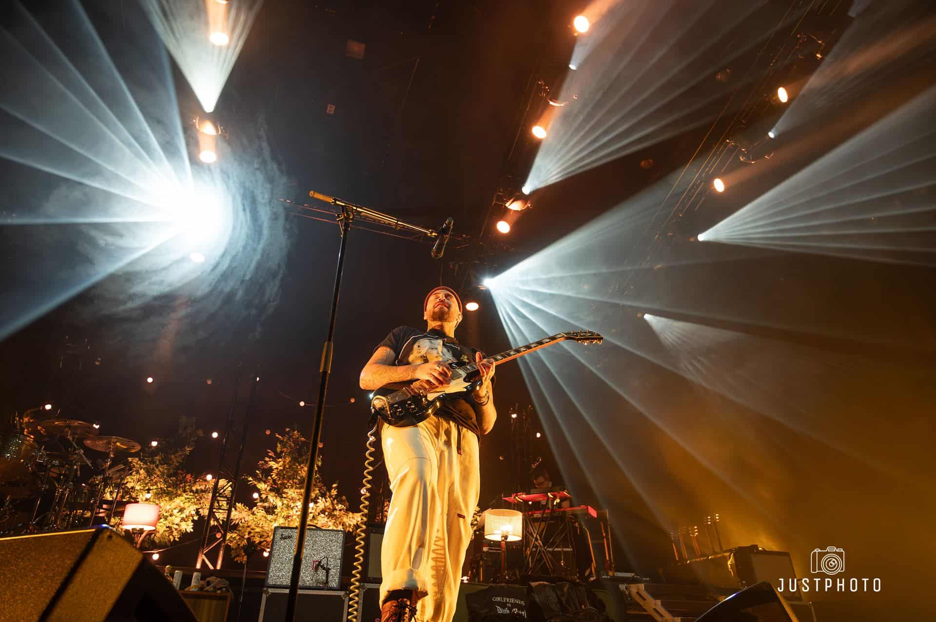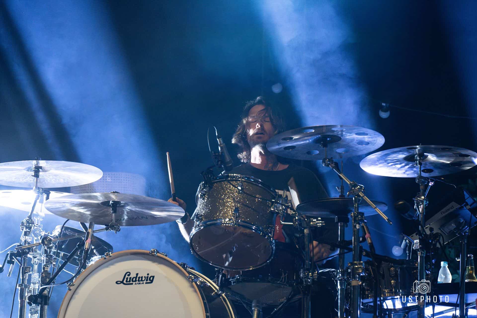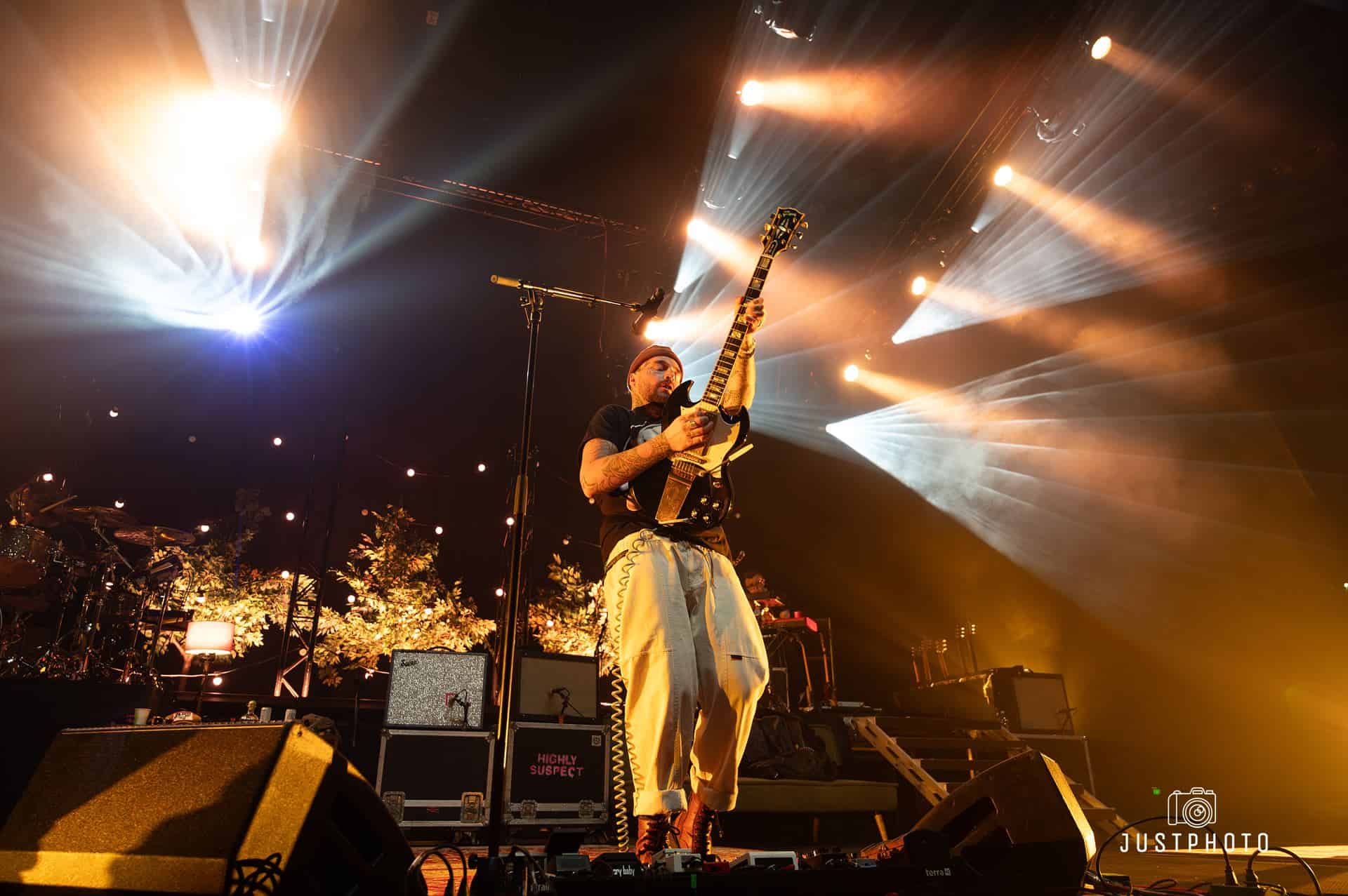 The second that Highly Suspect started, the whole arena was in unison with love and excitement. They had a symphonic start that was slightly worbly and creepy along with the beginning of what would be a pretty spectacular light show. The background was set with small trees and hung lights, giving the stage the feeling of a desert backyard mescaline trip. Johnny Stevens, (frontman, guitar) opened up the show directing the audience in preparation for crowd surfing, coming in hot with his bluesy and gritty voice. Ryan Meyer (who plays open) on drums had a slamming drum break in the second song, Claudeland, leading right into Mexico, wherein Matt Kofos on guitar and percussion (and his third shirt change) increased that desert feel before tossing his drumsticks into the crowd. Rich Meyer, Ryan’s twin, led some southern feeling hard blues. Mark Schwarz kept switching it up, ravaging the keys, synth, vocals, percussion, and guitar. There was a lot of talent on that stage. The lighting was executed perfectly, especially during a mind-blowing drum solo from Ryan Meyer; a punkish tango of light and sound.