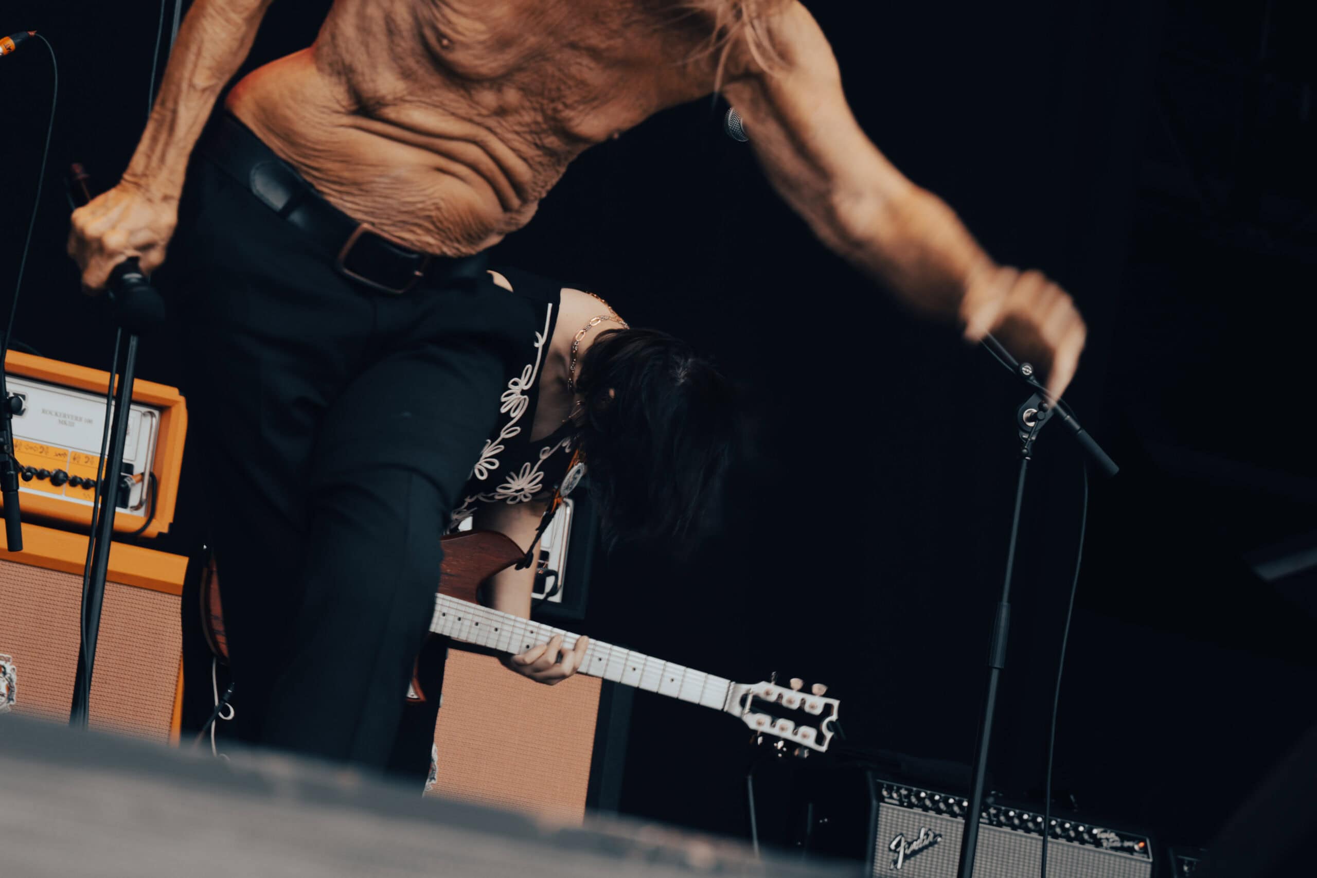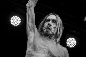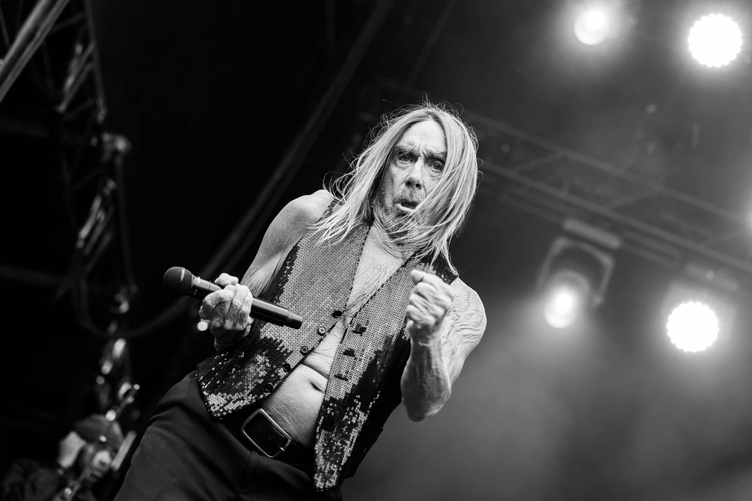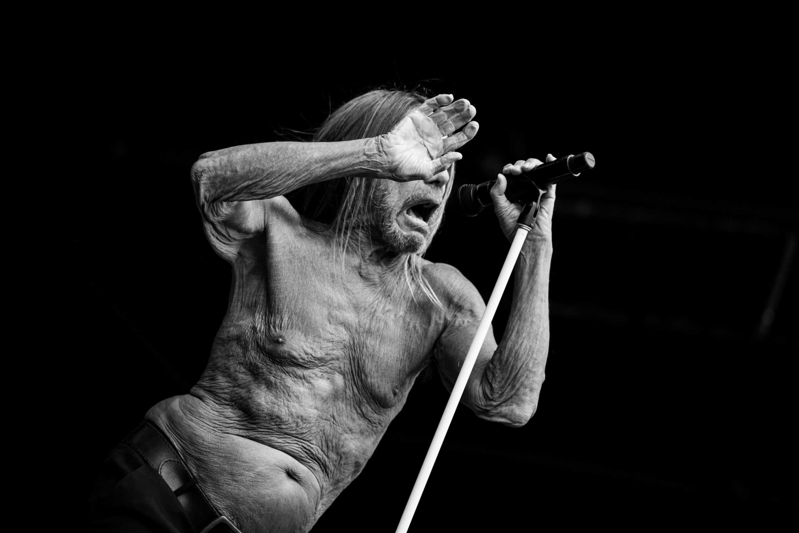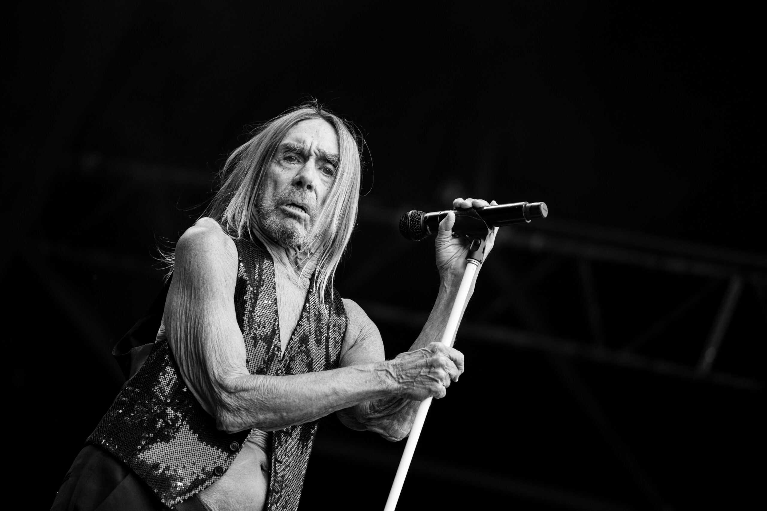 Iggy brought a luxury seven-piece band to the stage, including two guitars, a bass, a drum kit, and two trumpets. Once the musicians were ready, he ran to the center of the stage in a sequin jacket. He grabbed the mic with a death grip. The first song was T.V. Eye from The Stooges. The crowd rushed in from everywhere. People were screaming and waving their fists in the air. He ran to the right of the stage and then to the left. His energy was unbelievable. The photographers were going crazy, switching angles constantly because they were afraid to miss a single second of this rare performance. Yes, Iggy Pop is showing us how it is done.