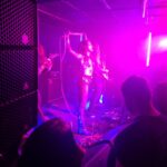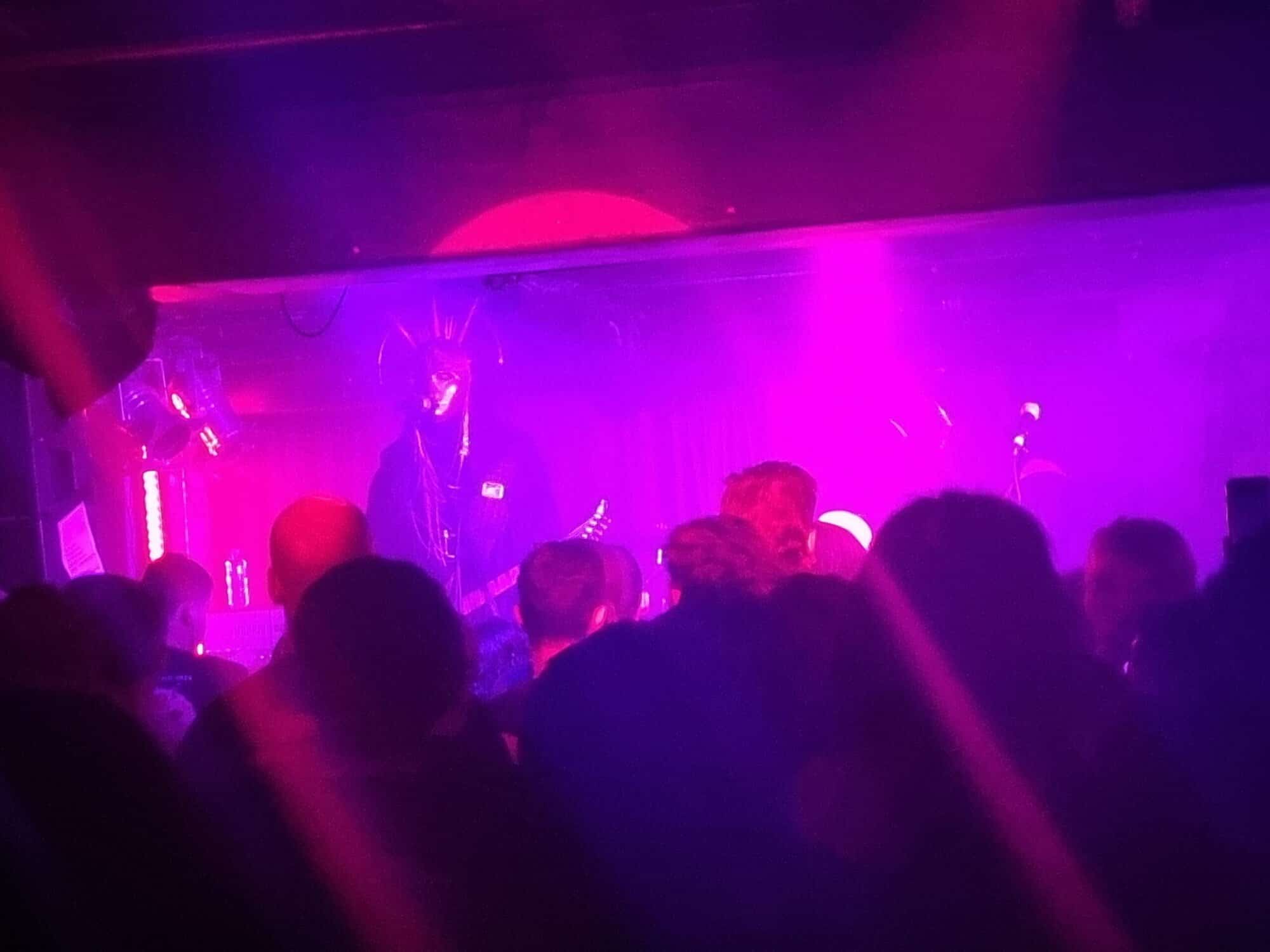 Wearing masks, means there are no facial visuals, singing signs to instruct and cicerone the audience, the experience of interaction is restricted, while the two axemen use their hands to subliminally message sporadically, it’s it the immersion of totality, sound and vision that elicit people’s responses. Imperial Triumphant are assigned, or accused (depending on which side of the barricade you are) of being instinctual jazz influenced. This is most inferred by the frantic creativity of bassist Steve Blanco, as he contorted himself on stage, treating his instrument as though it were a second six-string-guitar, or a double bass. Bass runs not expected from a Black Metal band are dotted, scattered through the show tonight, adding a truly unique and edifying attractiveness and spectacle. Then there is the bass solo, bass song? Almost an interpretational bass theatre interlude.