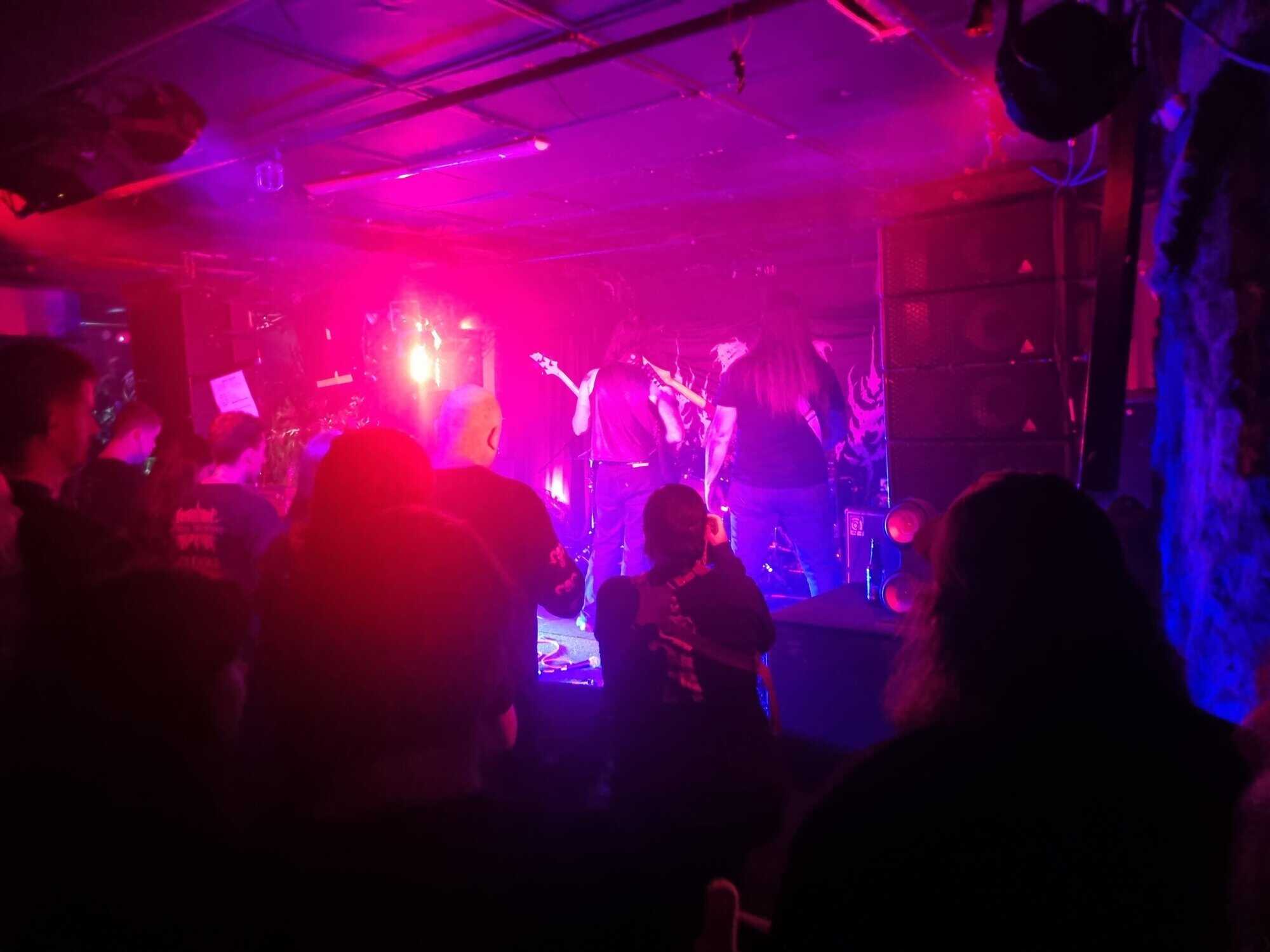 Windswept are a Pōneke-based black metal band (part of a scene, other notables are Bodysiege, Jörmungandr, and Pervertor), their name is a clever reference to the winds that blight the City, and to the storm-in-effect they are reputed to create onstage. A five piece, female fronted, with a debut (demo) single Cenote – released this year, I suspect this might have been their first visit to Tamaki Makaurau.
