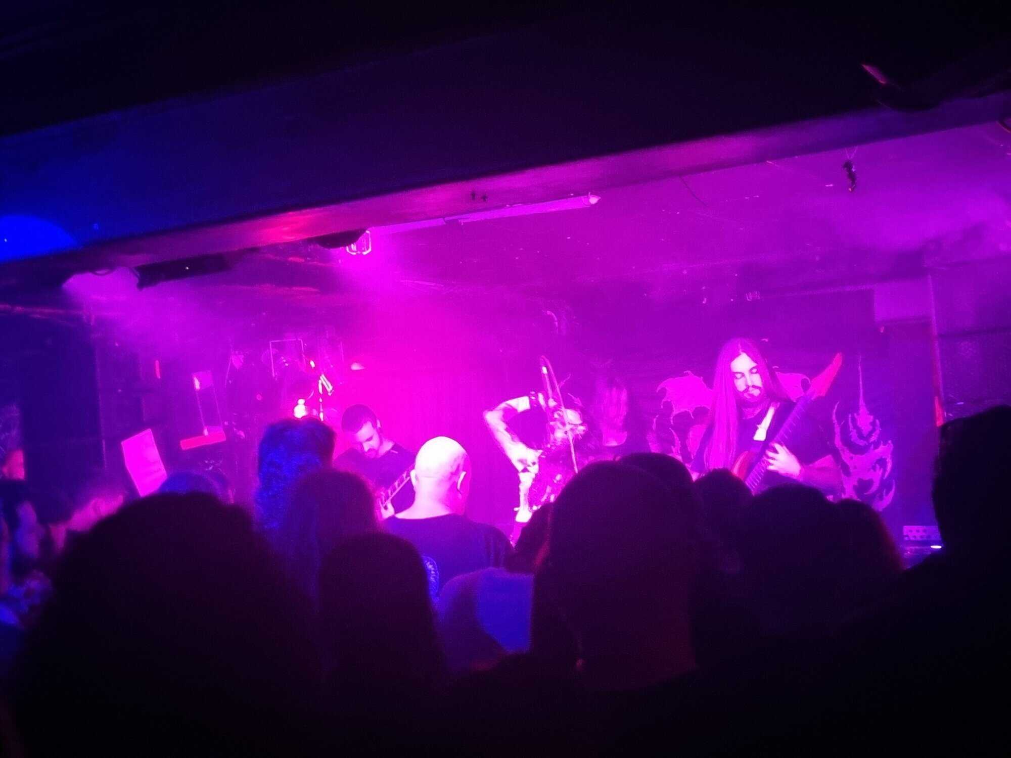 In a punchy 28 minute set, an unrelenting barrage of classic black metal fills The Mothership, the band are tight, well versed, acting unison. But it is the efforts of their singer, frontperson, the ringmaster, that create something sui generis amongst the opening acts tonight. It’s not only her archetypal vocal delivery of black-metal murmuring, she has, or perhaps is well versed in the comportment of a singer, meister in such a band. With prop and garb, she used her physicality to add visual elements to Windswept’s performance tonight. A galvanized performance tonight certainly put Windswept on the map tonight in Tamaki Makaurau.