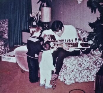 K: Well, there’s a picture that I’ve got of the two of them sitting on the floor and Joel I think, Nathan’s brother, would have been two probably, he’s got a ukulele and Nathans got a recorder, and that’s how they ended up basically playing those instruments. So there was something going on there.