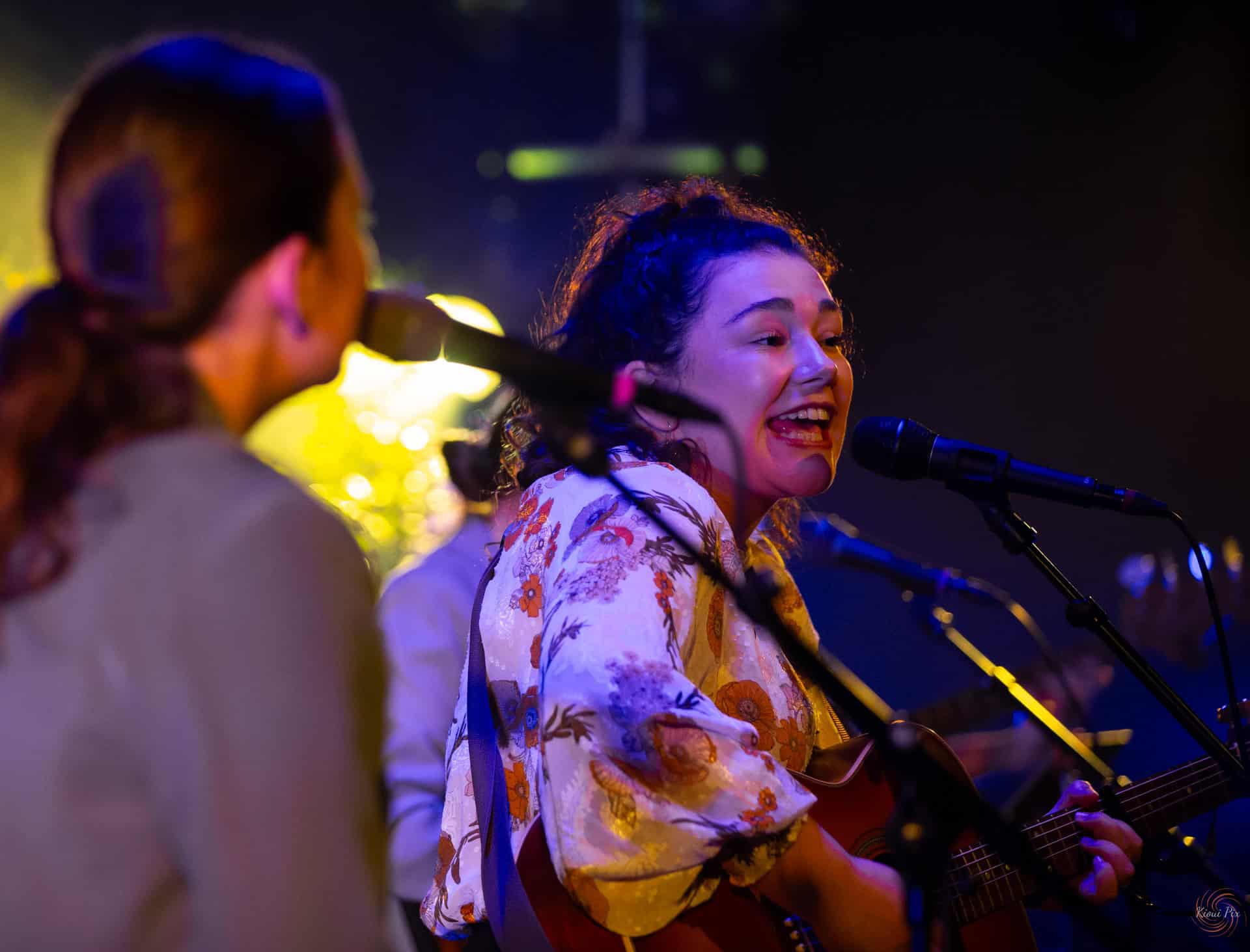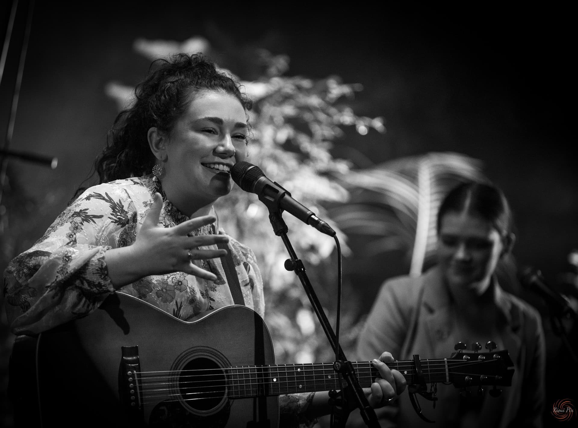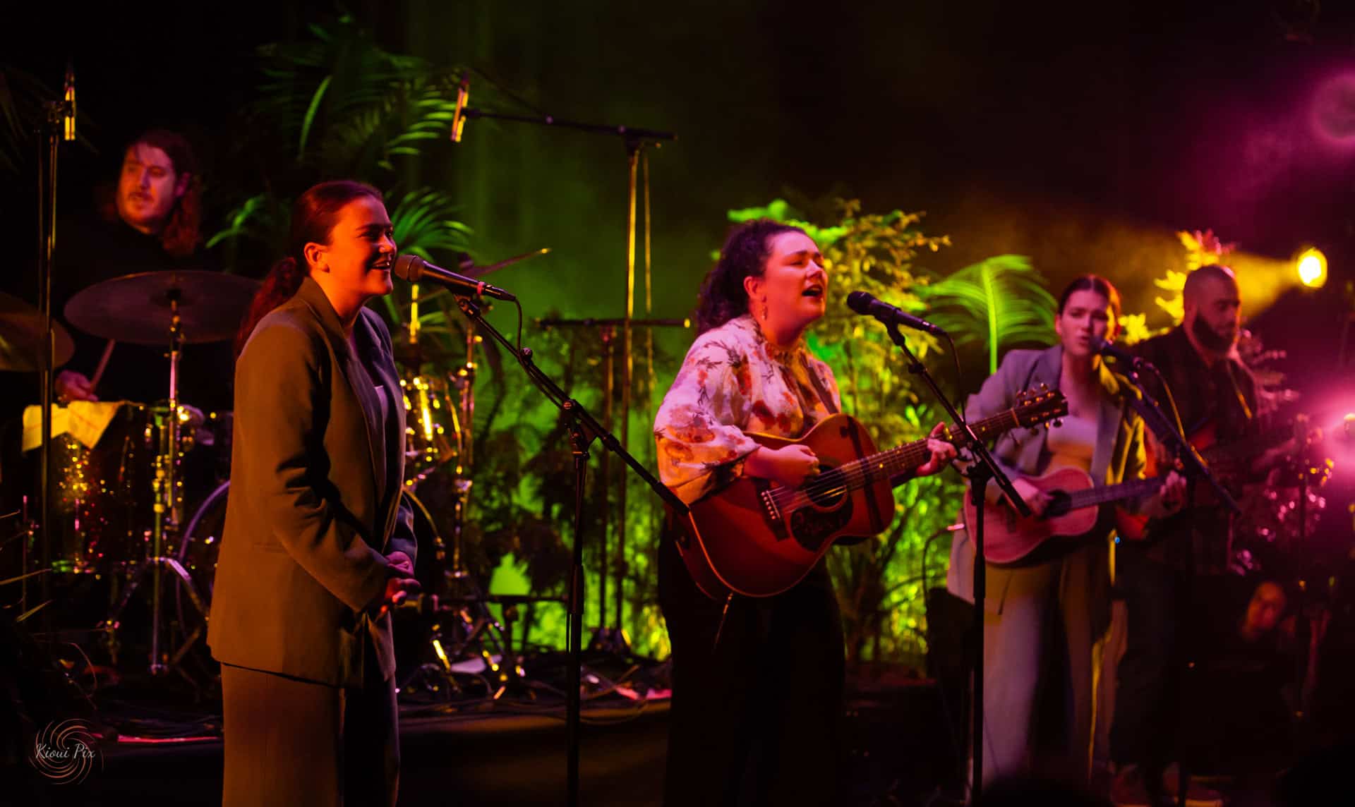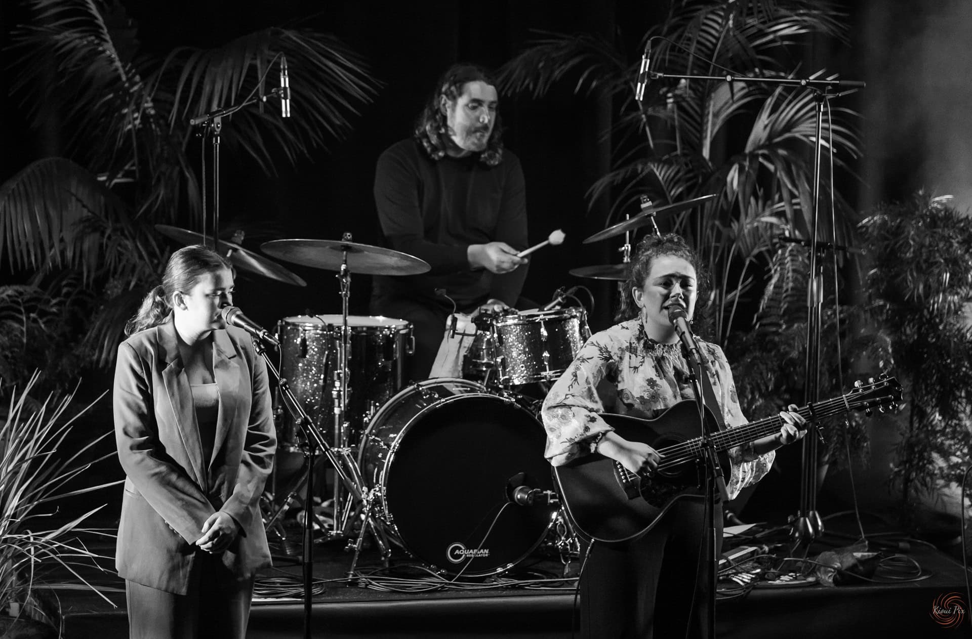 Maegan Mitchell and Nicola Mitchell aka The Mitchell Twins start the night in te reo Maori, a mihi, introducing themselves. It’s a gentle and poignant start to the night on the eve of Matariki. Just two voices and Nicolea on acoustic guitar, they (re)start with Margaret, the lead song from their recently released CE/Digital EP Find A River. Like a lot of the Mitchell Sisters’ lyrics and narratives, it has a family link, they may be scattered throughout Aotearoa now, but memories and whanau loom large and lovingly for the three.