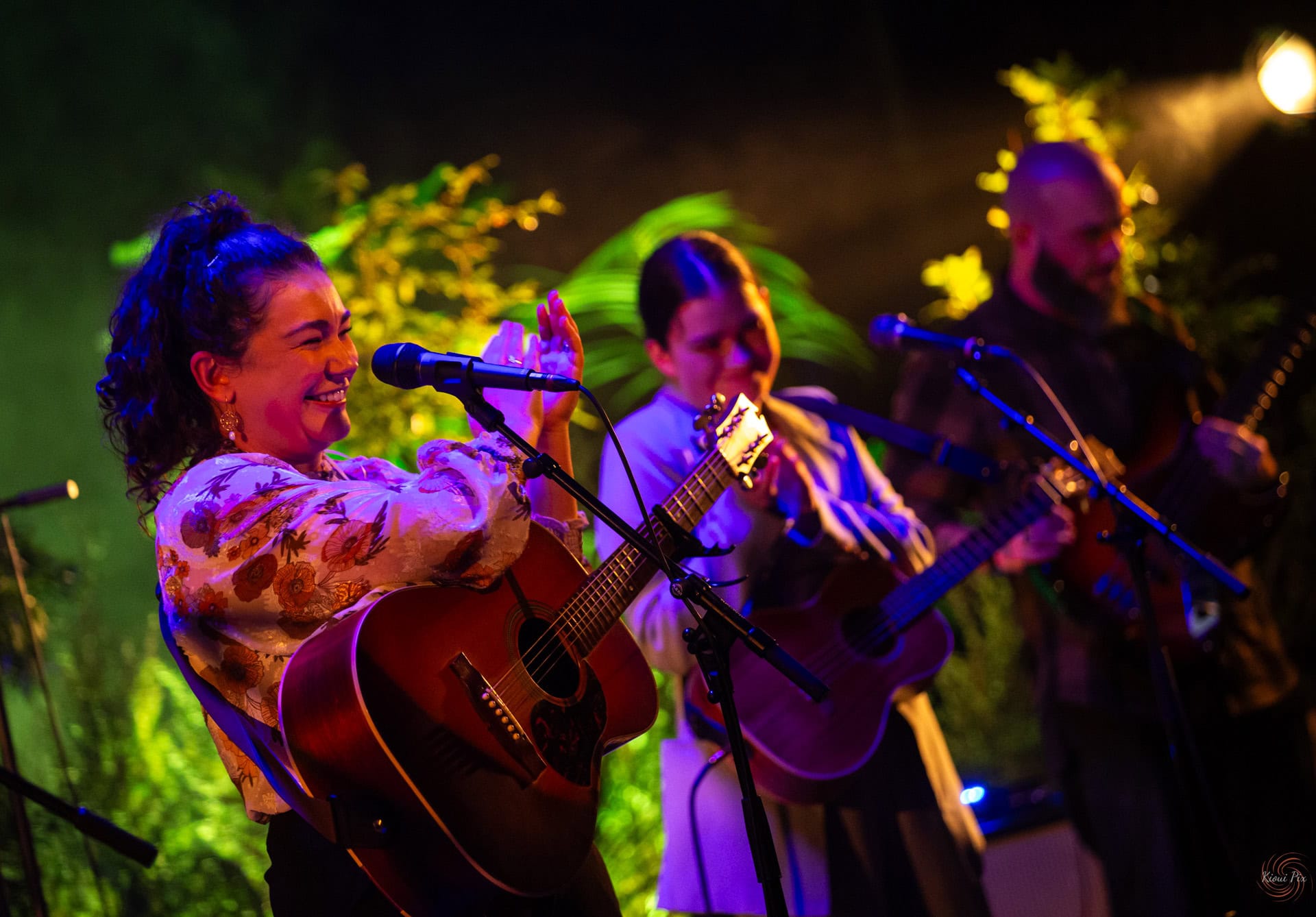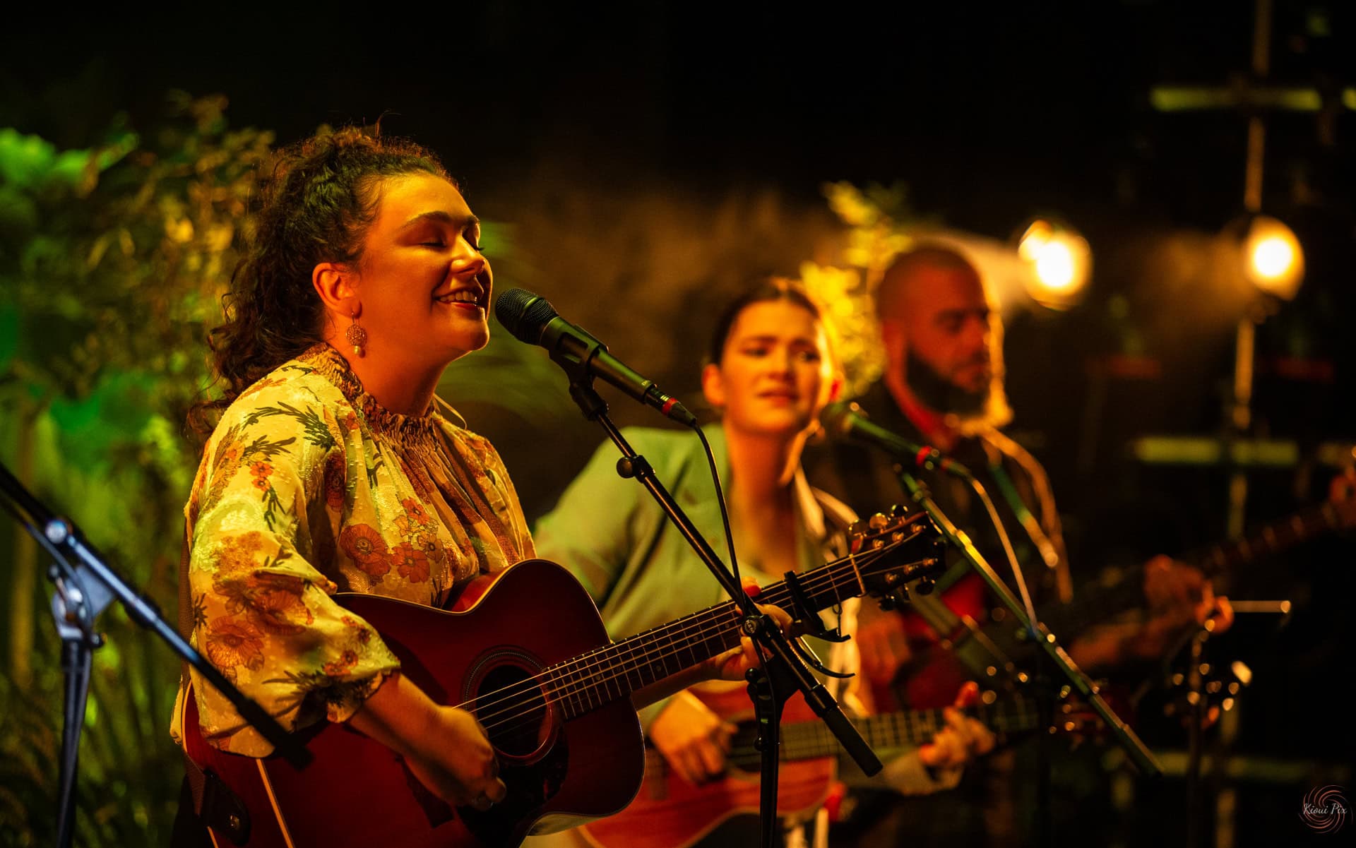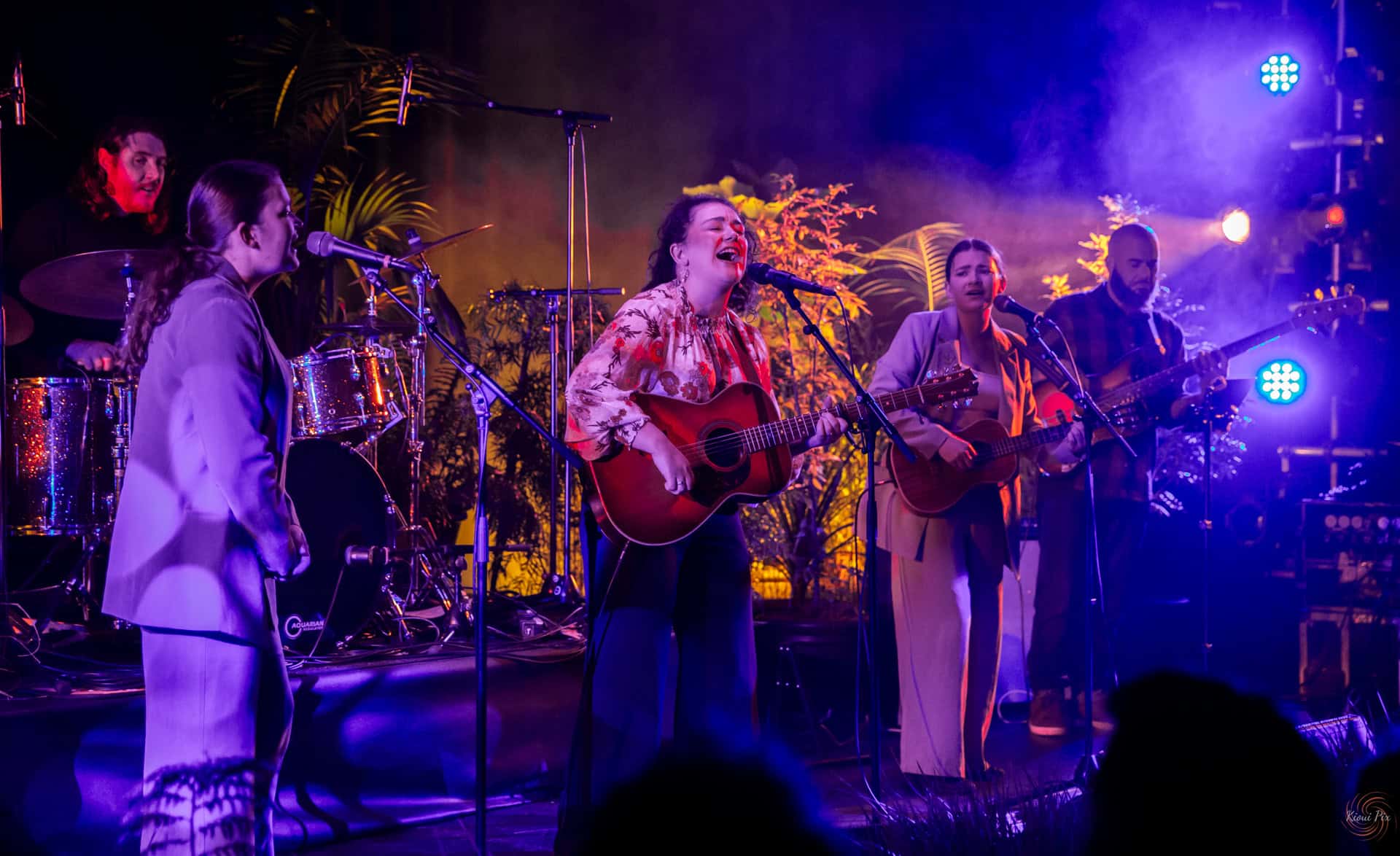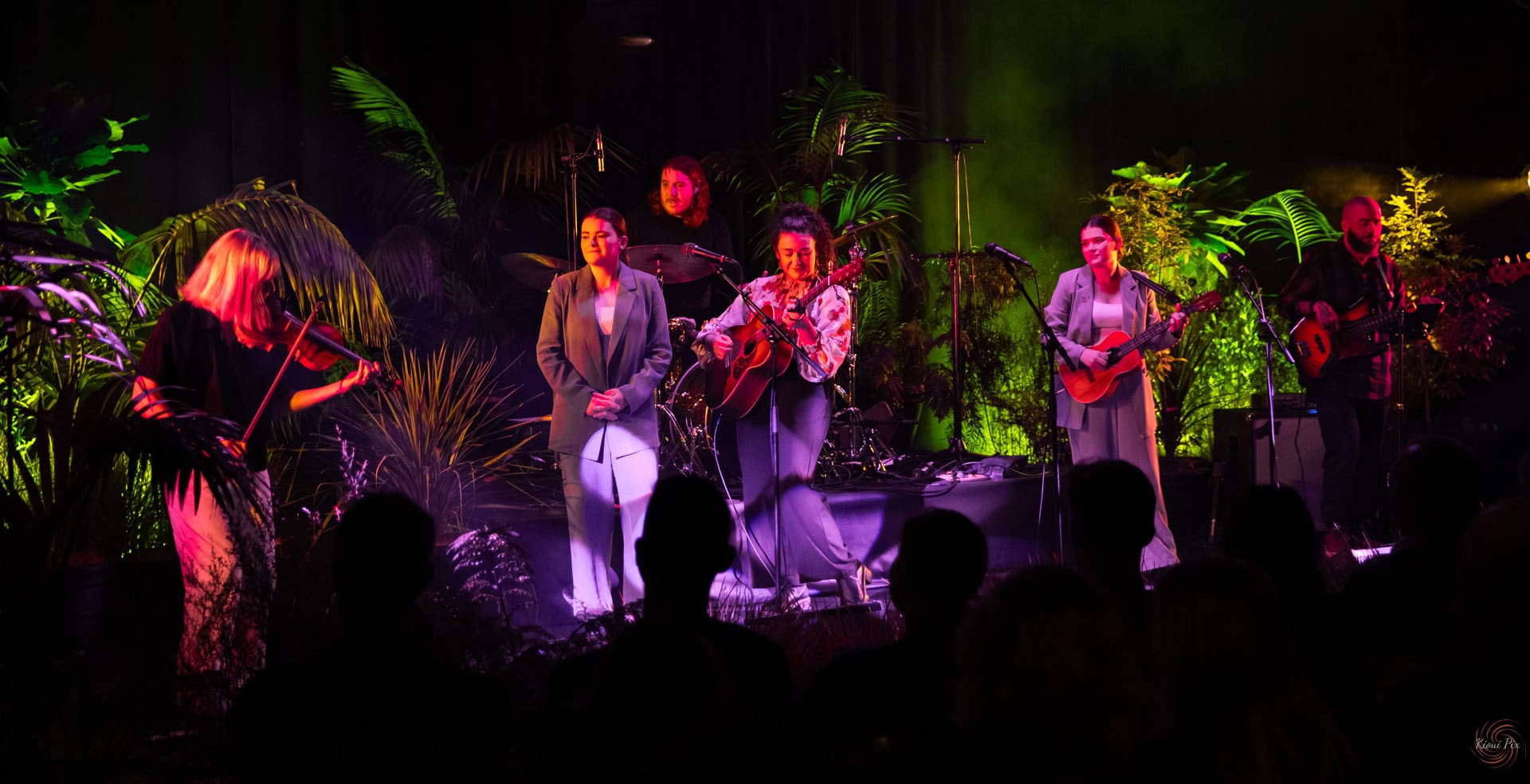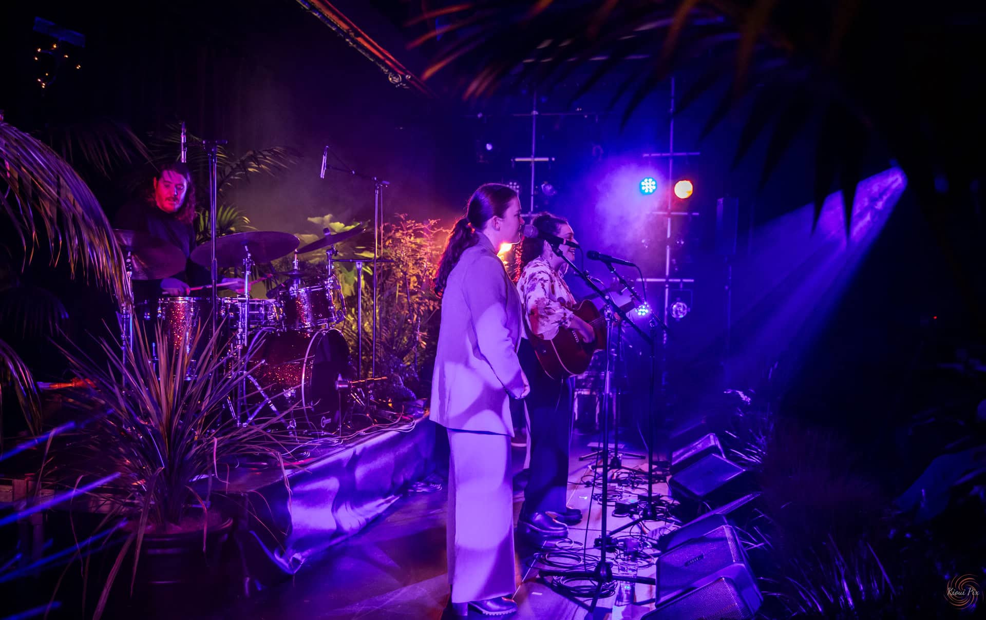 Maegan Mitchell and Nicola Mitchell aka The Mitchell Twins start the night in te reo Maori, a mihi, introducing themselves. It’s a gentle and poignant start to the night on the eve of Matariki. Just two voices and Nicolea on acoustic guitar, they (re)start with Margaret, the lead song from their recently released CE/Digital EP Find A River. Like a lot of the Mitchell Sisters’ lyrics and narratives, it has a family link, they may be scattered throughout Aotearoa now, but memories and whanau loom large and lovingly for the three.