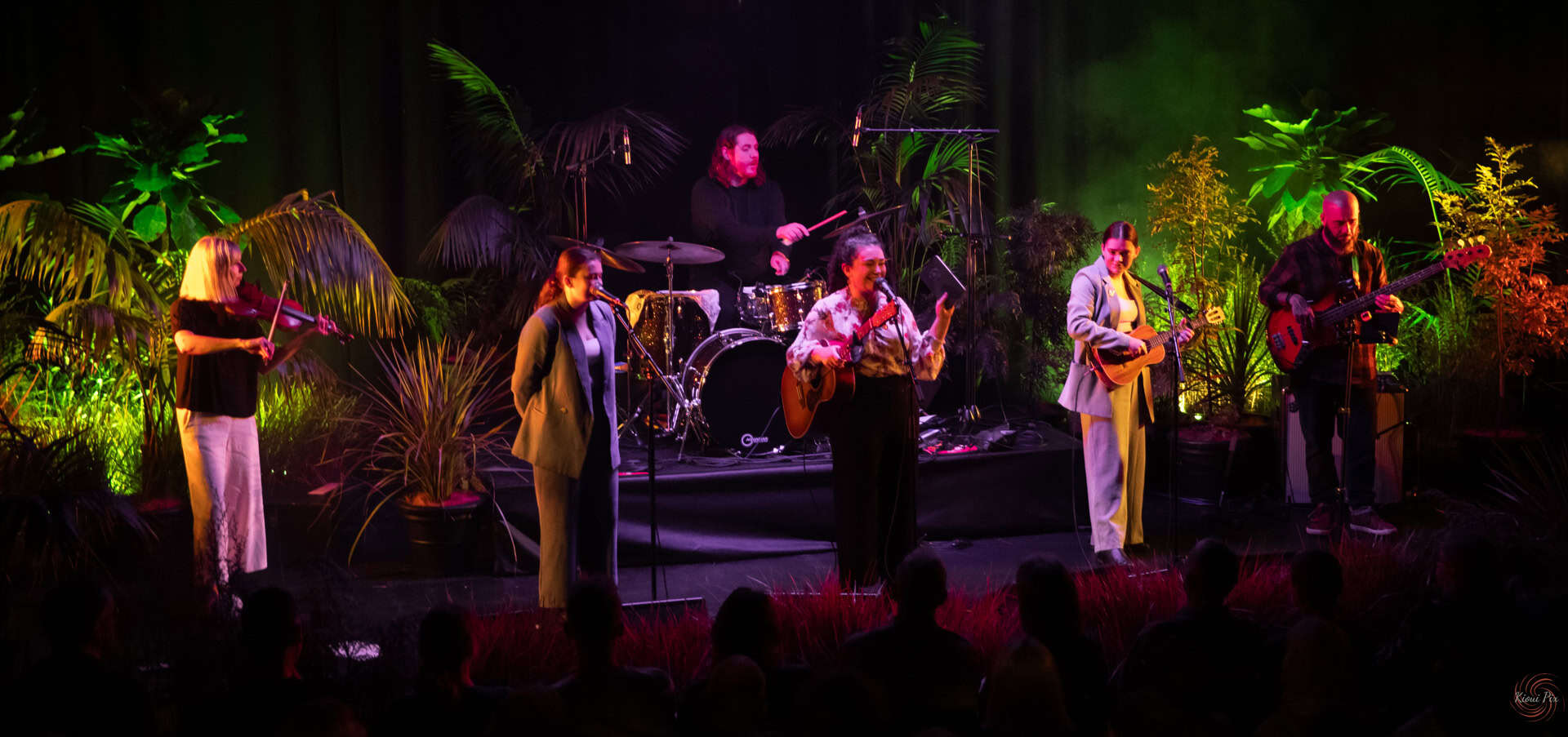 It’s a step back in time as the group performs three songs from her 2018 album Wildfire, her alt/country album (?) also produced by Matt Fell who did the magic on 2022’s Tug of War: Travelling Bones, Ends of the Earth (homage to her Irish Grandparents settling in Aotearoa in the 1950’s and One Day an upbeat song about coffee, lost love or maybe not, and a chance for the bass and drums to break loose a little.