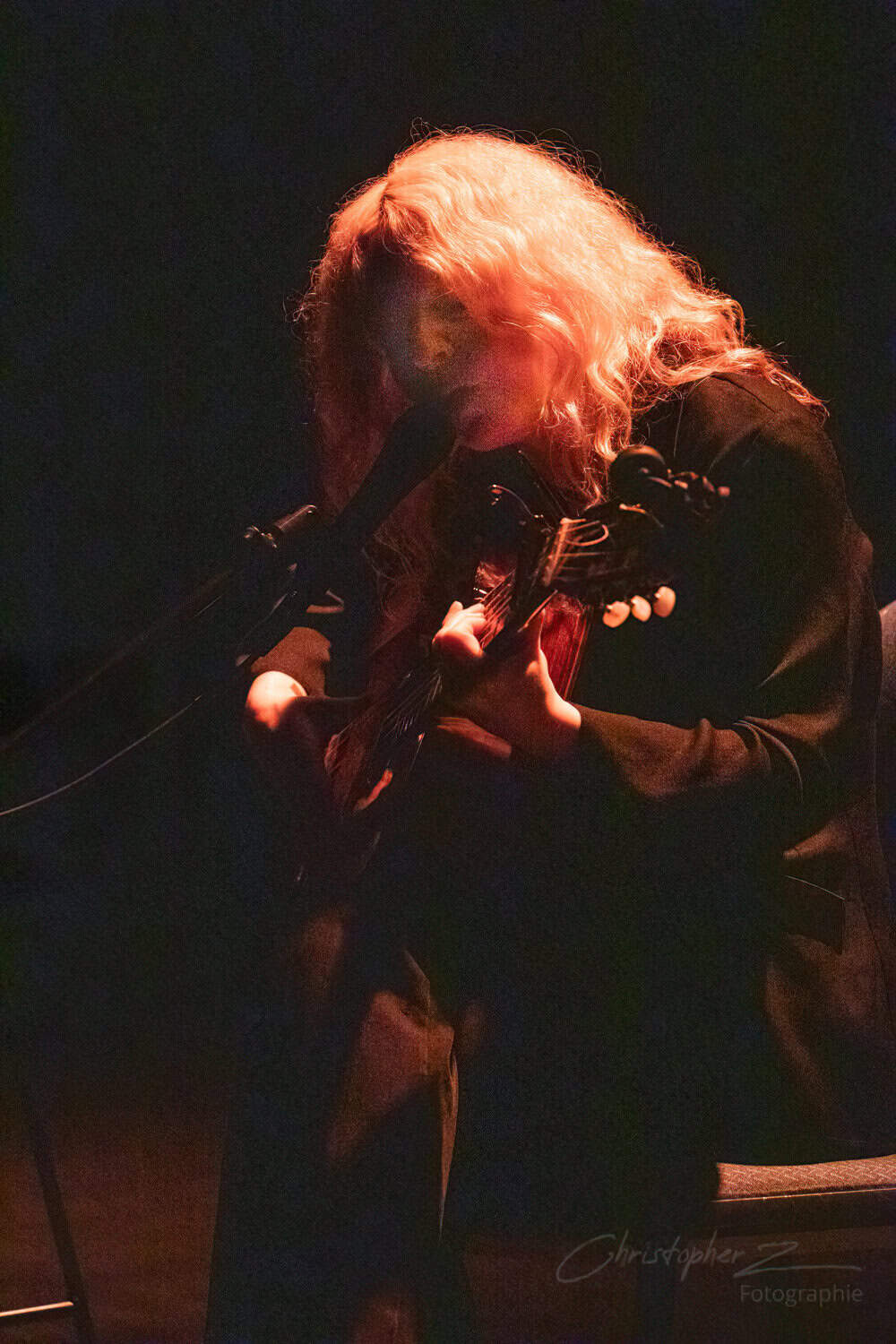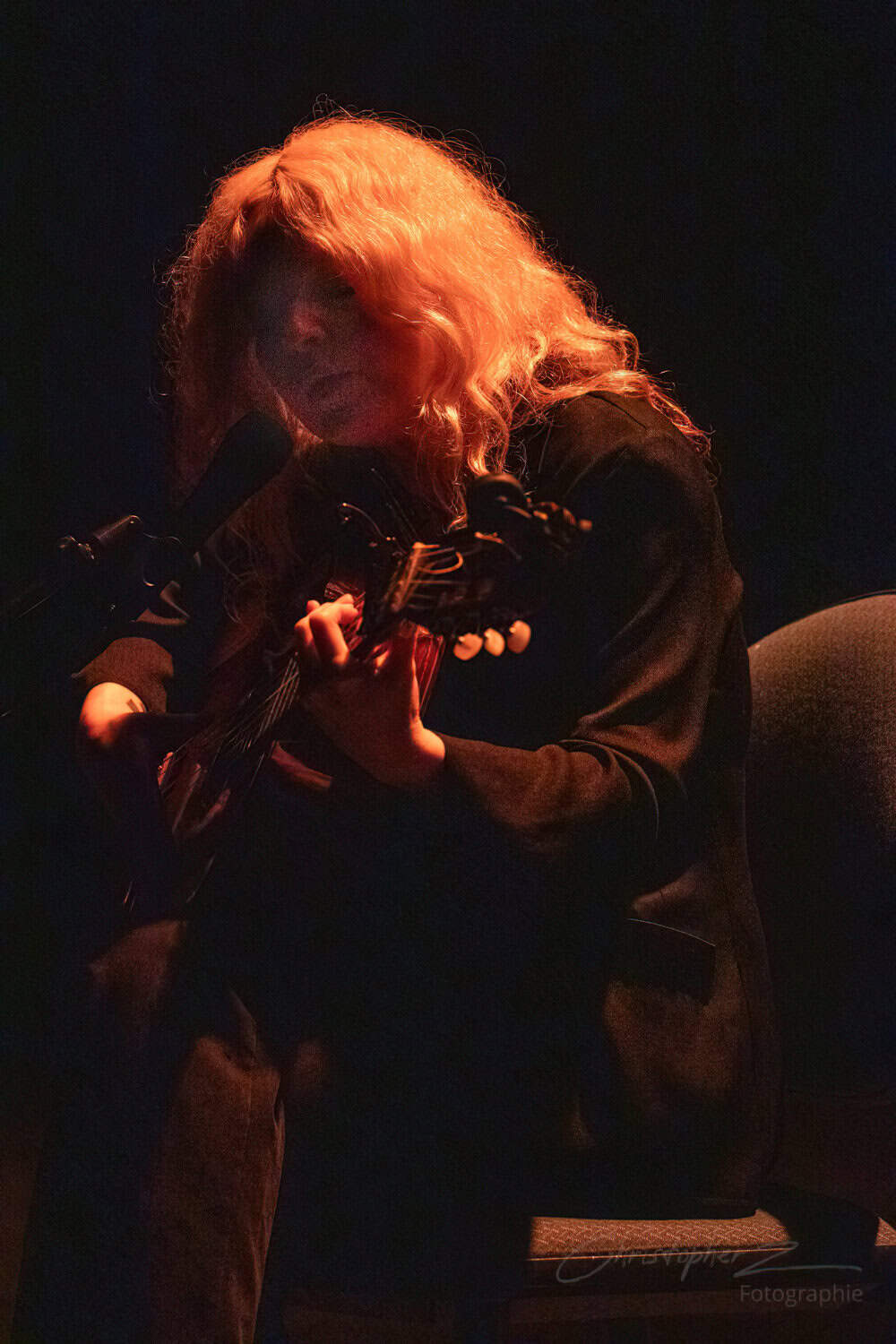 Visually, not much has changed…a shock of white hair and even whiter skin…if you could see it…the lighting was such that Jessica’s face was in the dark for the entire set…but we could see her arms and hands as they glided along the fretboard.