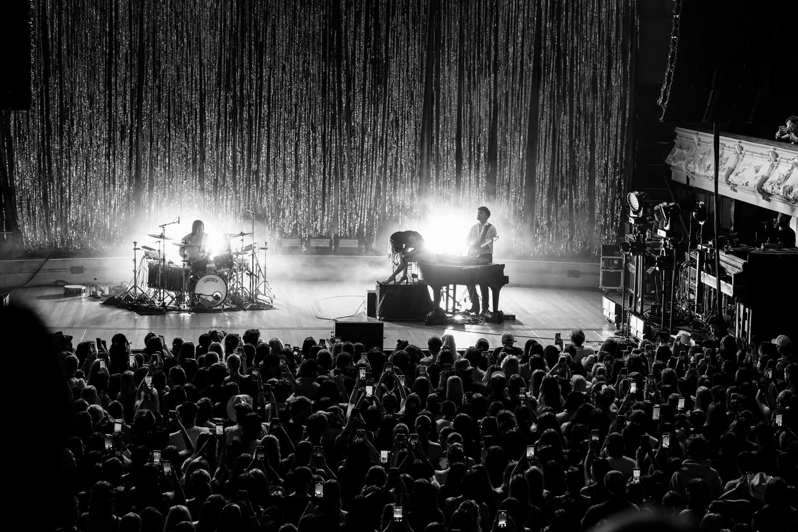 Two figures emerged in the dark—drummer Yotam Weiss and guitarist Haven Cody, who would later switch over to piano. As the lights flickered to life, they locked into a heavy, pulsing rhythm that rippled across the hall, stirring the crowd into a restless buzz. After a few suspenseful seconds, Jessie Murph swept onto the stage in a white dress, lit up like a flare. She dove straight into Gucci Mane and 1965, the opening pair from her new album Sex Hysteria and the namesake of this tour. The room erupted. In the front row, I caught sight of a girl with two streaming tear lines carved down her cheeks. I don’t know how long she’s waited for this night—but in that moment, her dream had arrived.