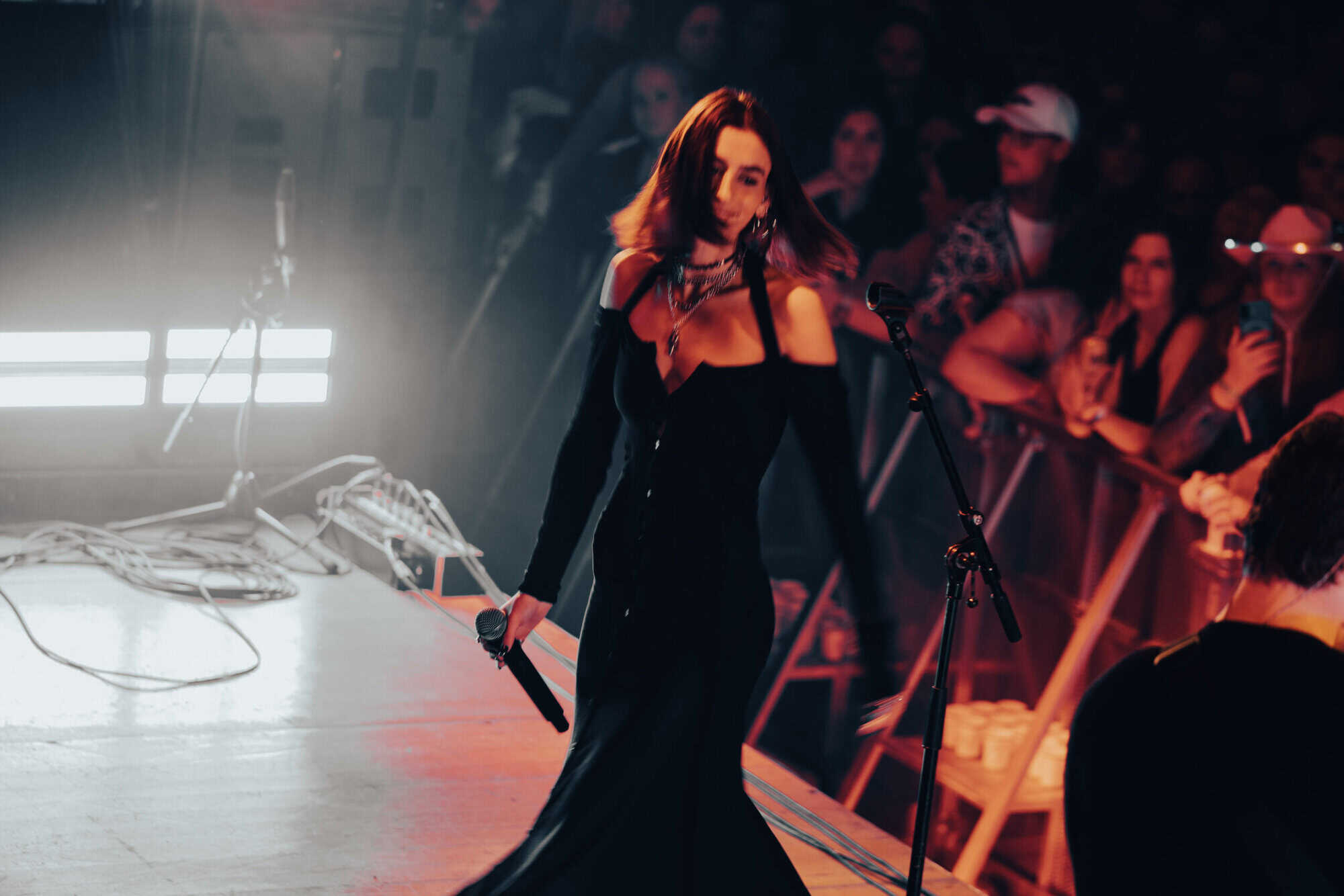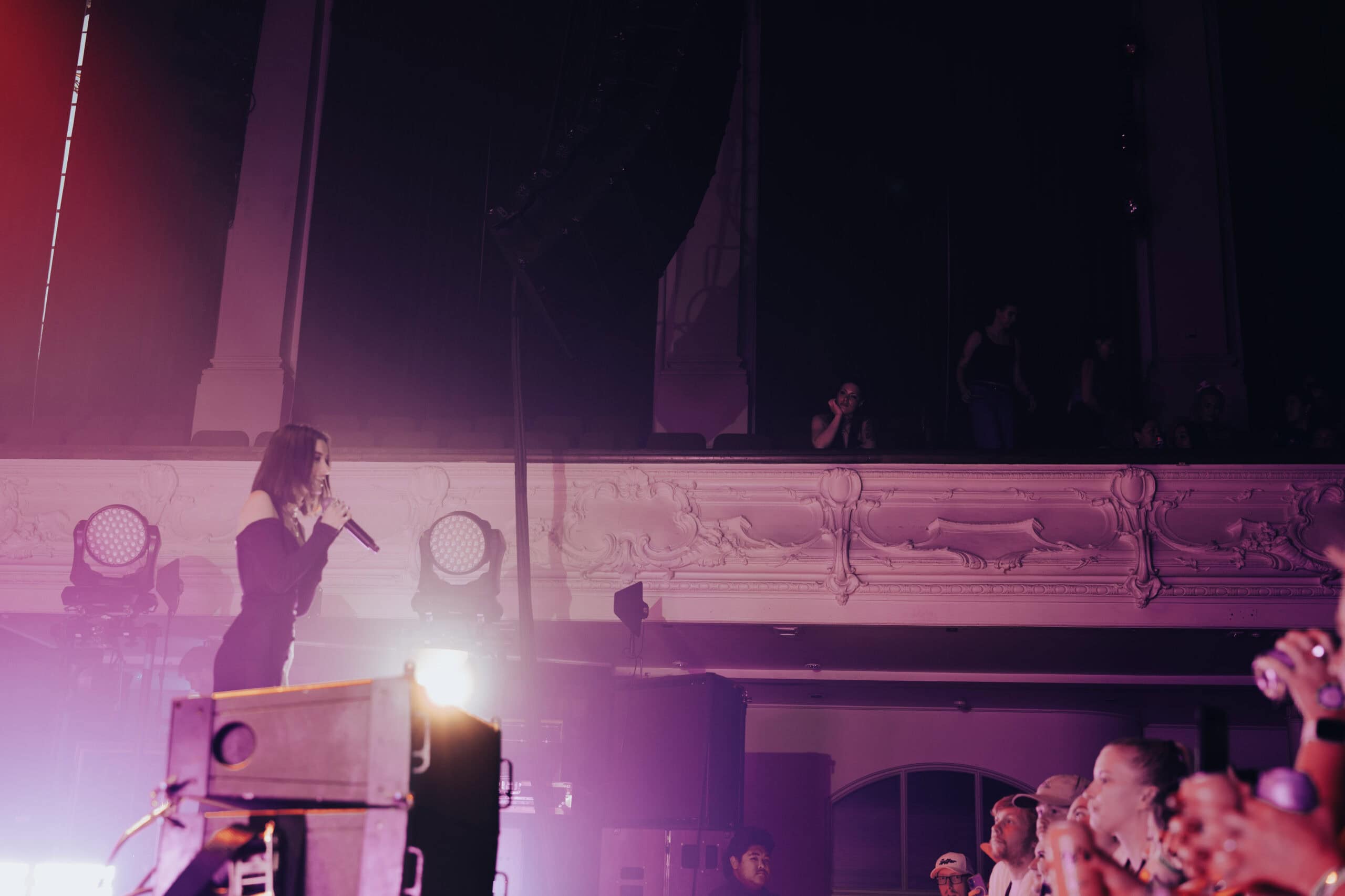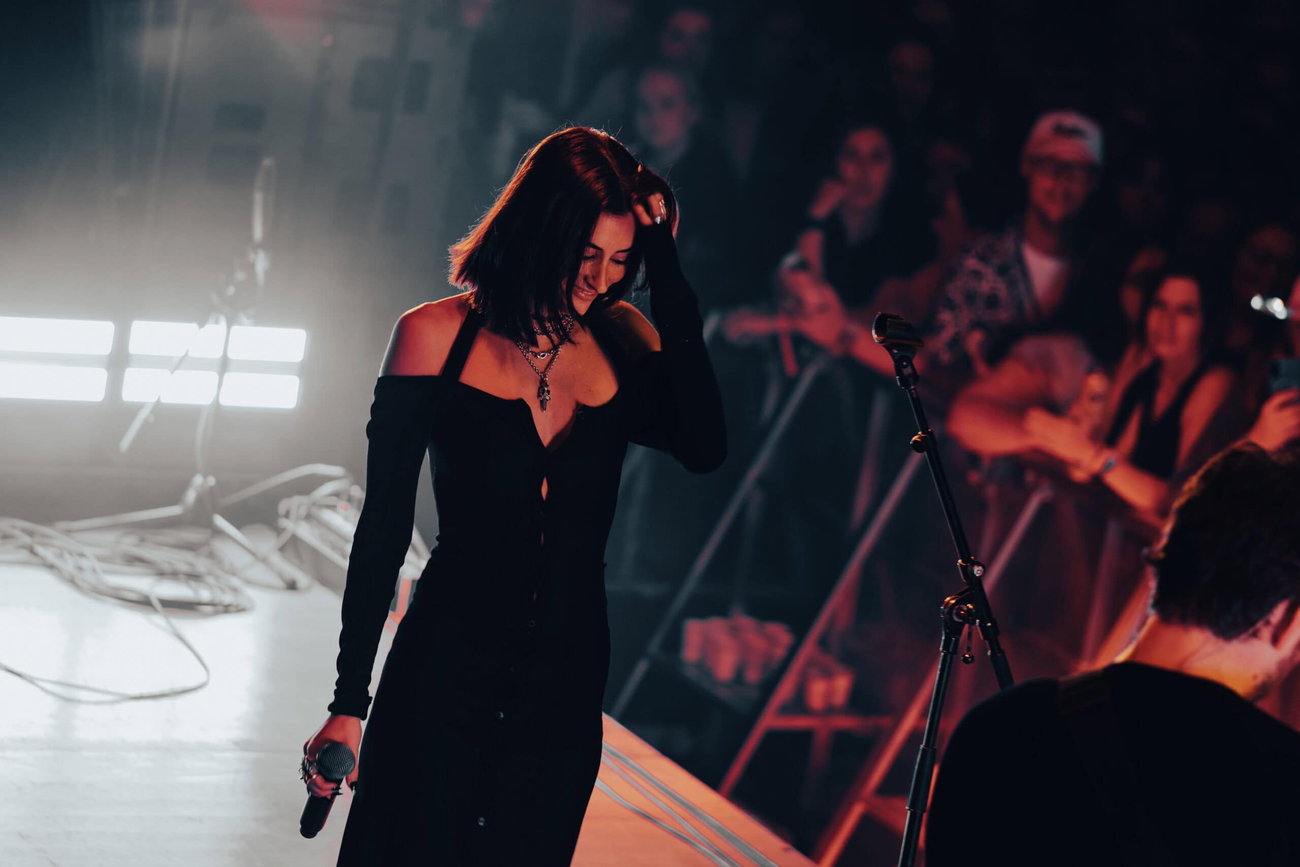 In the middle of it, there was a small, almost fragile moment. Jessie lifted her eyes toward the balcony and caught sight of me with a 200mm lens pointed at the stage. For a second, she slipped out of the song’s darkness, smiled, and gave me a quick wave. Sorry I missed the shot—just like I missed a couple of heartbeats.