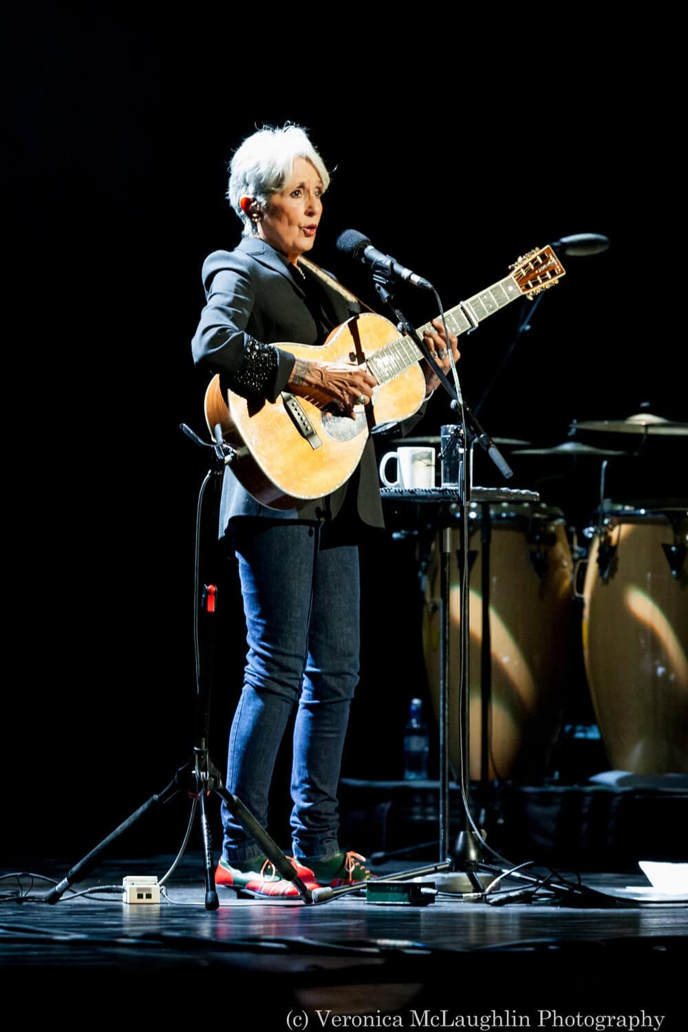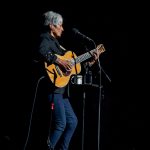 Again, like the previous night’s Neil Diamond show, there was no need for an opening act. Joan Baez strode, unassumingly on stage just after 8pm with her acoustic guitar. She looks fabulous and she wastes no time getting into the first song. “This was one of the compulsory songs in the coffee shops in 1958”, she tell the audience, reminding us both of where she comes from and how long she’s been doing this. The song is Freight Train, a traditional folk song, a wistful tune about hopping trains and leaving your mark in this world.
