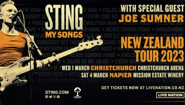 Be sure to catch Sting’s My Songs Tour when it comes to New Zealand. Click here for tickets