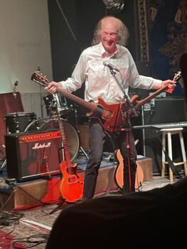 And he got things going with hit #1…1977’s (Cor Baby That’s) Really Free, followed by its ‘B’ side, Beware Of The Flowers (‘Cos I’m Sure They’re Going To Get You Yeah). Back in ’77 they were recorded with Wild Willy Barrett, but Otway was flying solo tonight, although his long-suffering roadie “Deadly” was very visible, adjusting mics, swapping out guitars and serving as the butt of Otway’s jokes.
