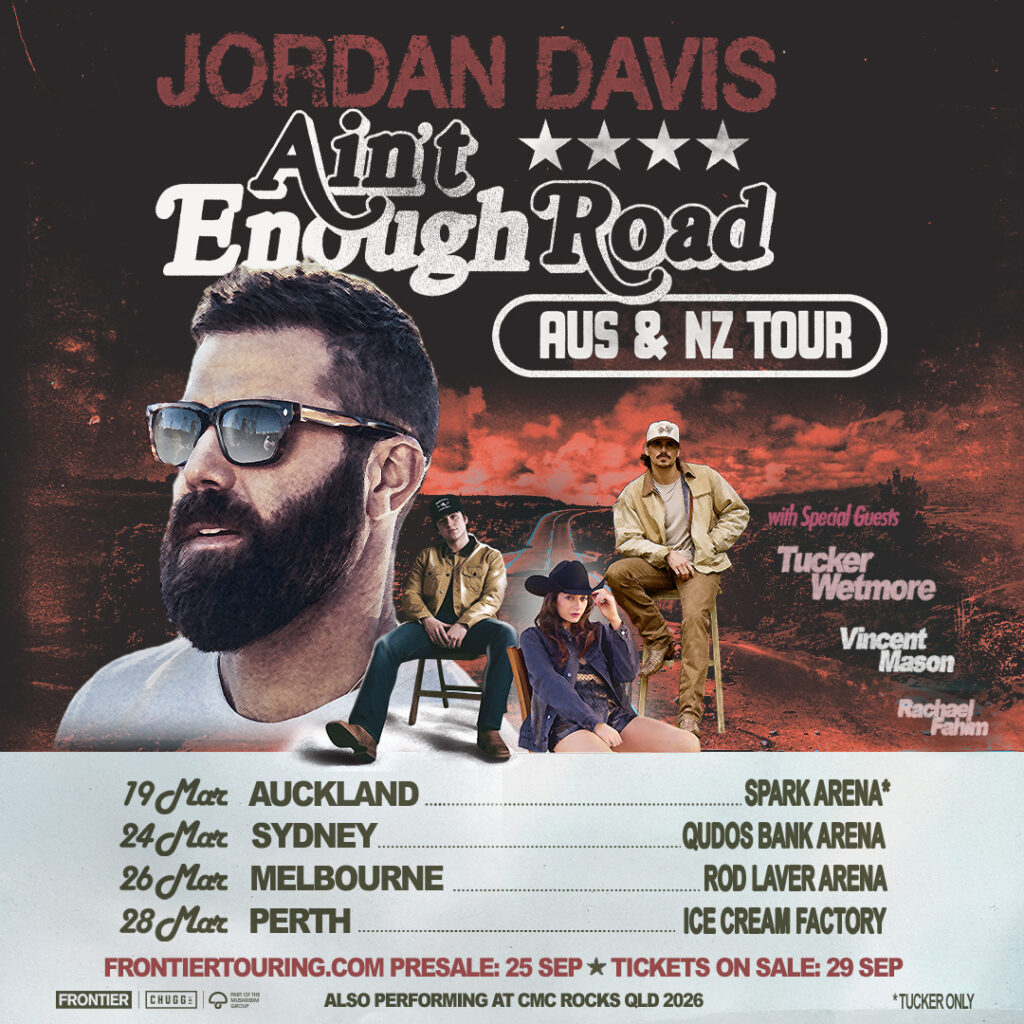 As Jordan Davis prepares to make his highly anticipated return to Australia following an incredible 2025 of unforgettable live performances, don’t miss the country star as he heads across Australia and New Zealand next March 2026, with special guests Tucker Wetmore, Vincent Mason and Rachael Fahim.