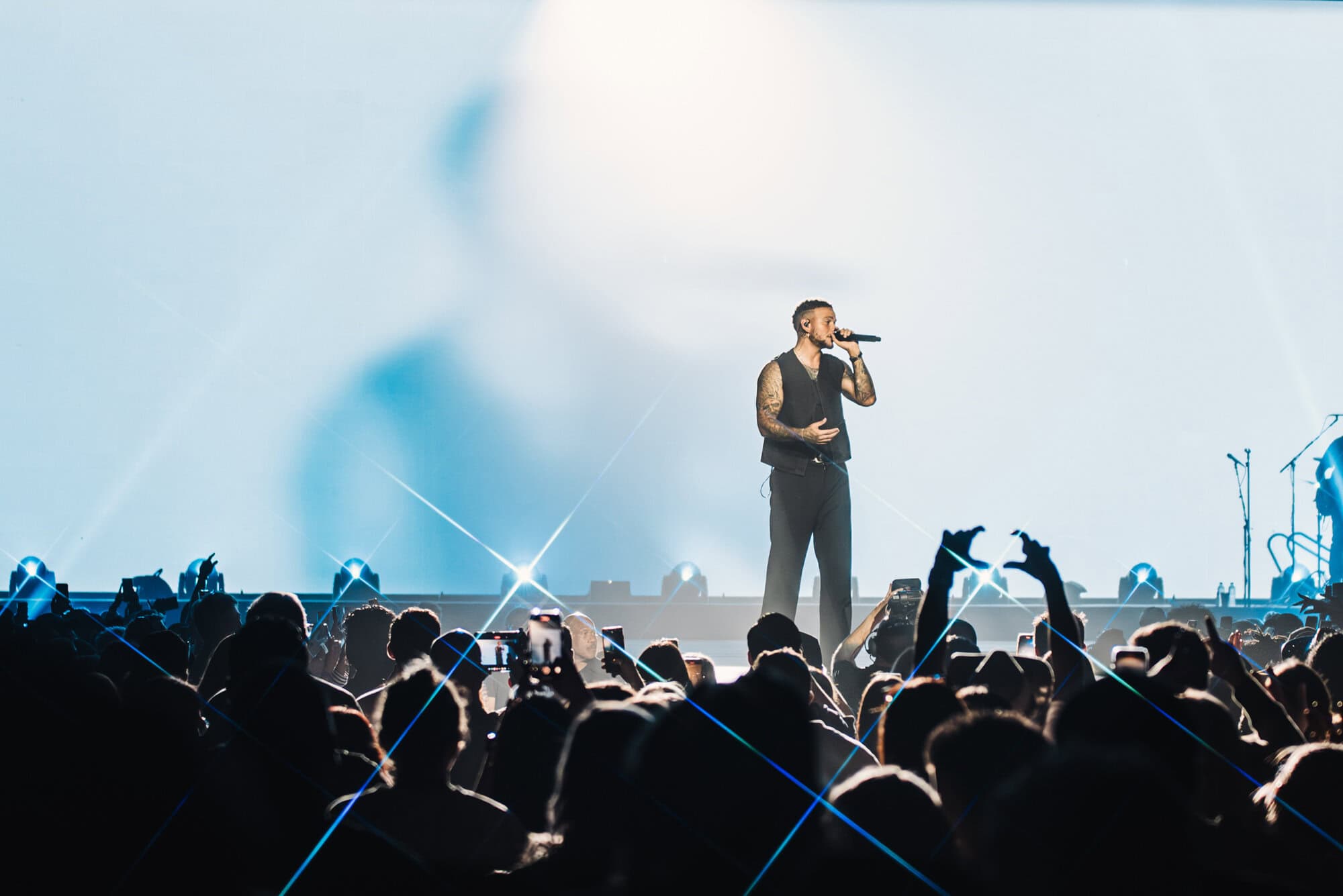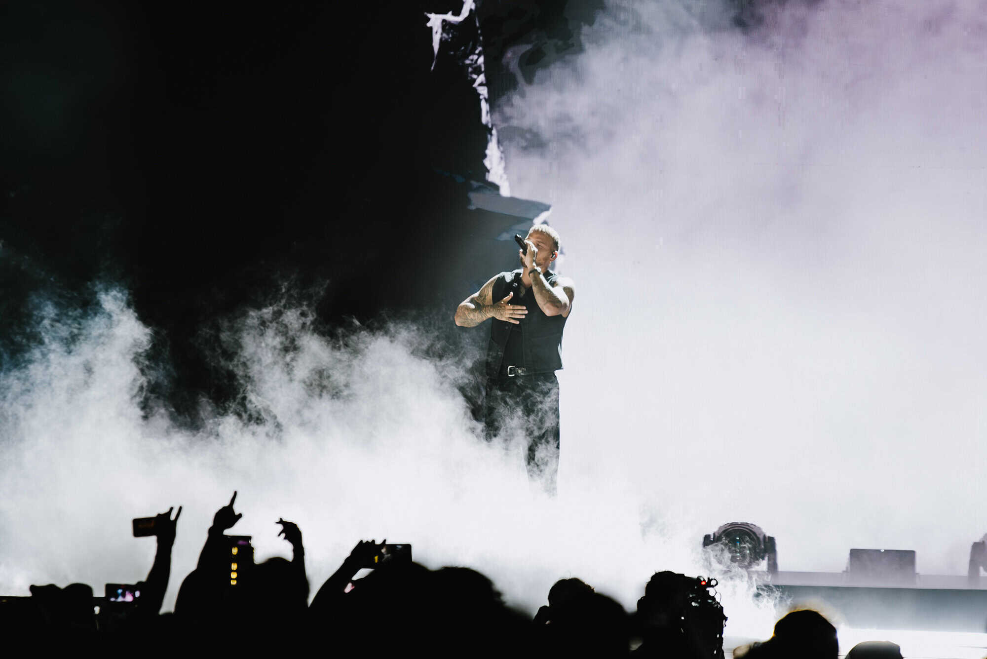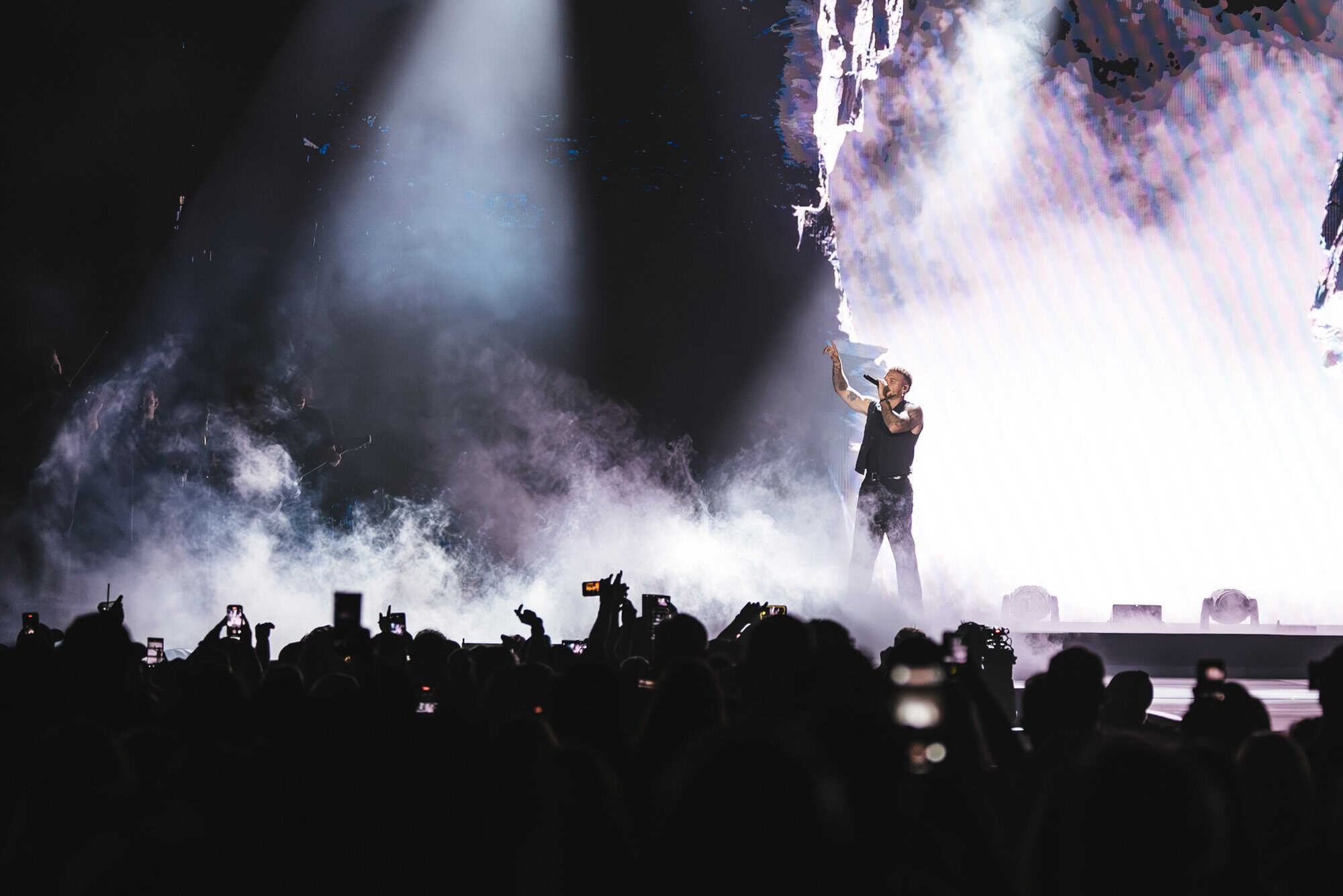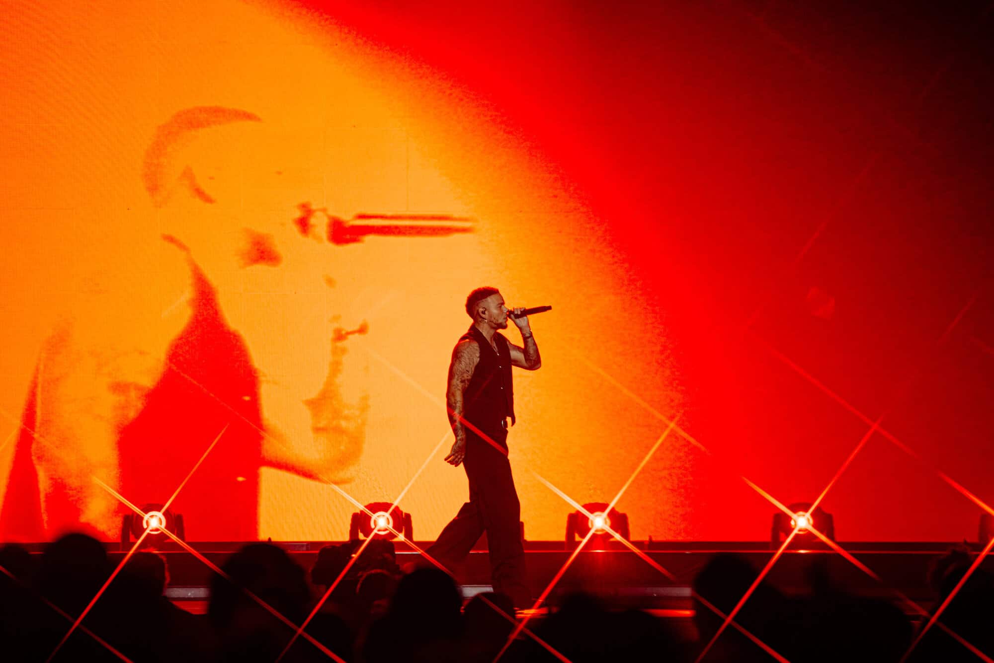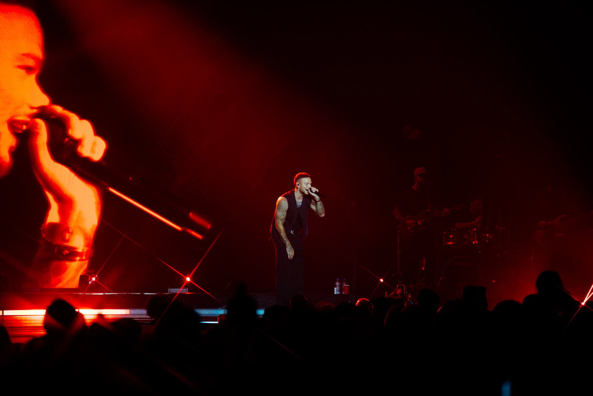 Tonight’s production rivalled the bombast of Coldplay’s stadium show, featuring shooting flames, lasers and other pyrotechnics.