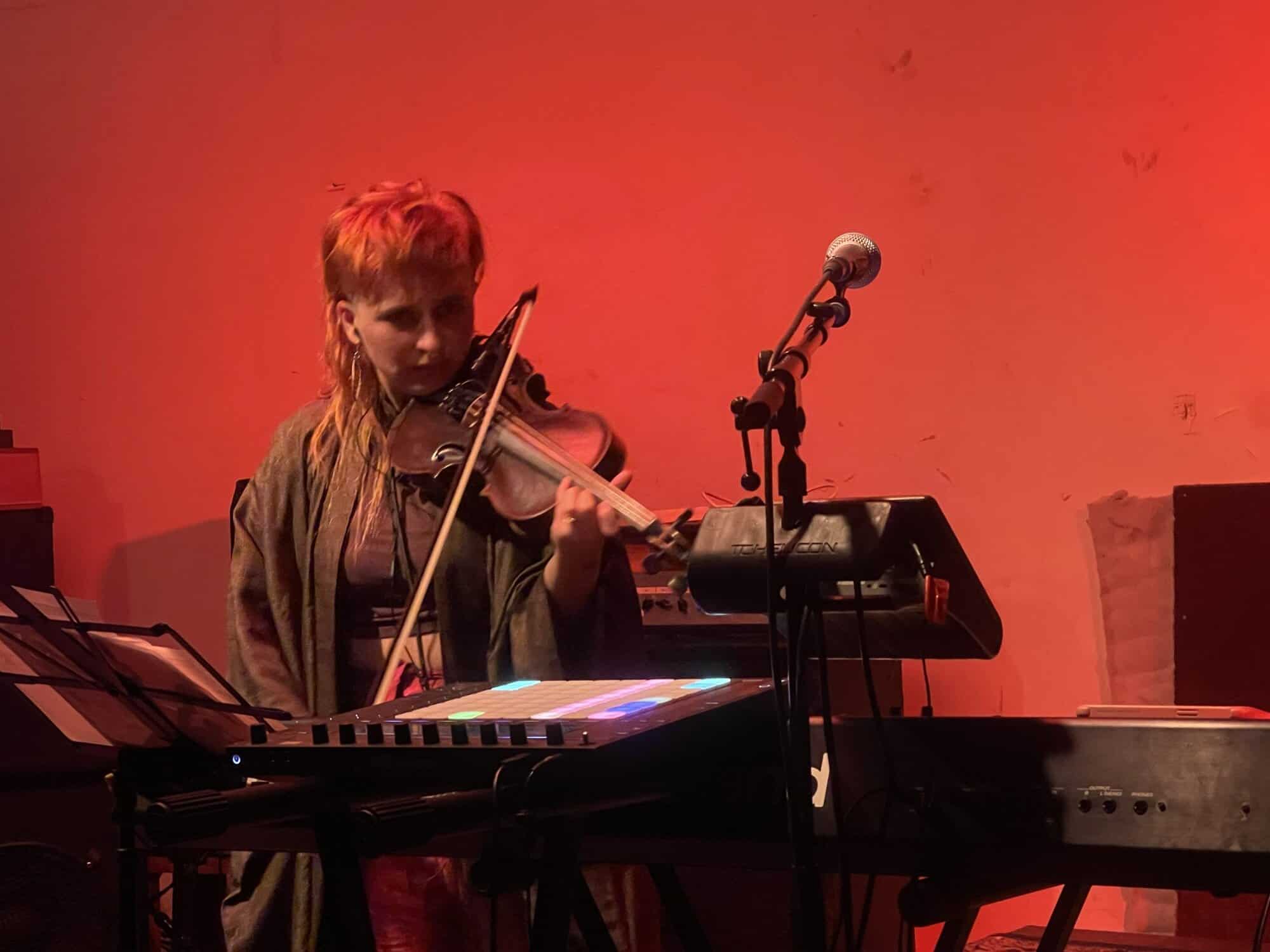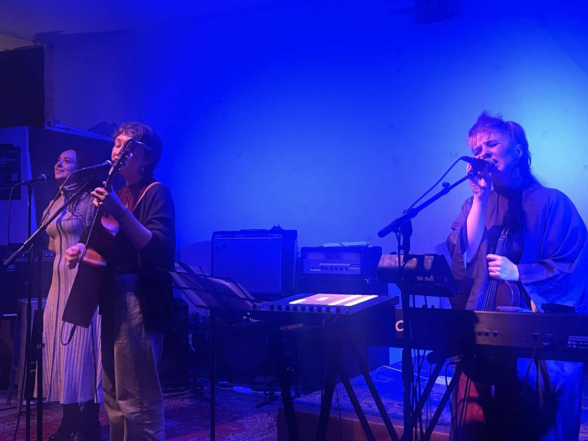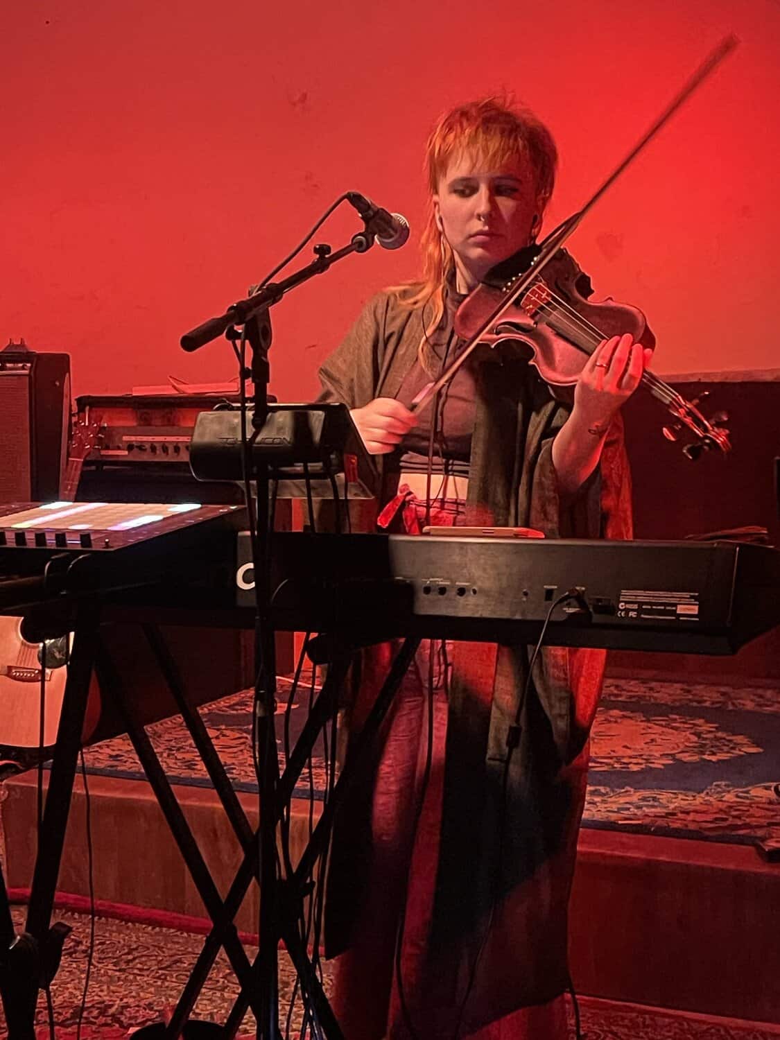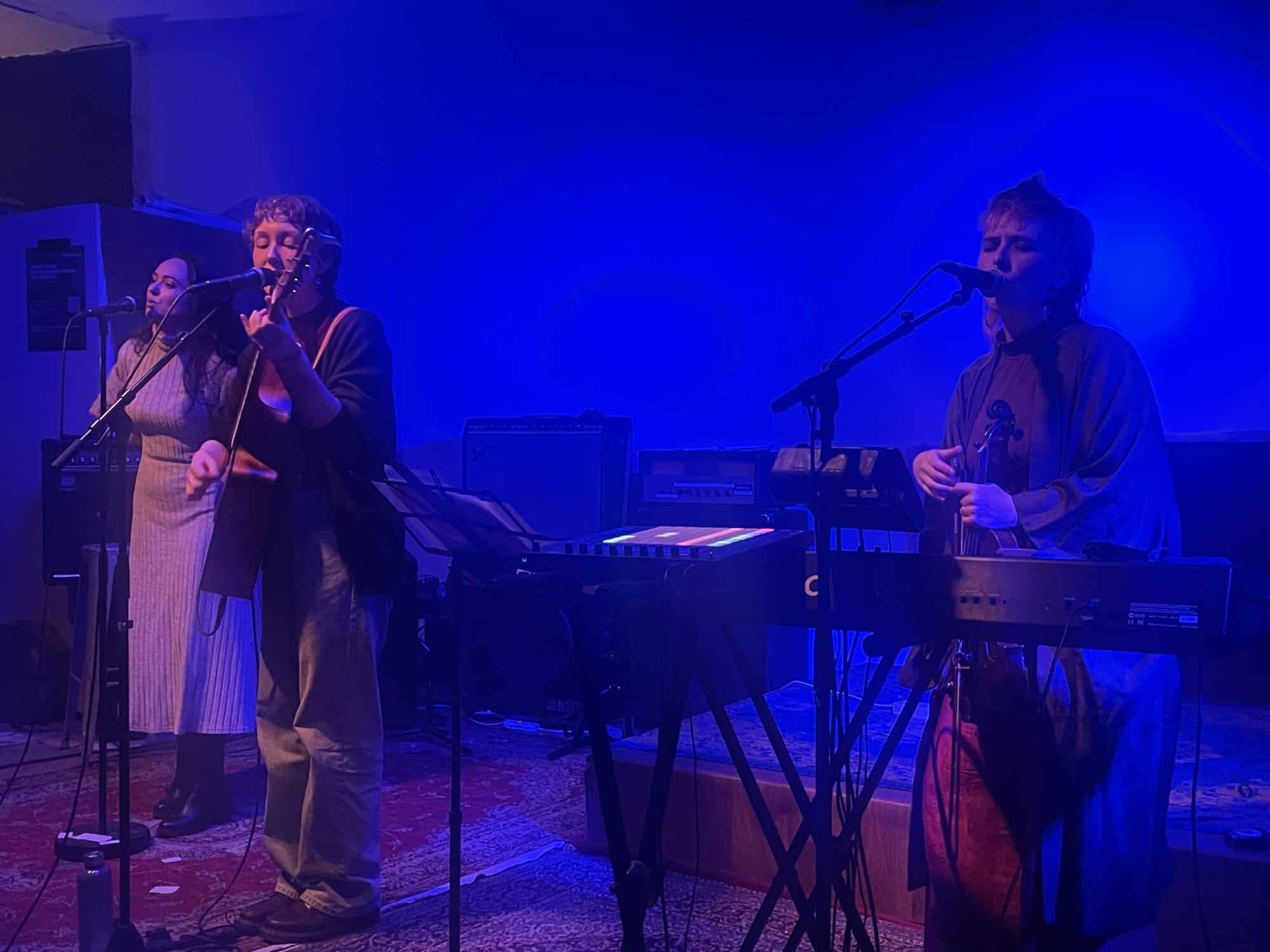 Calla returned to sing and play her fiddle during Your Surface Settles and also set-closer, Leap/Landing, the single just released on Friday (see 13th Floor’s New Song Of The Day). Abigail Knudson, who produced the track, also added harmony vocals, with the three of them singing a reassuring, “You are held now”, to close out the set.