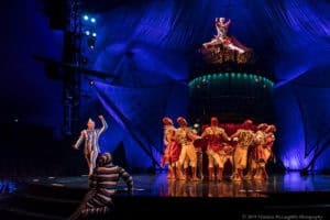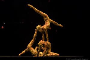 The word “KOOZA ” is inspired by the Sanskrit word Koza which means ‘box’ or ‘treasure.’ We discover this in the opening scene where The Trickster bursts out of a jack in a box – an ode to the origins of circus performance. Throughout, we are taken back to those origins with a joyous undertone of playfulness. There’s also a nostalgic element to the choice of some tricks – think teeter boards and flips – which counter-balance the sophistication and complexity of many of the other moves of this talented and highly-trained troupe.