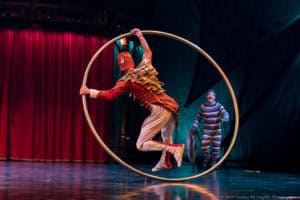 The audience held its collective breath as two Colombian men took on the spinning Wheel of Death five stories high. The performers’ astonishing physicality and threatening, muscular stance the perfect foil for the diabolical spinning metal structure which itself was a true feat of human engineering skill. No need for animals in a circus when this level of creativity, daring and training is all that a truly Great Circus needs.