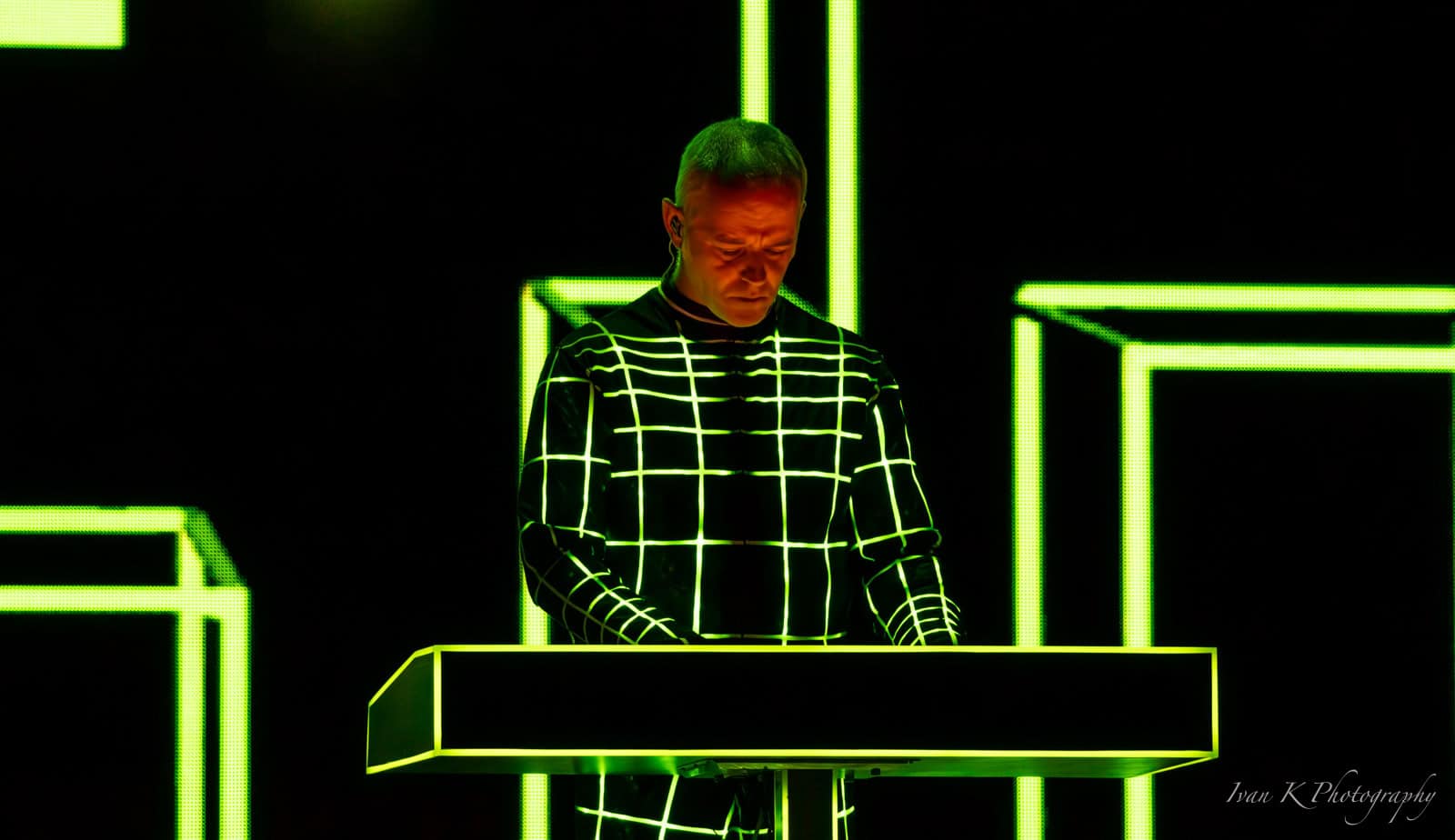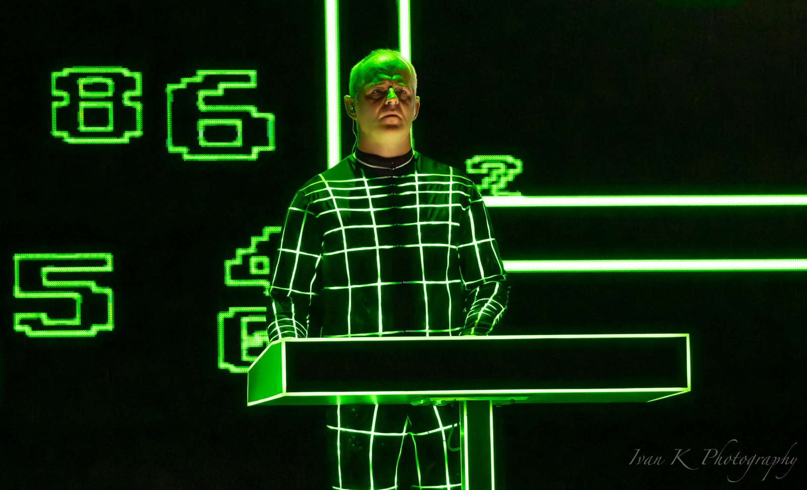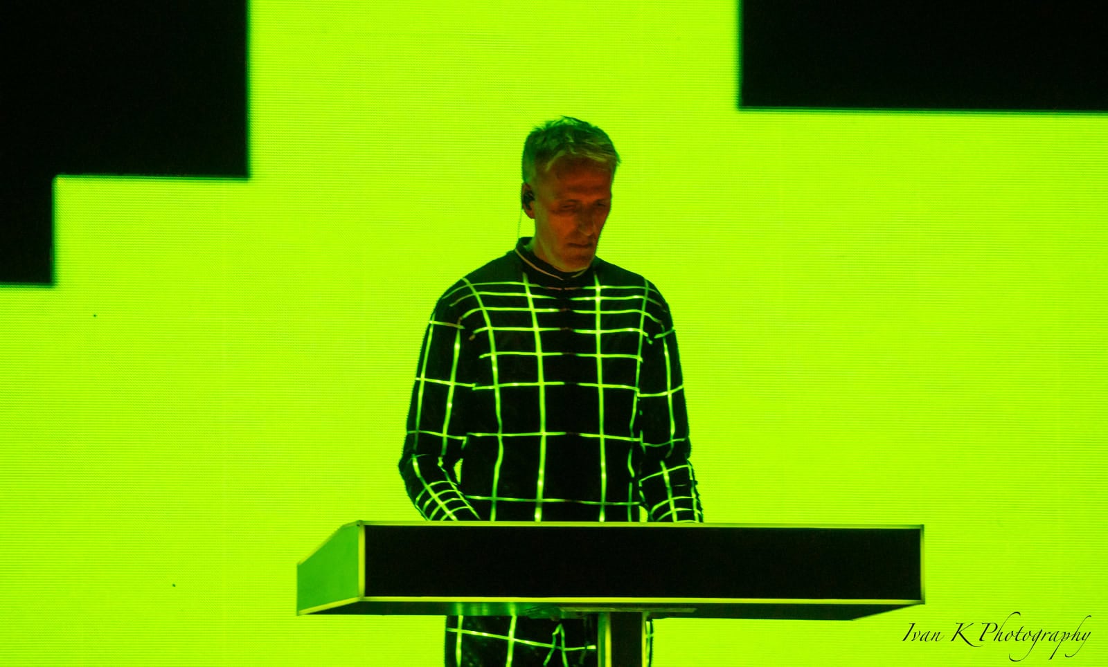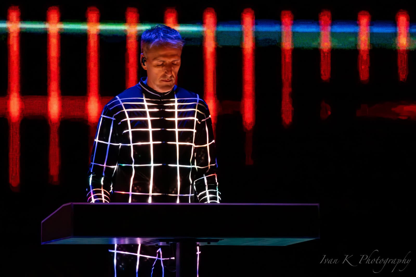 Dressed in their matching suits, which glow during some lighting phases, they appeared almost as characters from the film Tron. There’s a sense the spacing between the members’ set-ups is measured to the very milimetre.