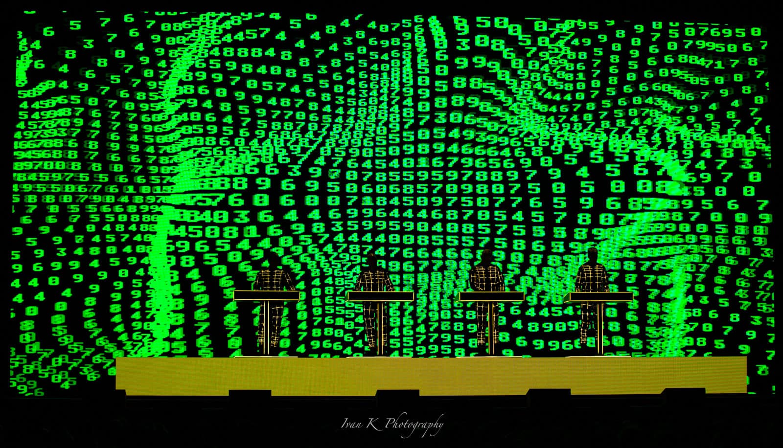 All the Kraftwerk classics came out – Trans Europe Express, Autobahn, Computer Love, We Are The Robots, Radioactivity – each accompanied by stunningly powerful visuals reflecting either the theme and minimal lyrics of the song, or referencing the band itself.