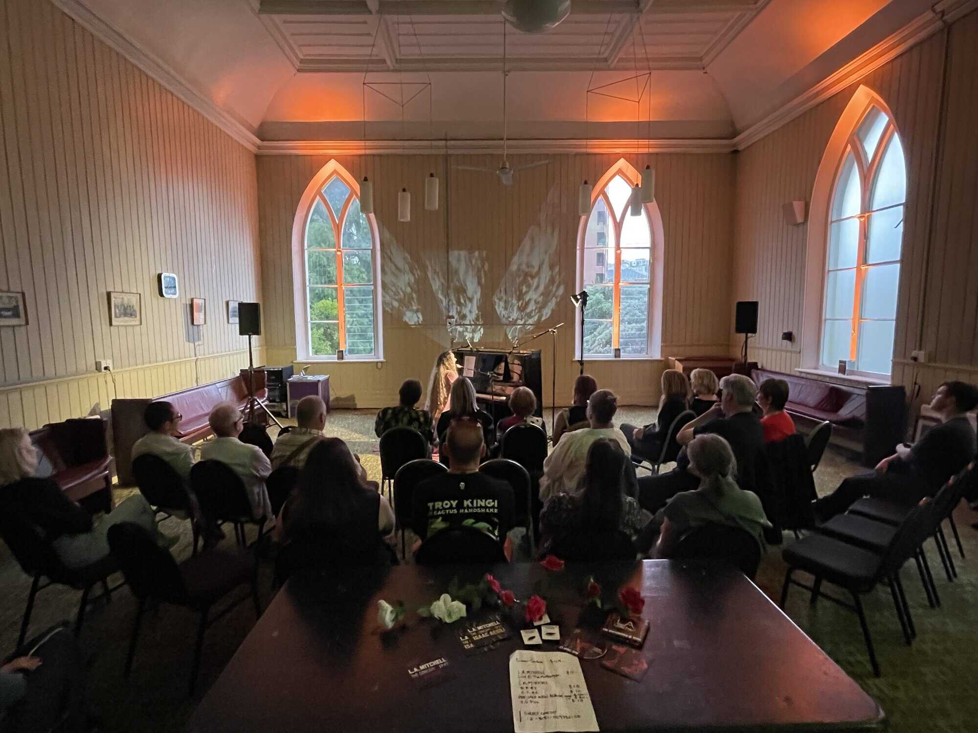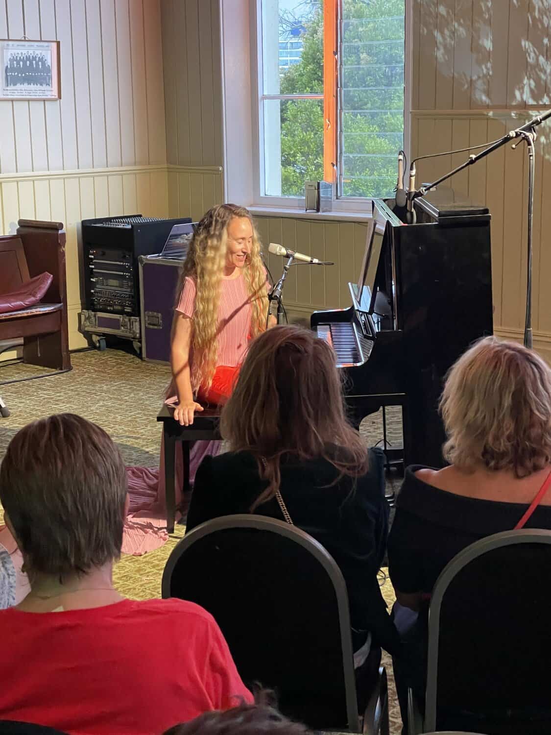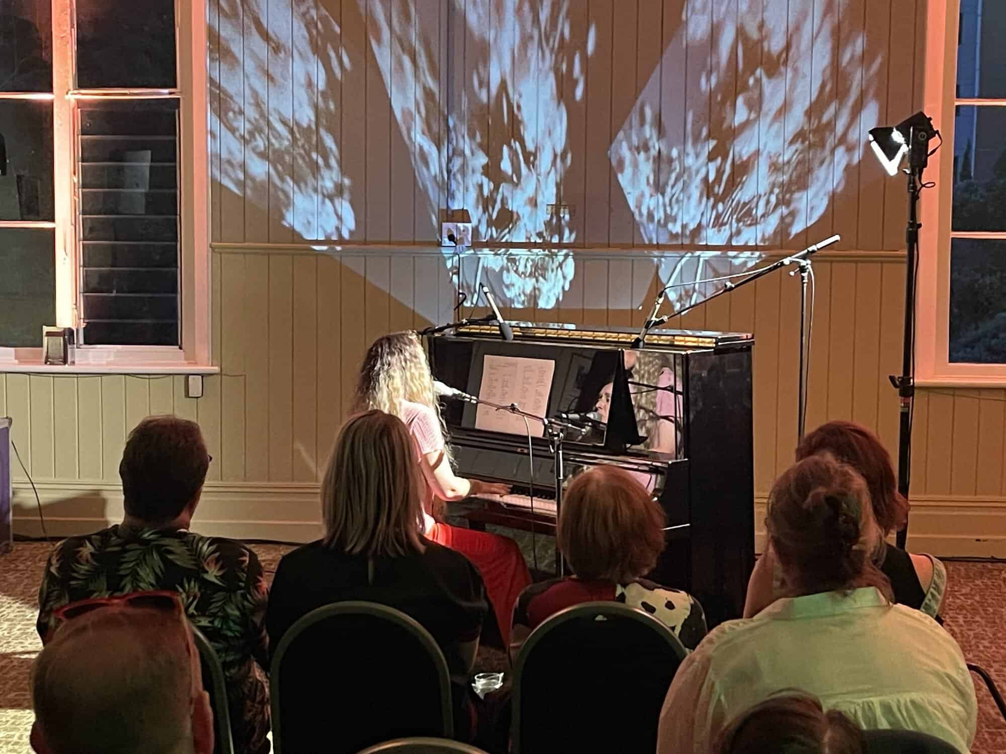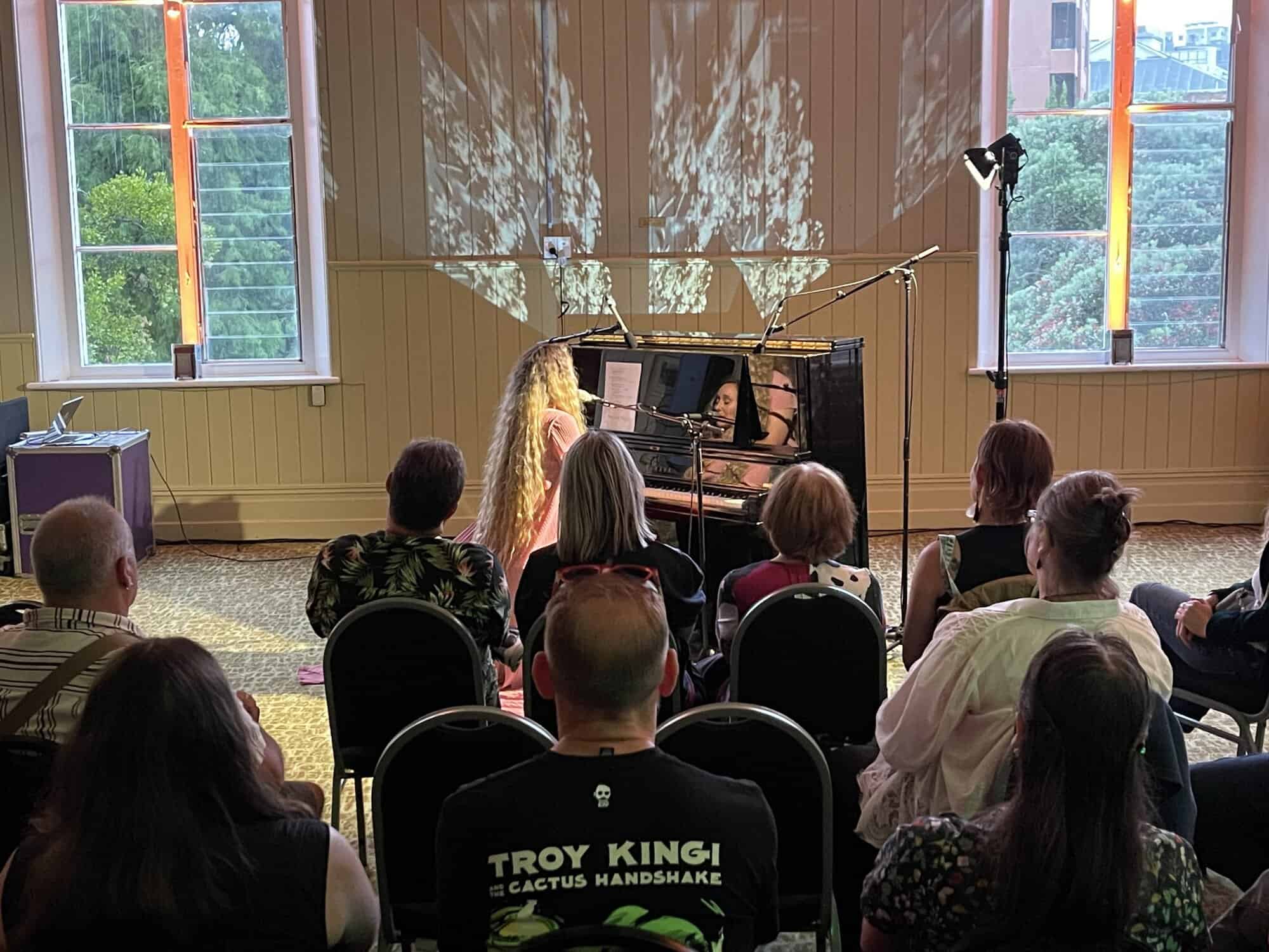 Mitchell opened with Listening for the Weather, a Bic Runga cover that set the tone for an evening steeped in warmth and reflection. She spoke of her decade-long hiatus from releasing original music – a period spent navigating family life, collaborating with her husband in their folk project Terrible Sons, and recalibrating her creative priorities. Last night, we were fortunate to sit with her at the piano as she unpacked pieces of her journey through song.