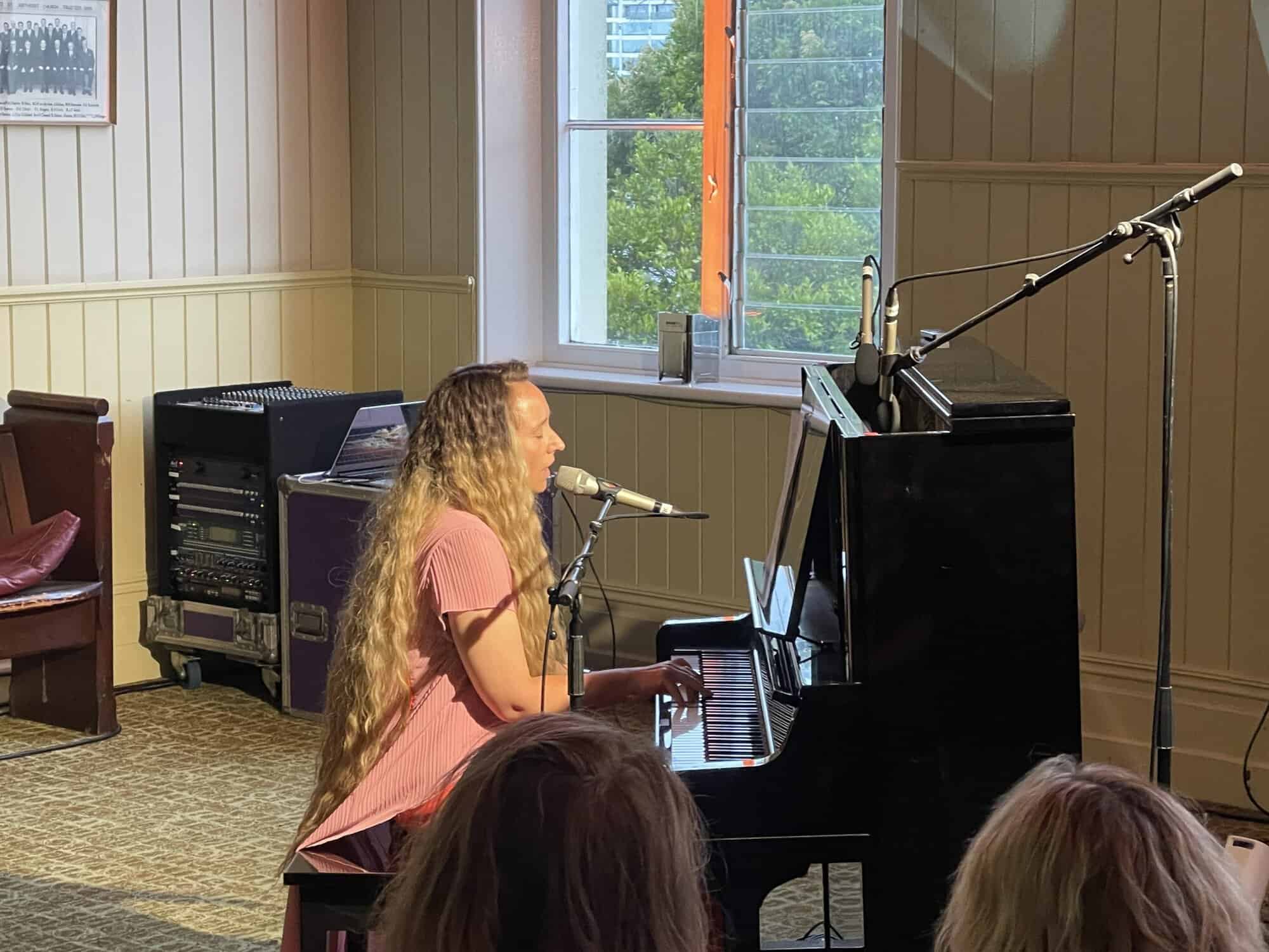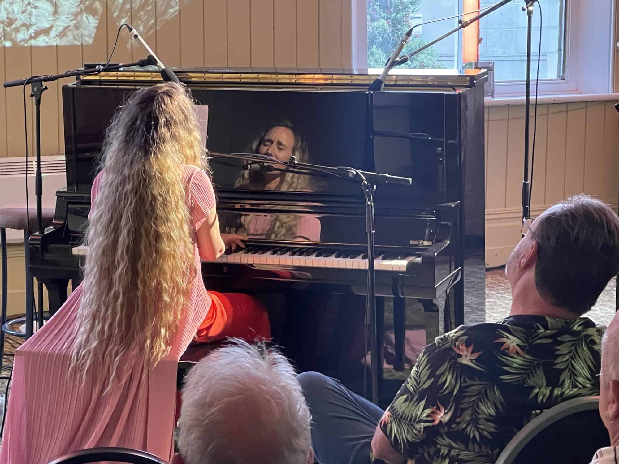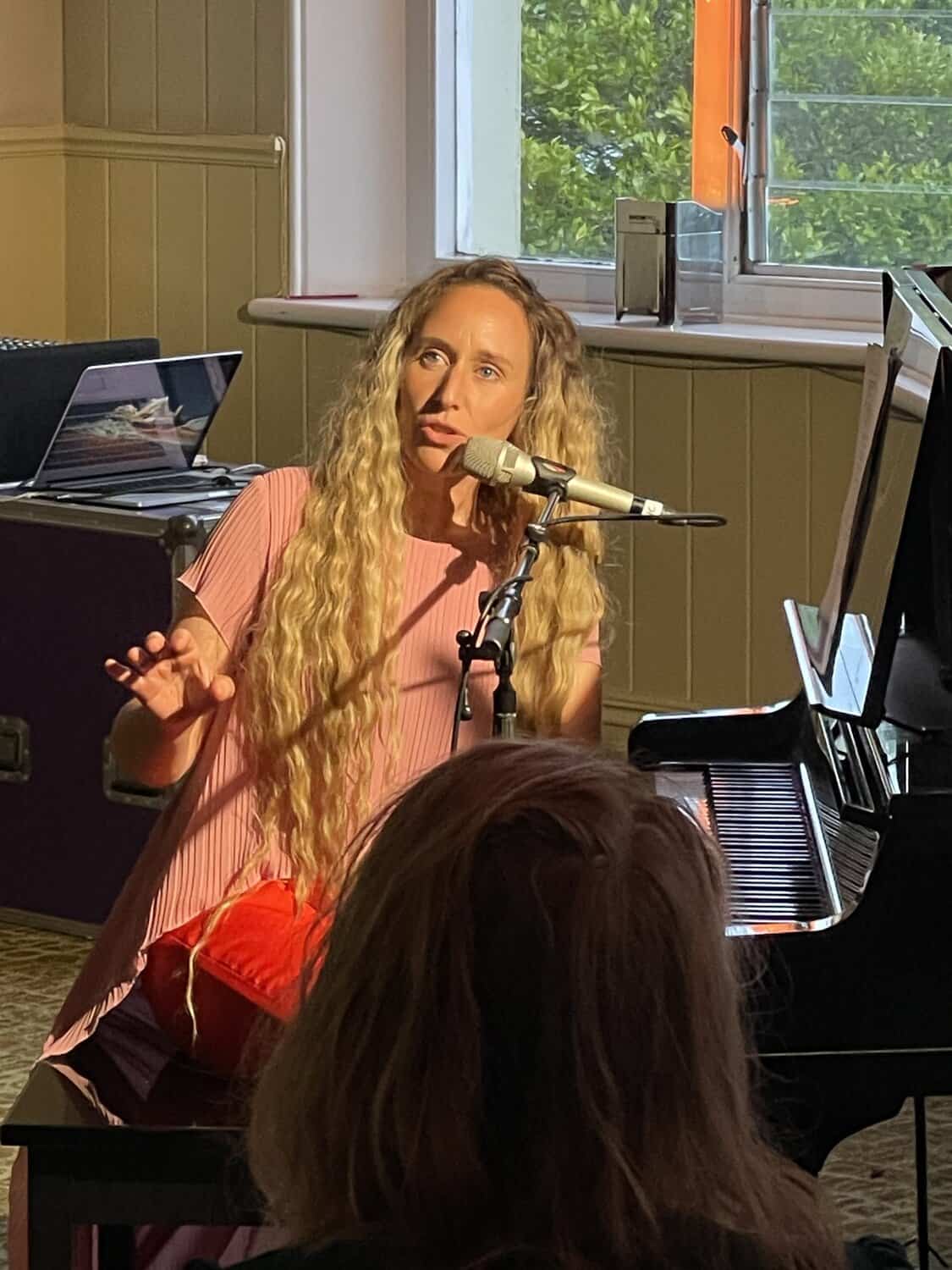 Mitchell opened with Listening for the Weather, a Bic Runga cover that set the tone for an evening steeped in warmth and reflection. She spoke of her decade-long hiatus from releasing original music – a period spent navigating family life, collaborating with her husband in their folk project Terrible Sons, and recalibrating her creative priorities. Last night, we were fortunate to sit with her at the piano as she unpacked pieces of her journey through song.