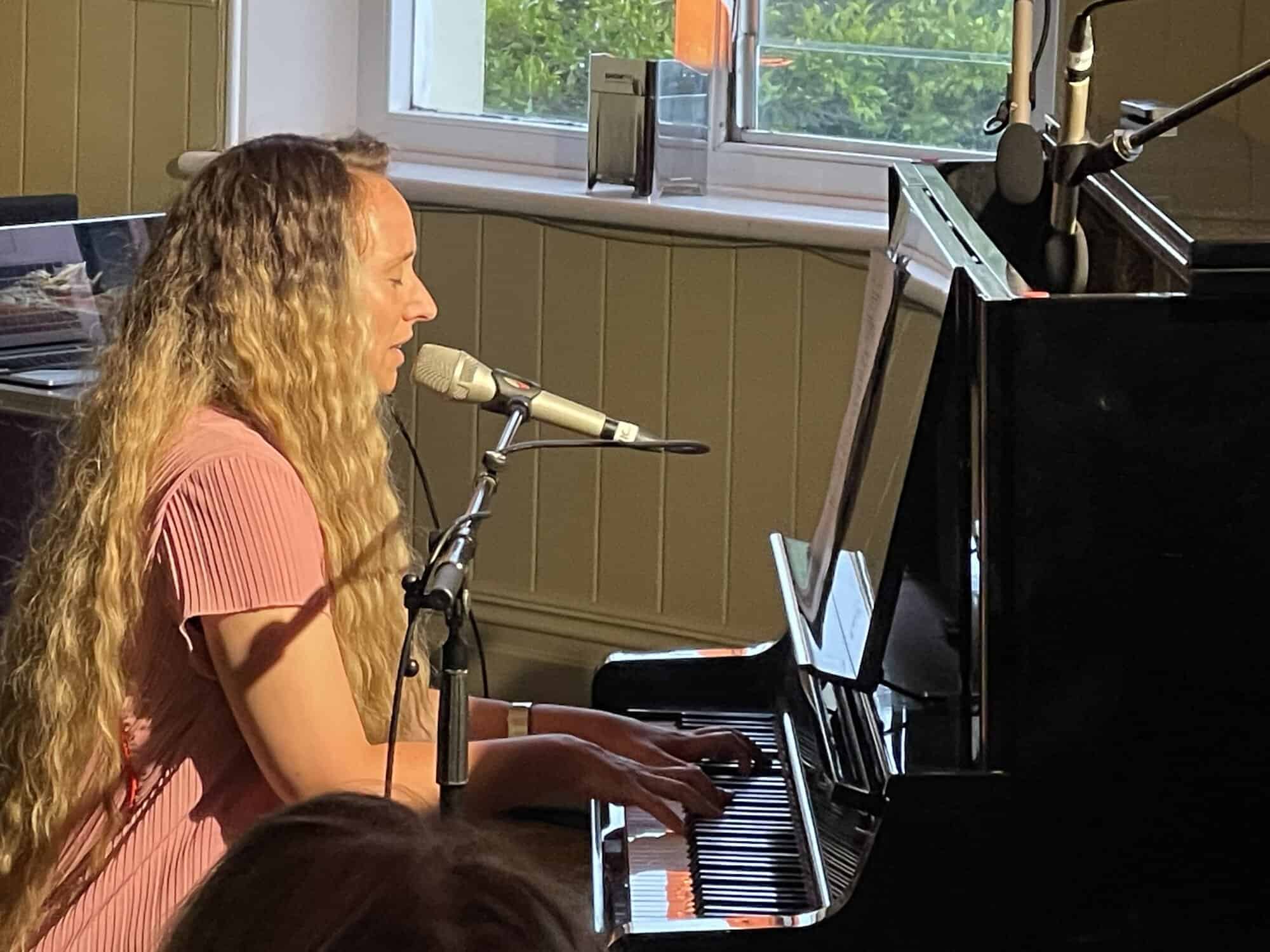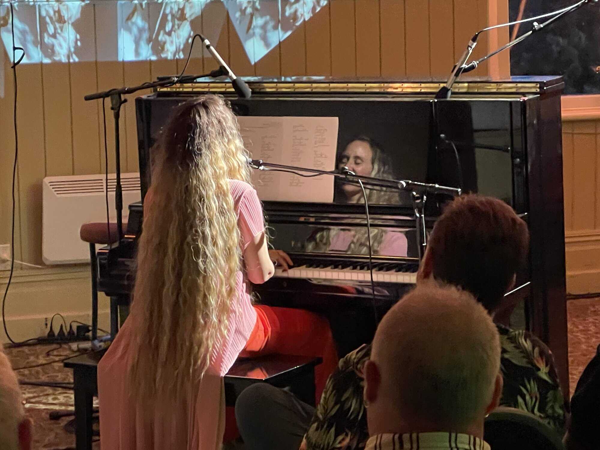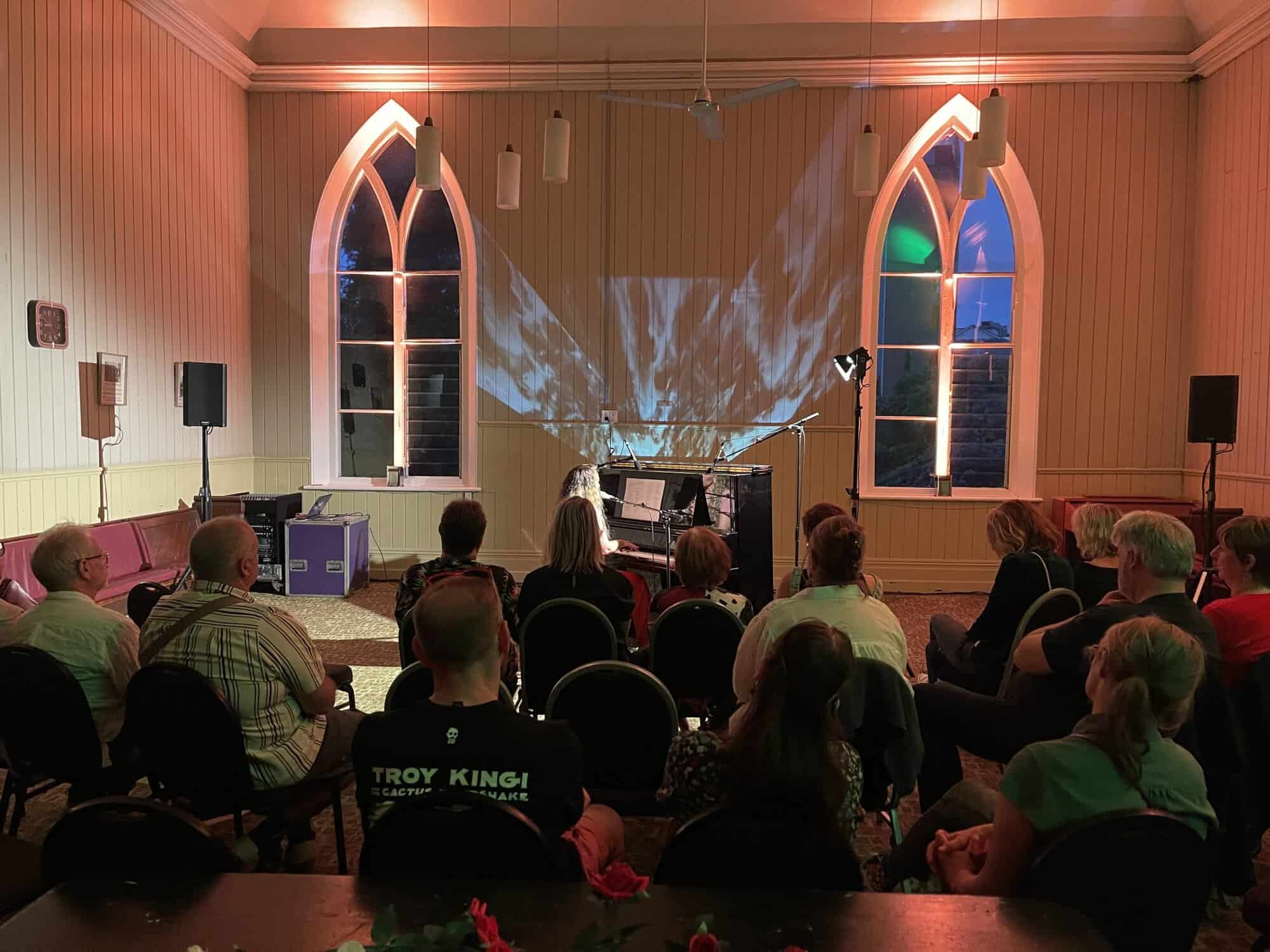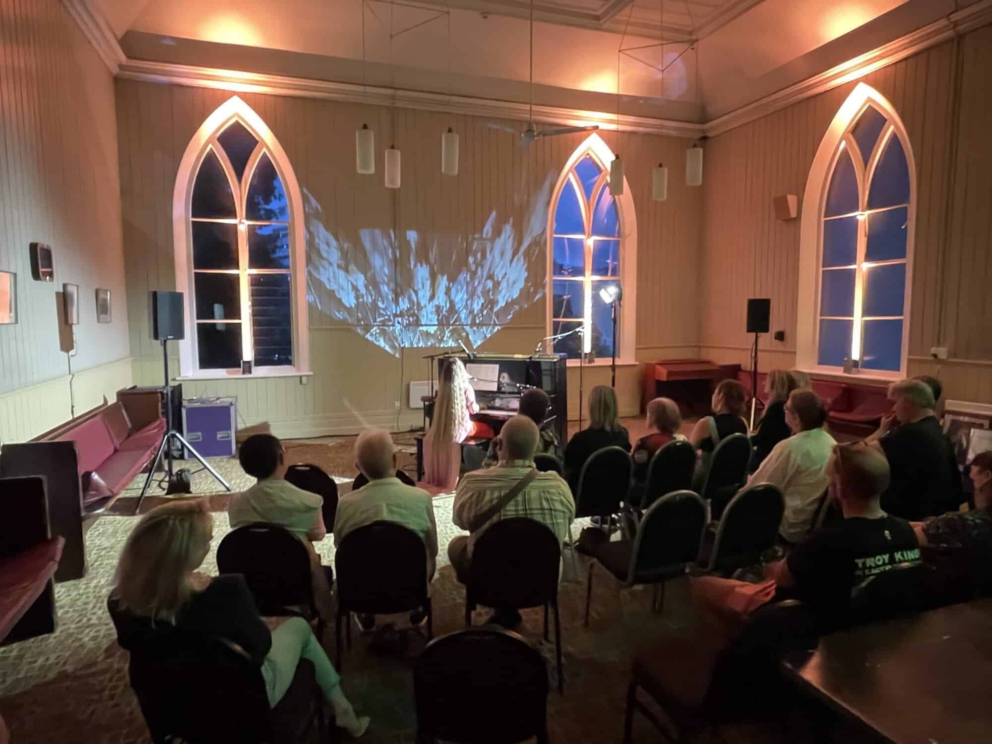 Mitchell opened with Listening for the Weather, a Bic Runga cover that set the tone for an evening steeped in warmth and reflection. She spoke of her decade-long hiatus from releasing original music – a period spent navigating family life, collaborating with her husband in their folk project Terrible Sons, and recalibrating her creative priorities. Last night, we were fortunate to sit with her at the piano as she unpacked pieces of her journey through song.