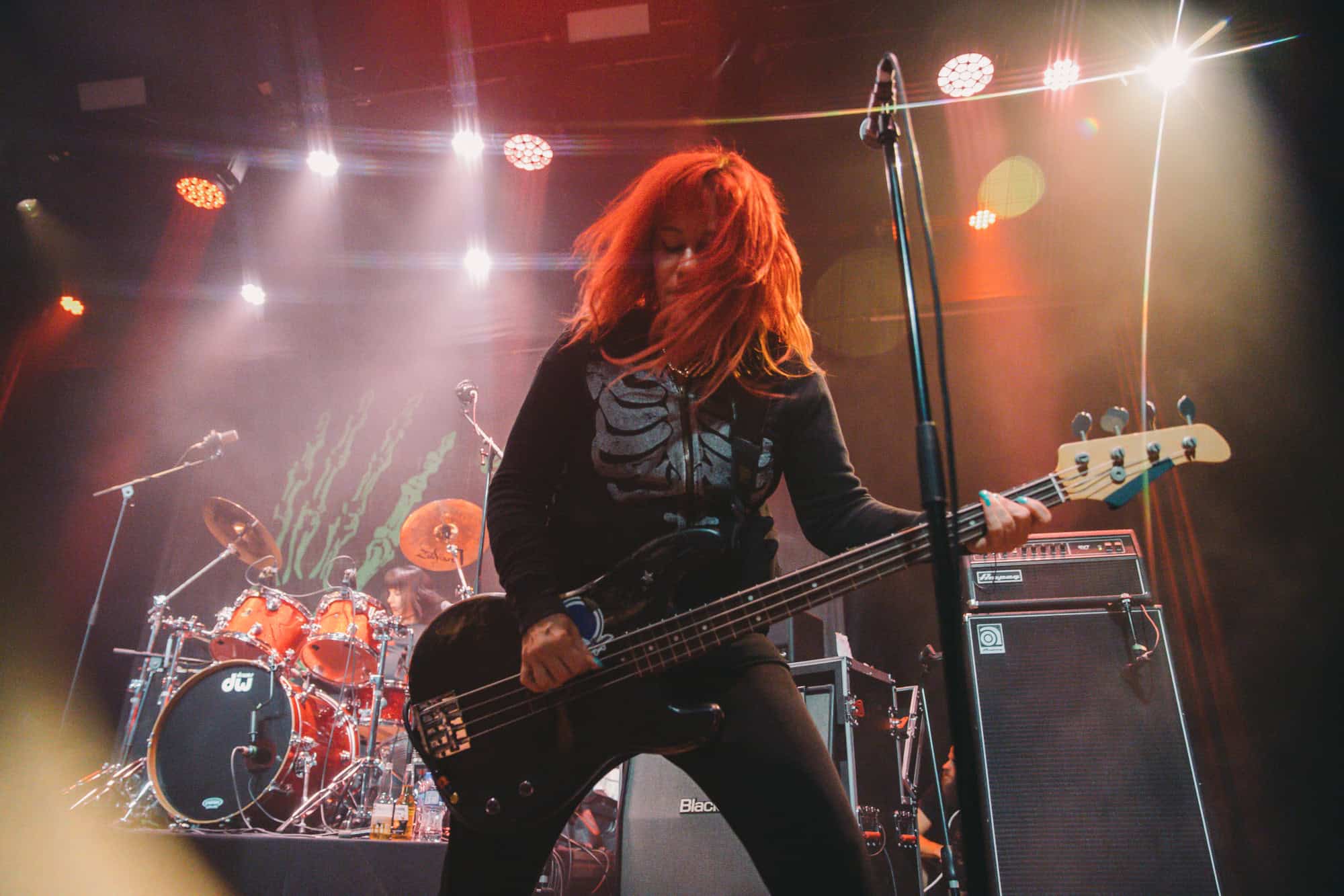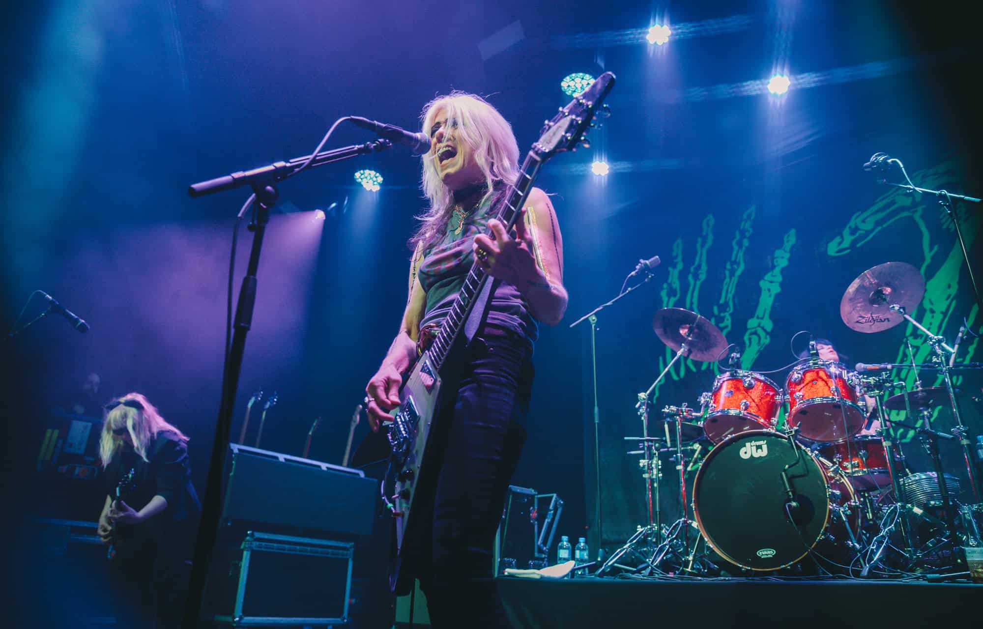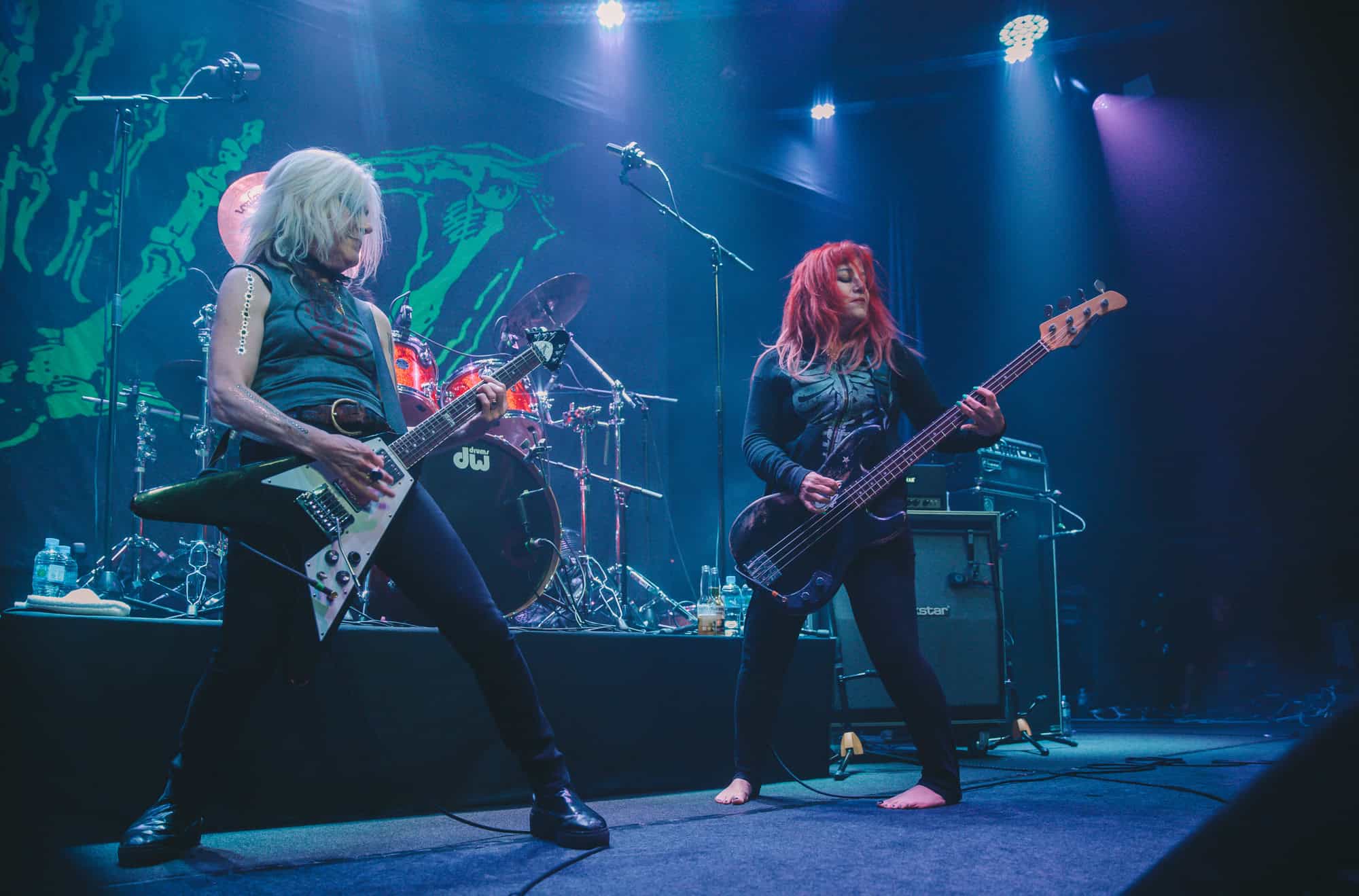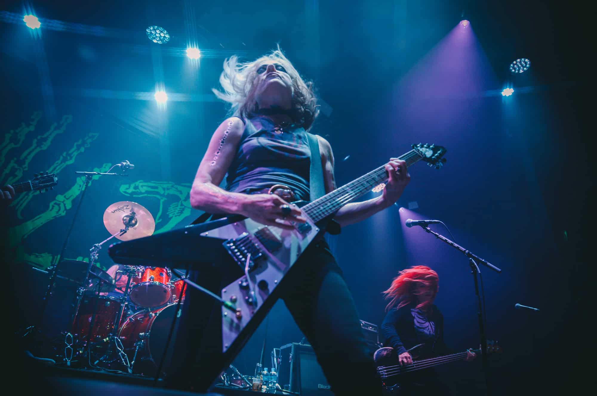 Staying true to the album’s original order. Diet Pill is intro’d by Donita as a song about domestic abuse, quickly followed by Everglade on which the vocal duties are taken up by bassist Jennifer Finch whose radioactive red hair radiates as her powerhouse vocals feature, and then it swings over to Suzanne Gardner who takes control for Slide, this sharing of vocals adds excitement to the night