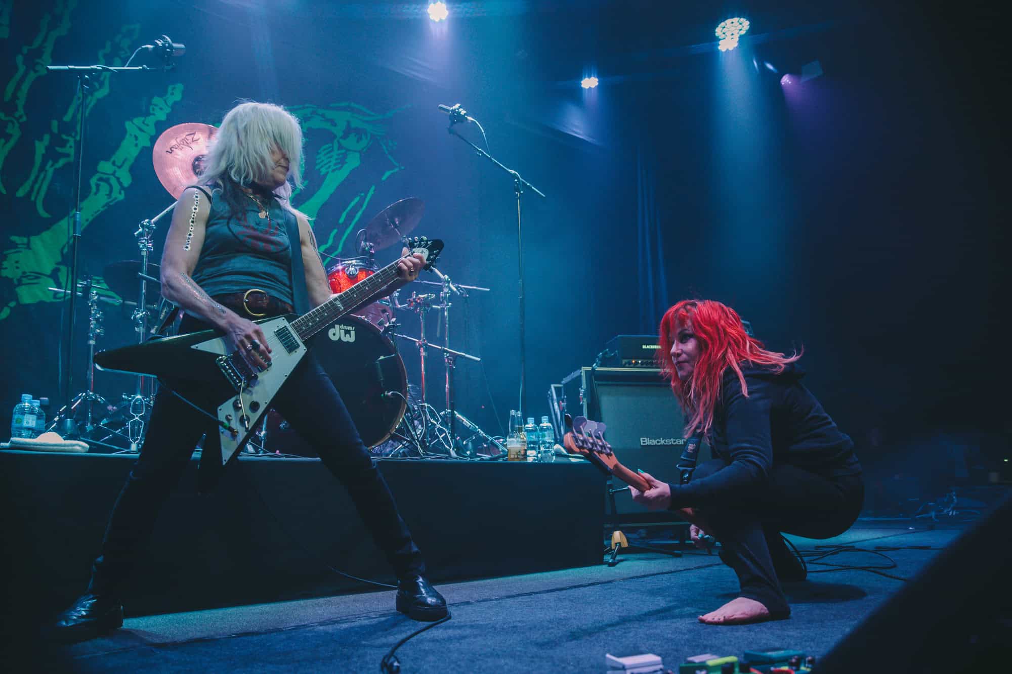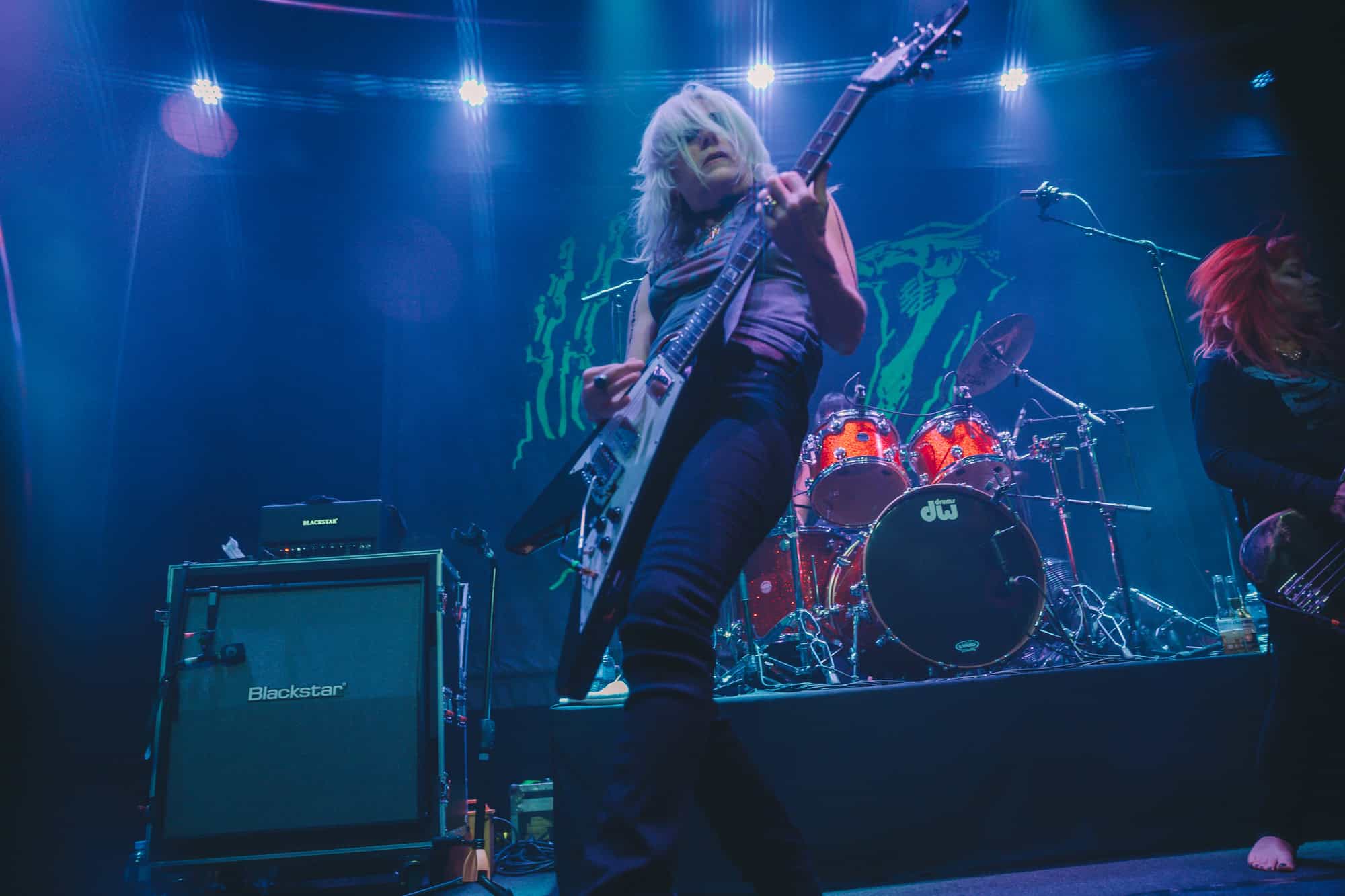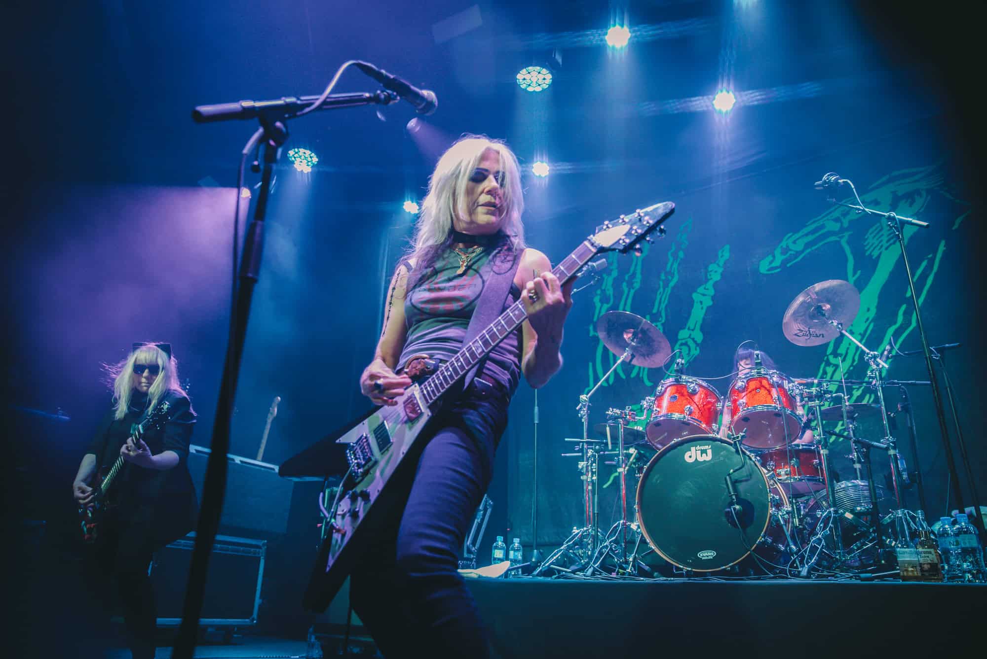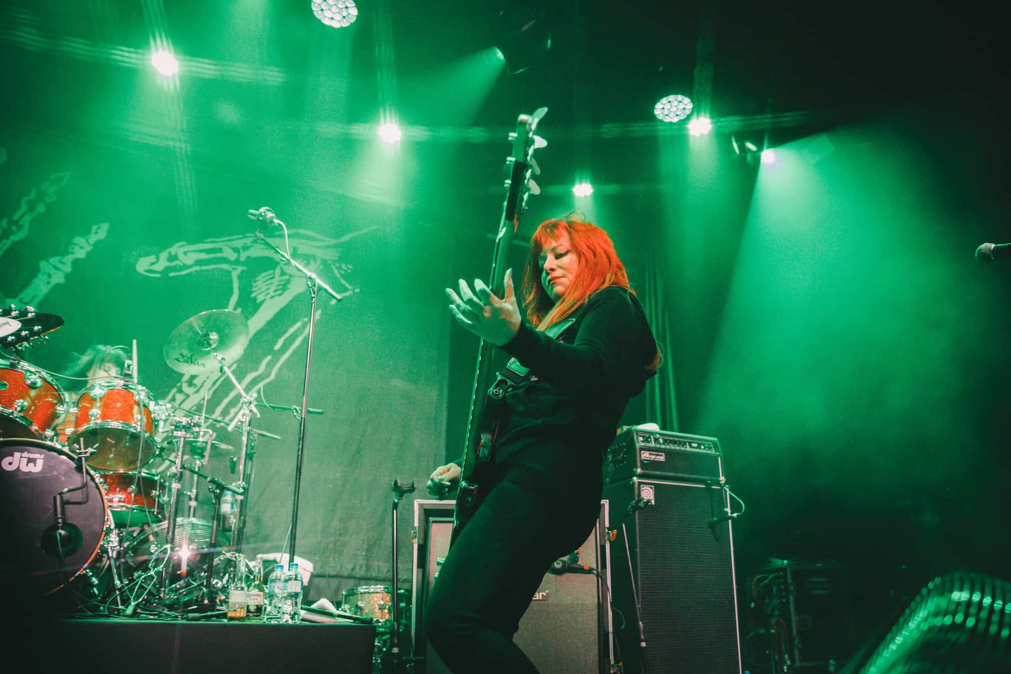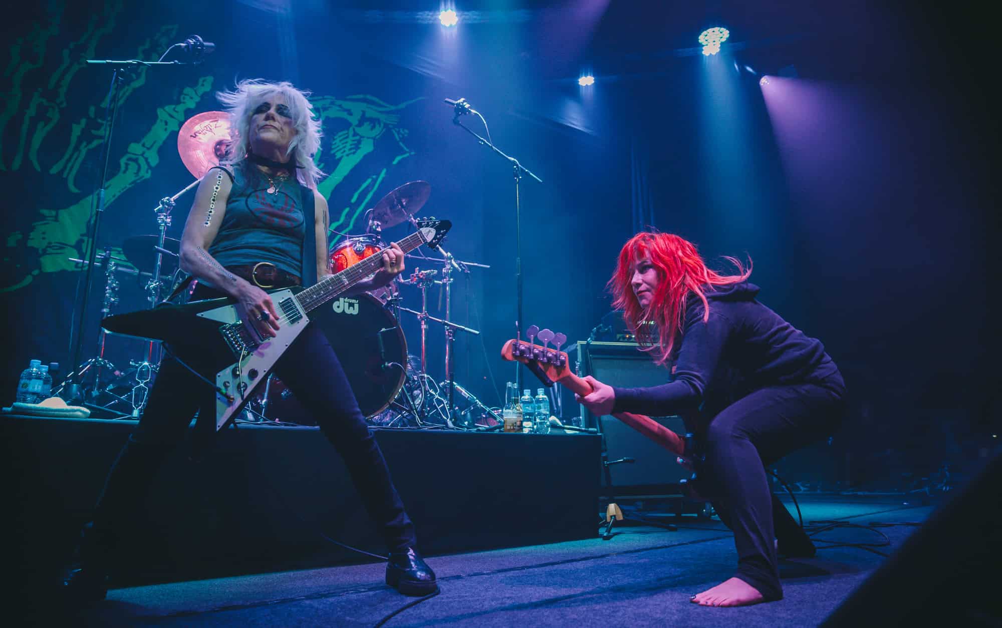 Staying true to the album’s original order. Diet Pill is intro’d by Donita as a song about domestic abuse, quickly followed by Everglade on which the vocal duties are taken up by bassist Jennifer Finch whose radioactive red hair radiates as her powerhouse vocals feature, and then it swings over to Suzanne Gardner who takes control for Slide, this sharing of vocals adds excitement to the night