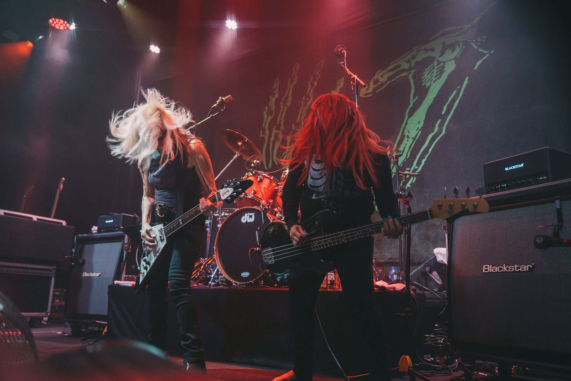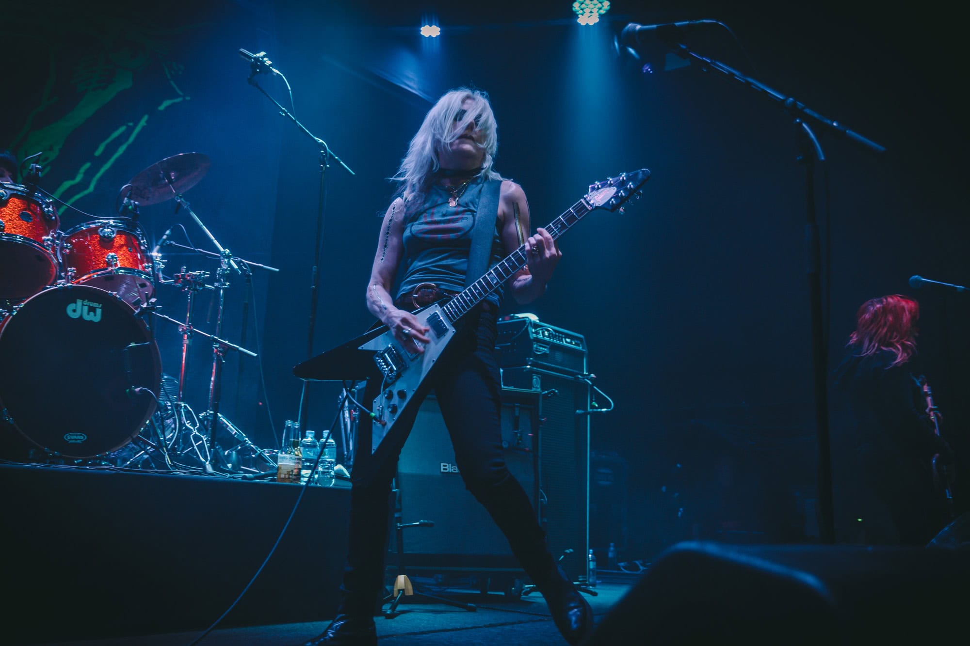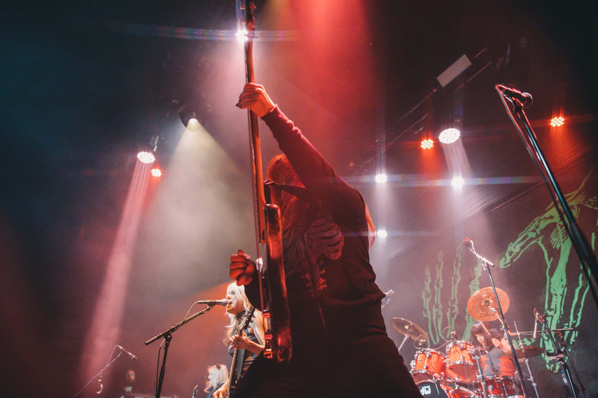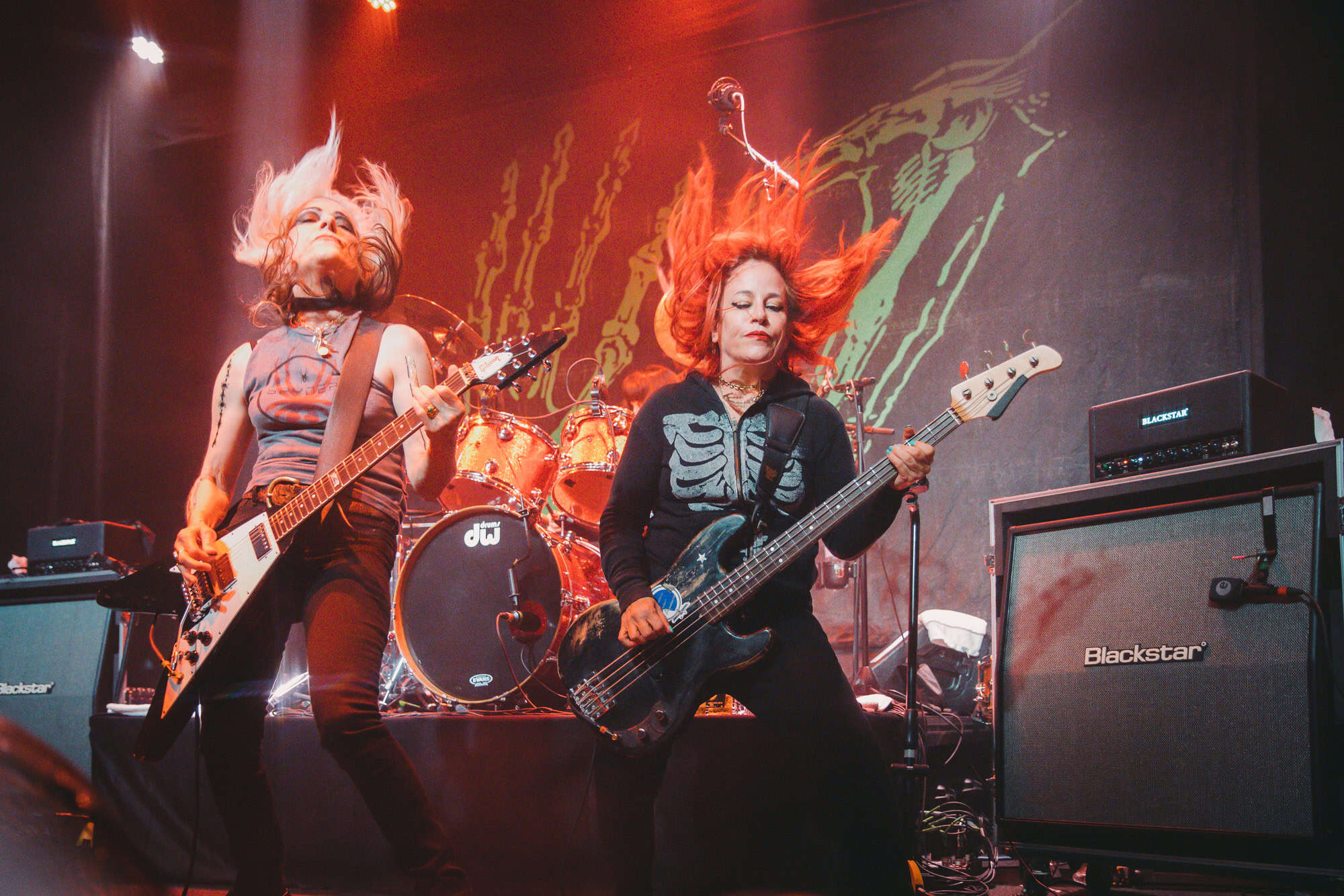 Staying true to the album’s original order. Diet Pill is intro’d by Donita as a song about domestic abuse, quickly followed by Everglade on which the vocal duties are taken up by bassist Jennifer Finch whose radioactive red hair radiates as her powerhouse vocals feature, and then it swings over to Suzanne Gardner who takes control for Slide, this sharing of vocals adds excitement to the night