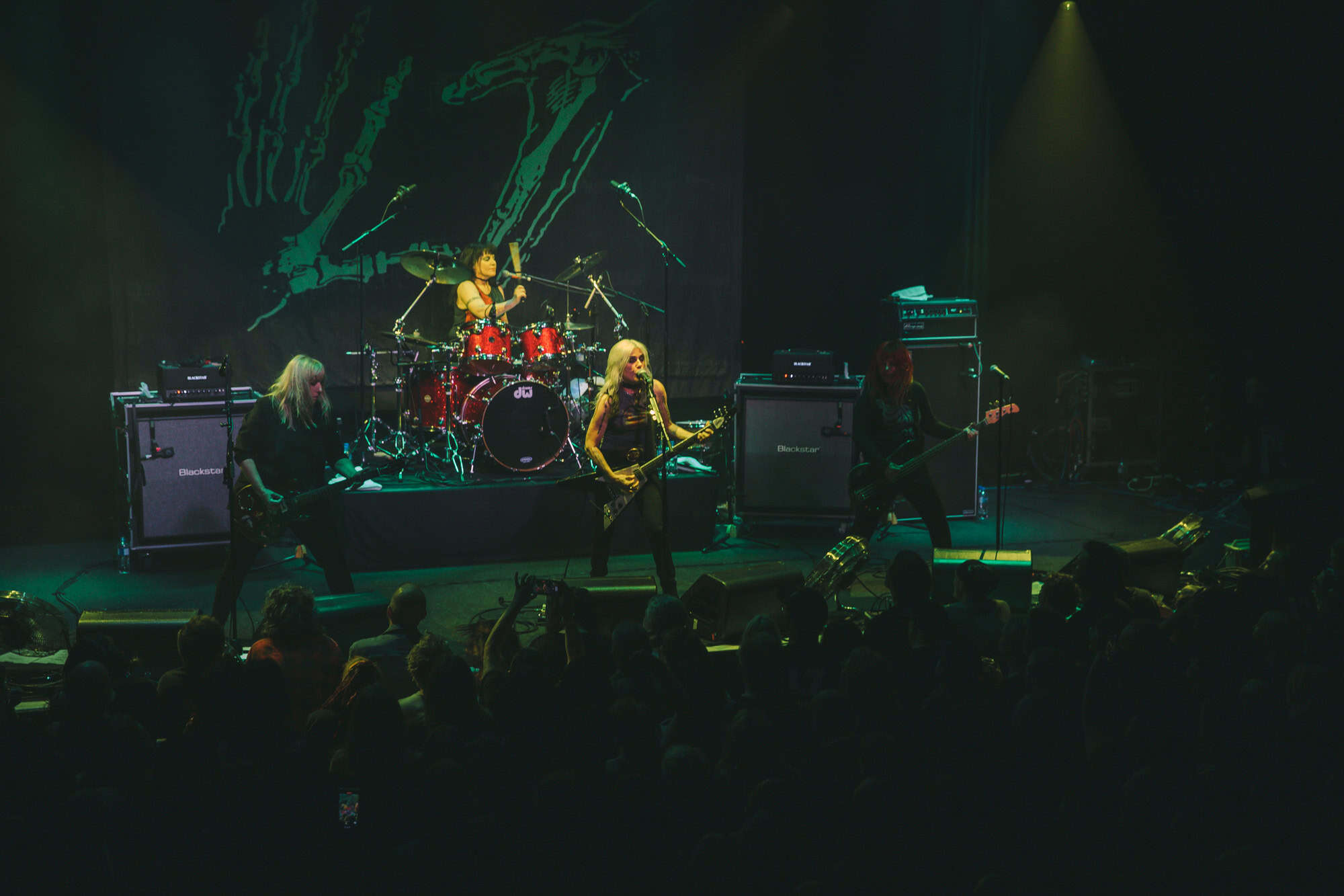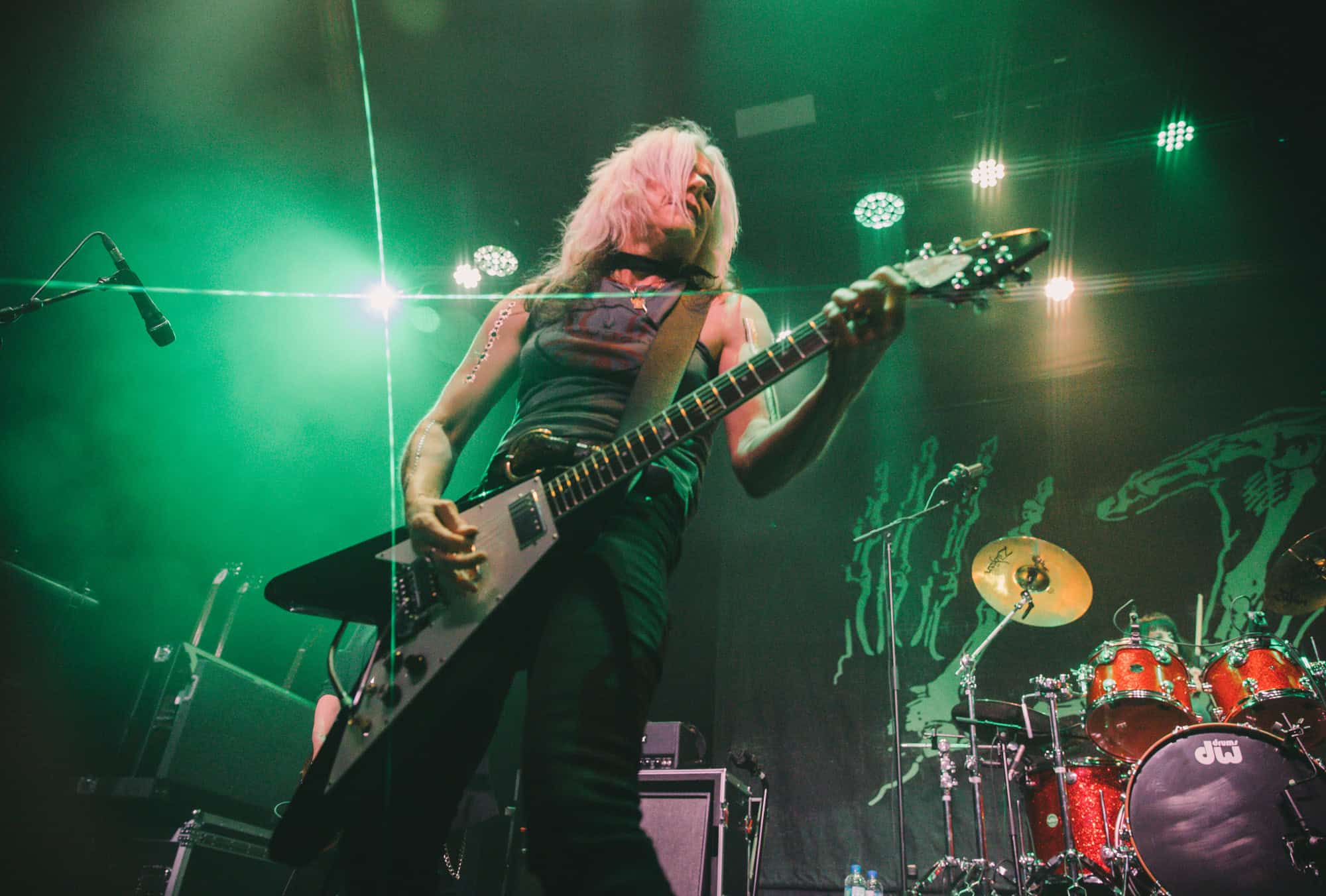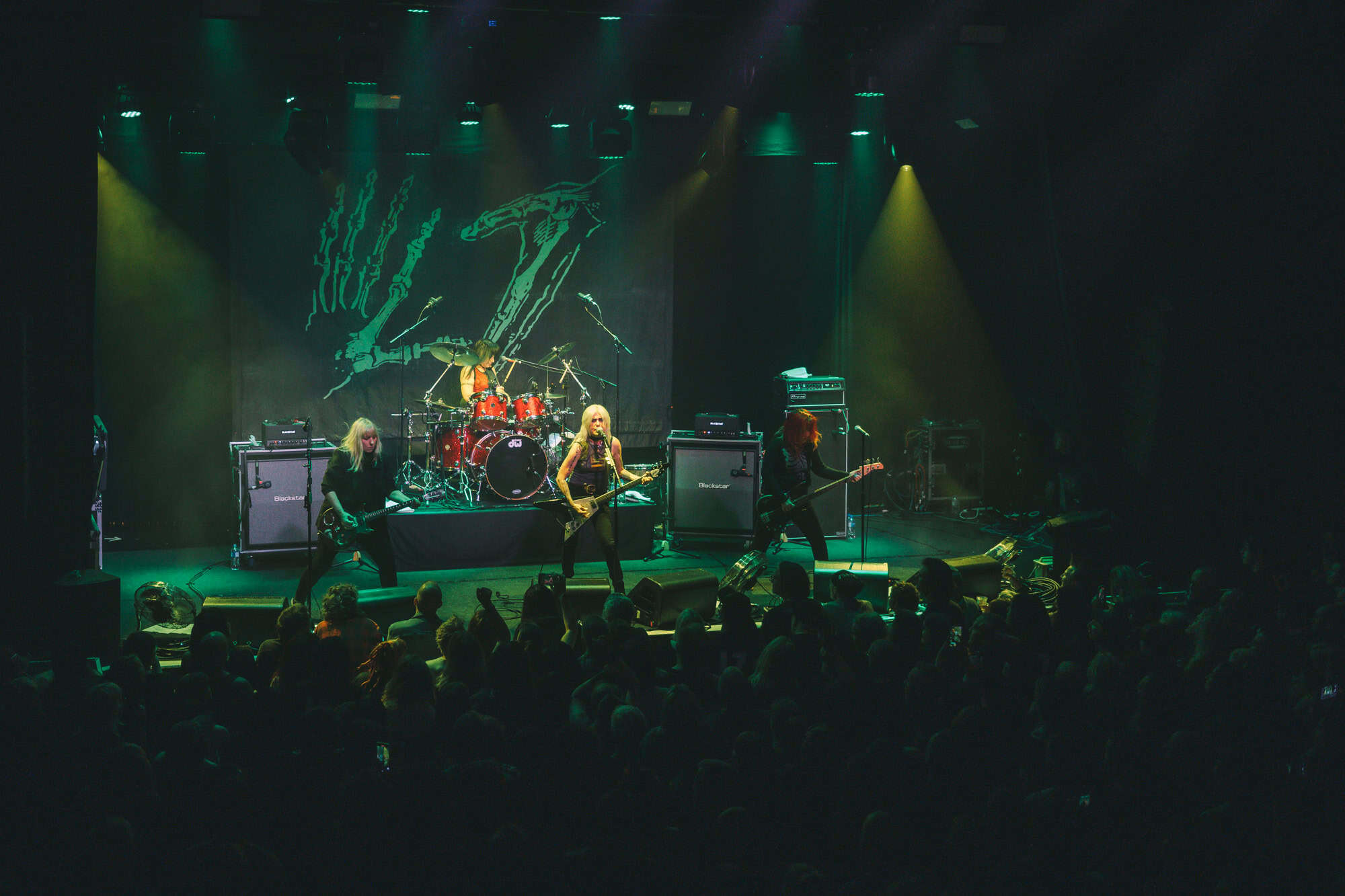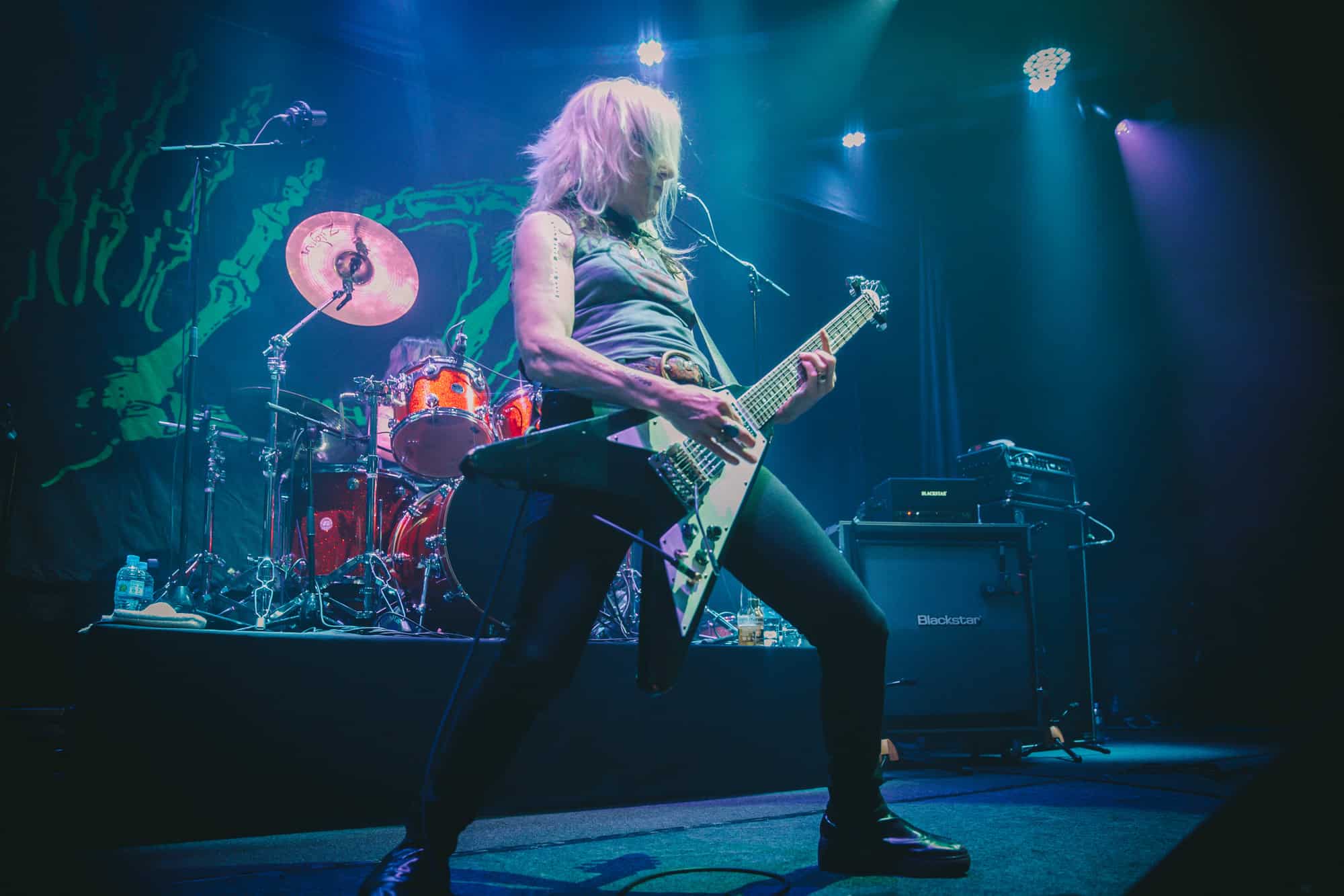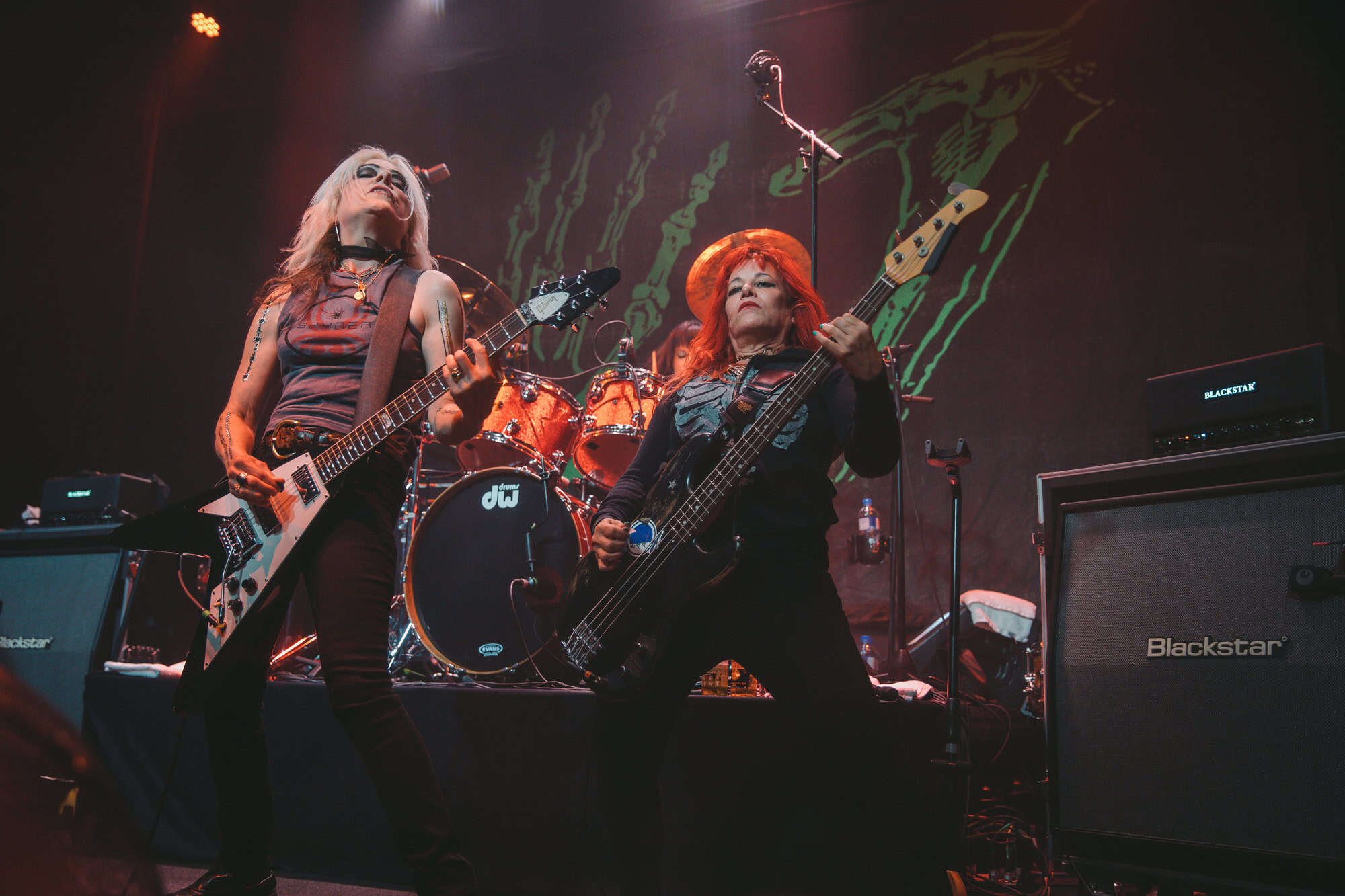 Staying true to the album’s original order. Diet Pill is intro’d by Donita as a song about domestic abuse, quickly followed by Everglade on which the vocal duties are taken up by bassist Jennifer Finch whose radioactive red hair radiates as her powerhouse vocals feature, and then it swings over to Suzanne Gardner who takes control for Slide, this sharing of vocals adds excitement to the night