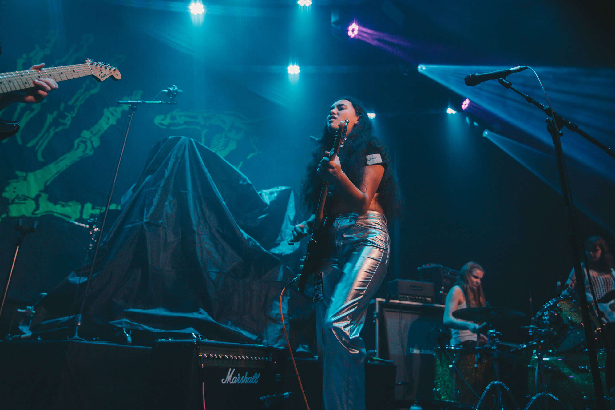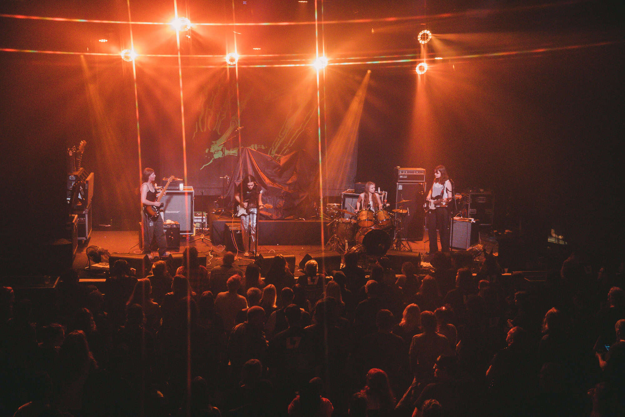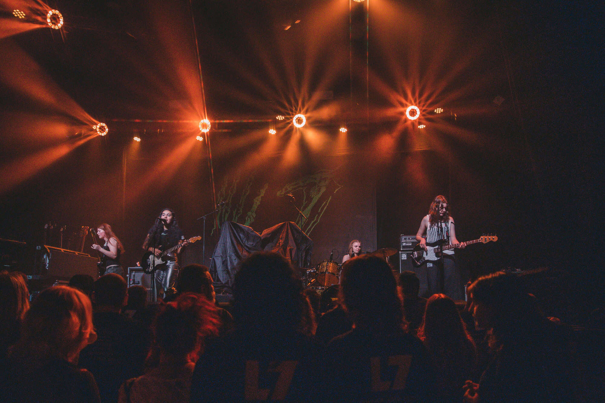 30 years on from their last visit to Aotearoa (they couldn’t get here from Australia in 2016), it’s evident that L7 still have that magical aura of the past, the intervening years haven’t seen them lose any of their vibrance and passion. All three vocalists are still able to punch out the lyrics, as they attack their guitars with semiotic skills, their riffs just as heavy as in the 1990s. Demetra Plakas on drums is solid, creating an anchor for the upfront three, at times a trigger, always a spark that ignites many of the songs.