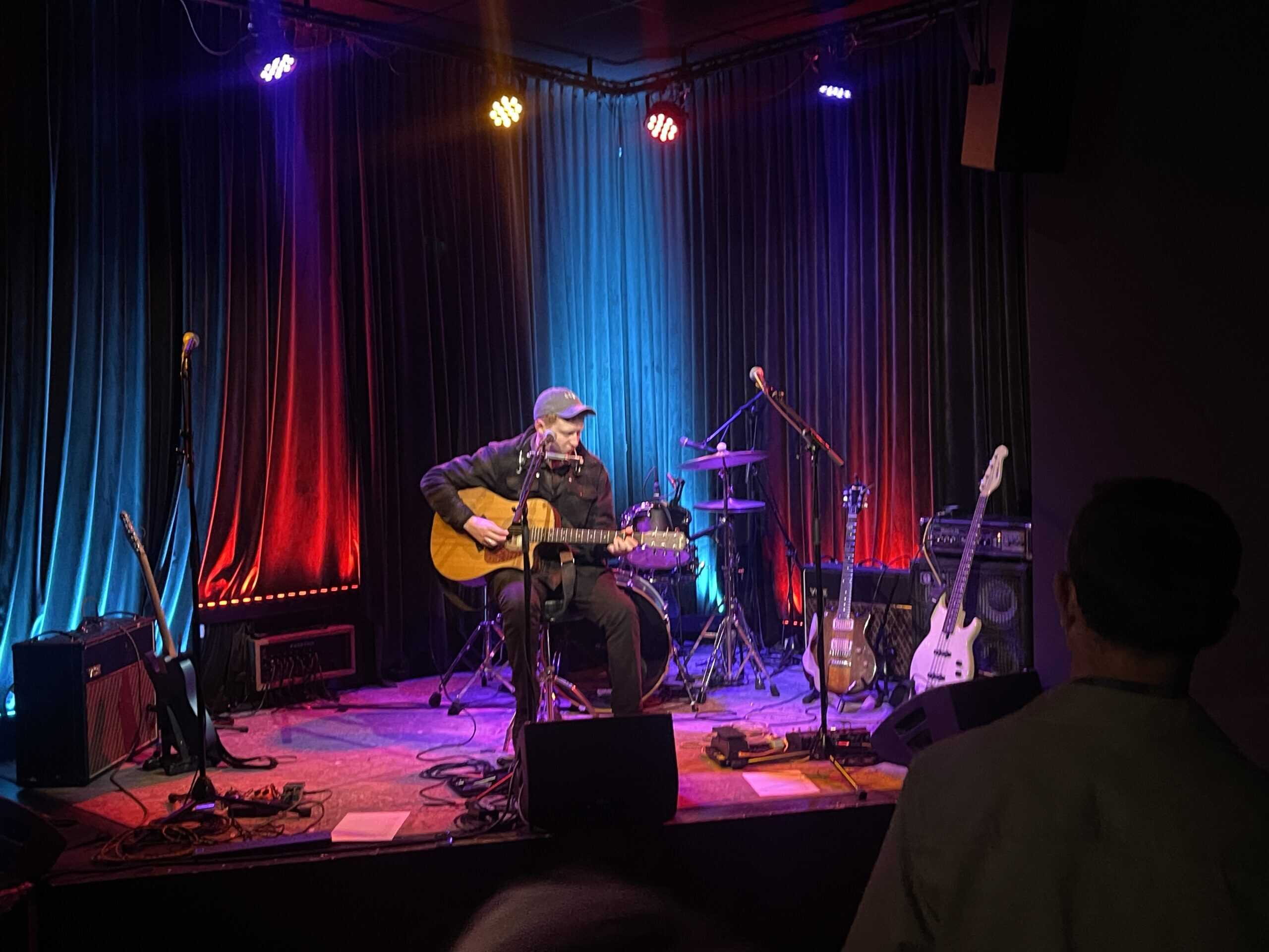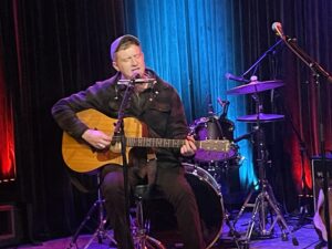 His cover of Jimmy Rogers’ I’m Free from the Chain Gang Now highlighted his roots in blues more than country. His intricate guitar picking and rhythmic strumming were flawless, performed with eyes closed, harmonica weaving seamlessly through the arrangement.