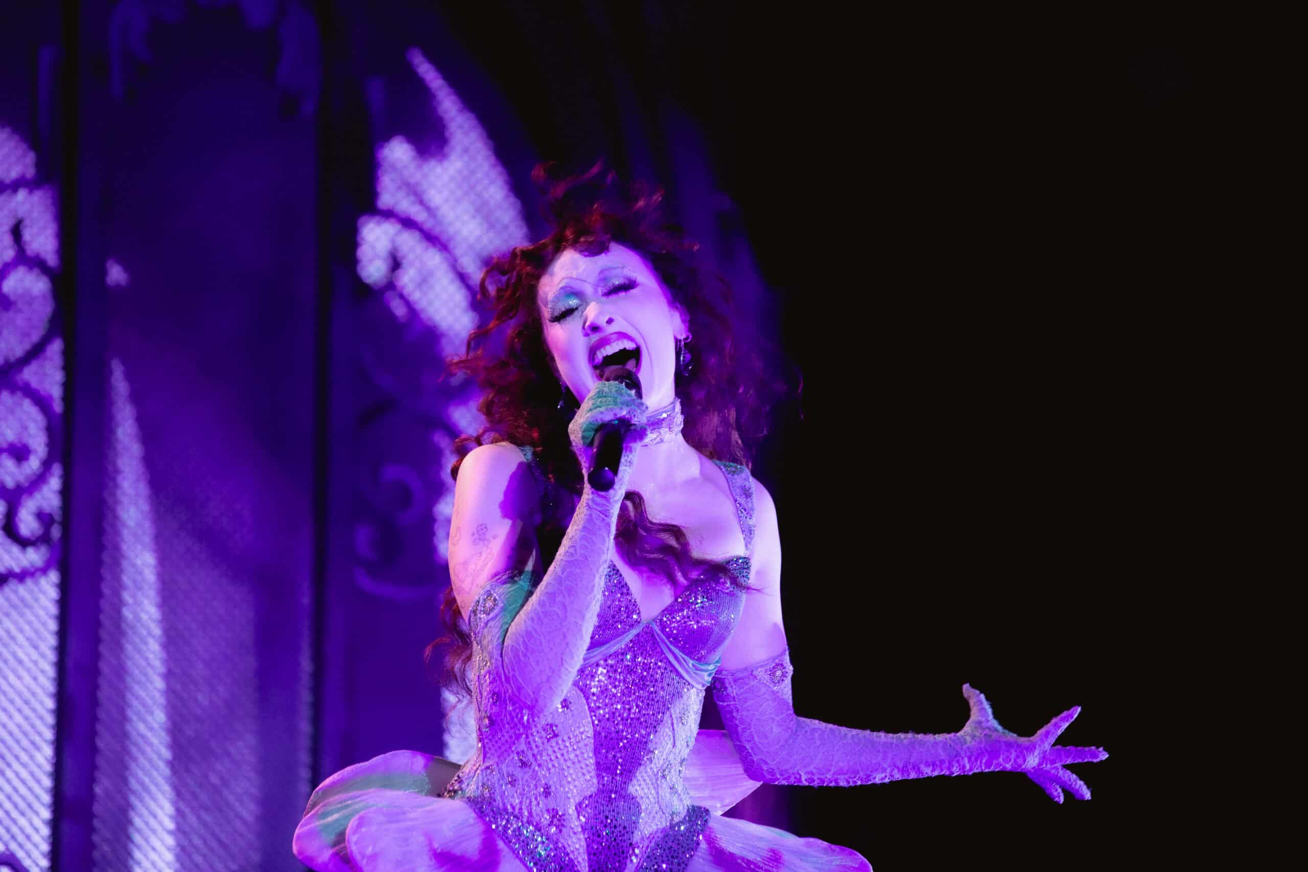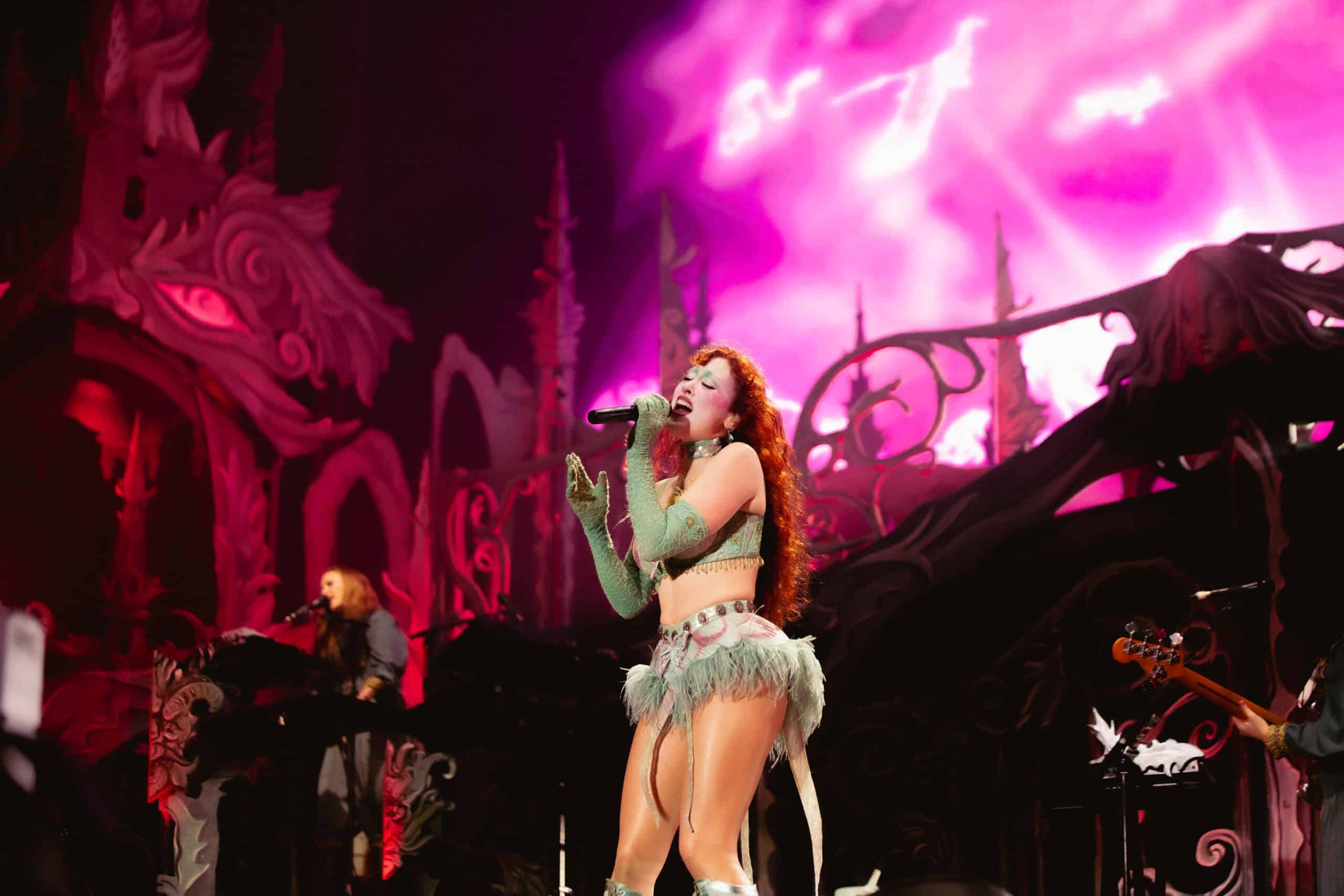 Cast in shadowy green light, her five-piece band warmed up the crowd before energy exploded with Super Graphic Ultra Modern Girl as Chappell Roan ascended onto the balcony.