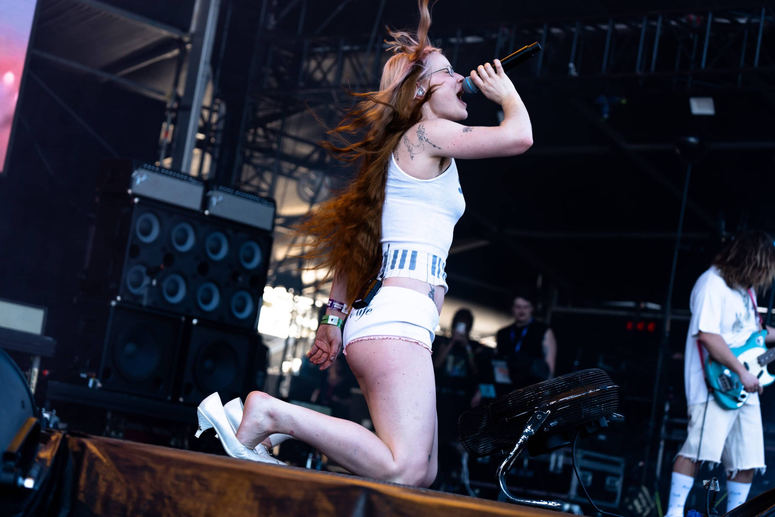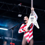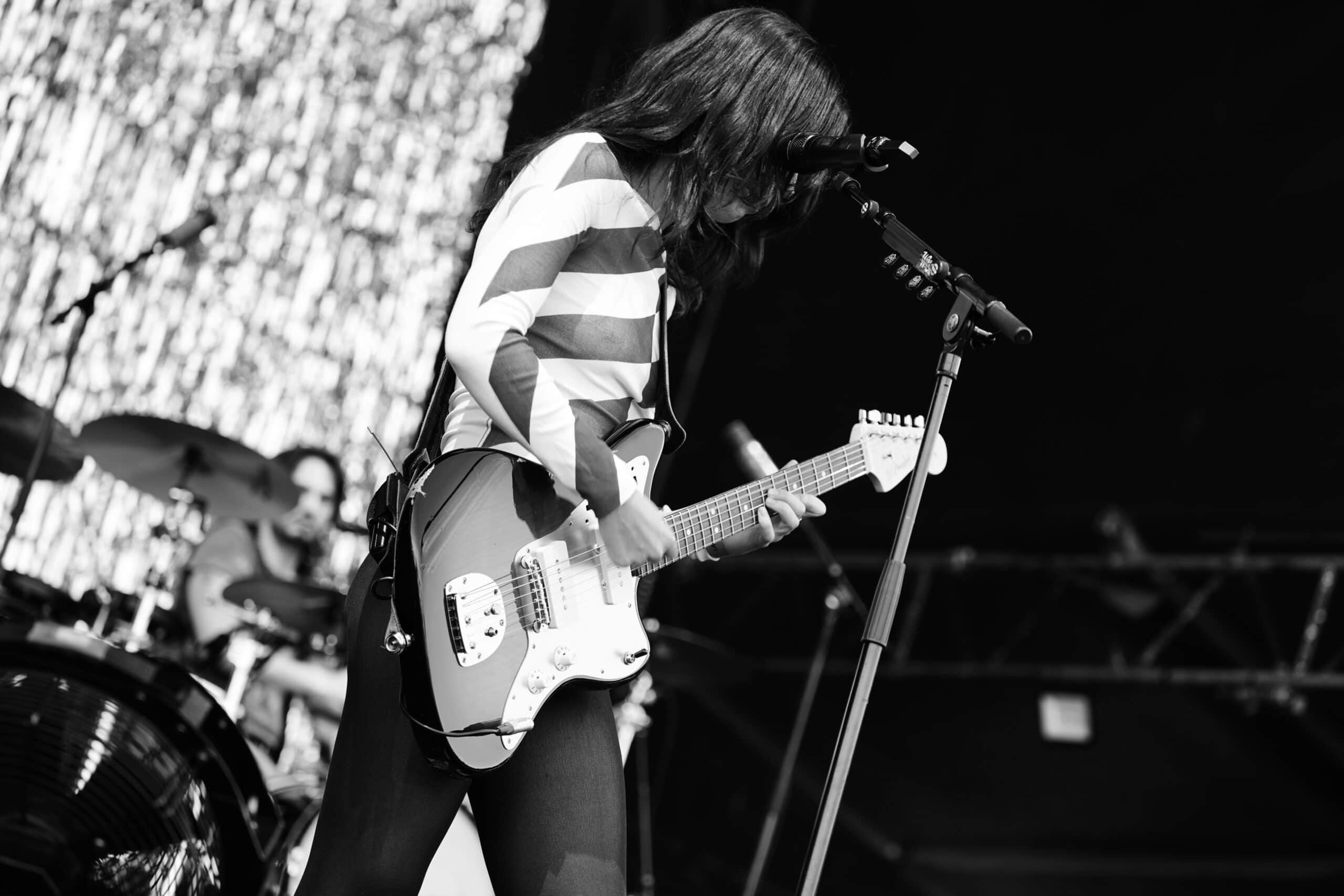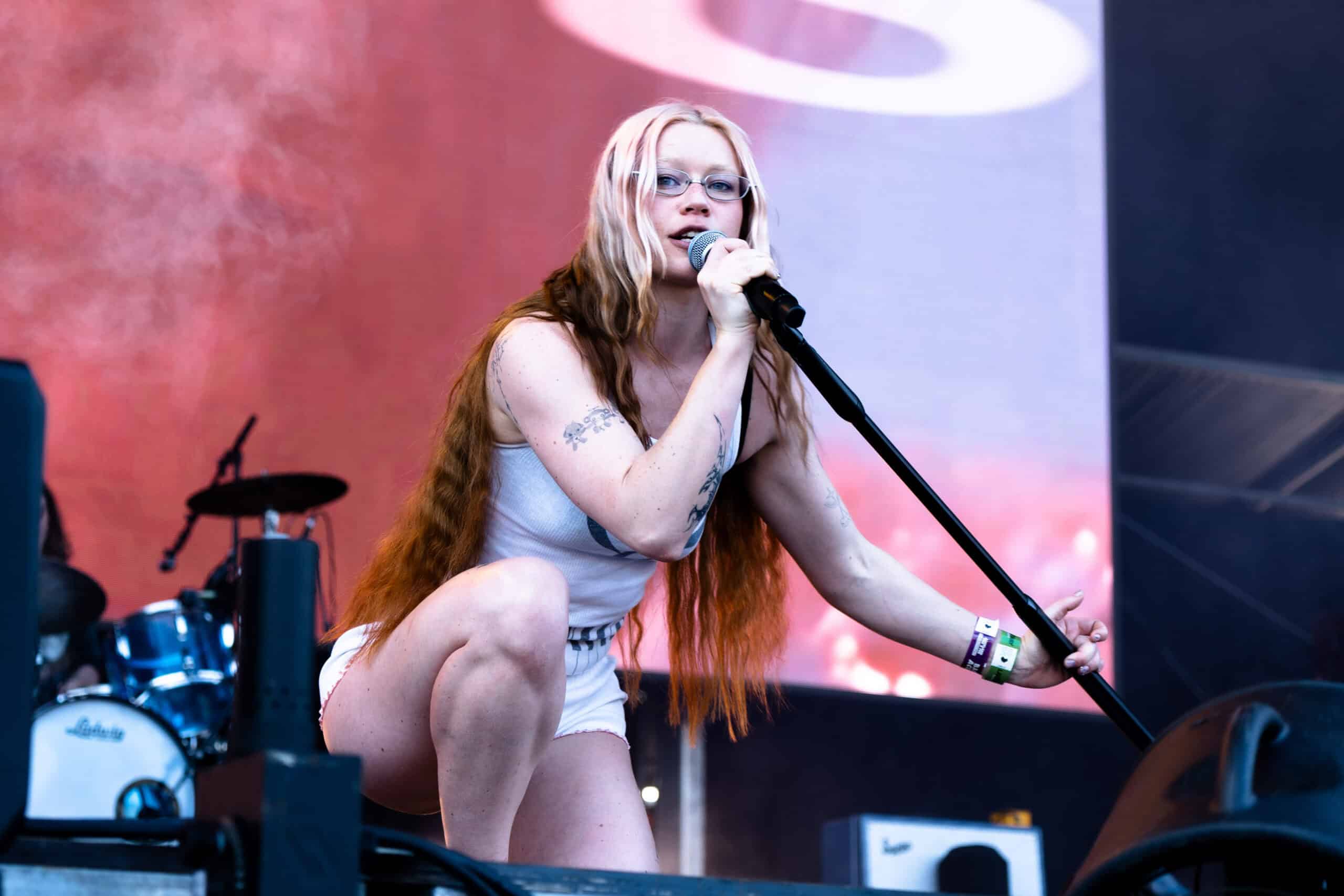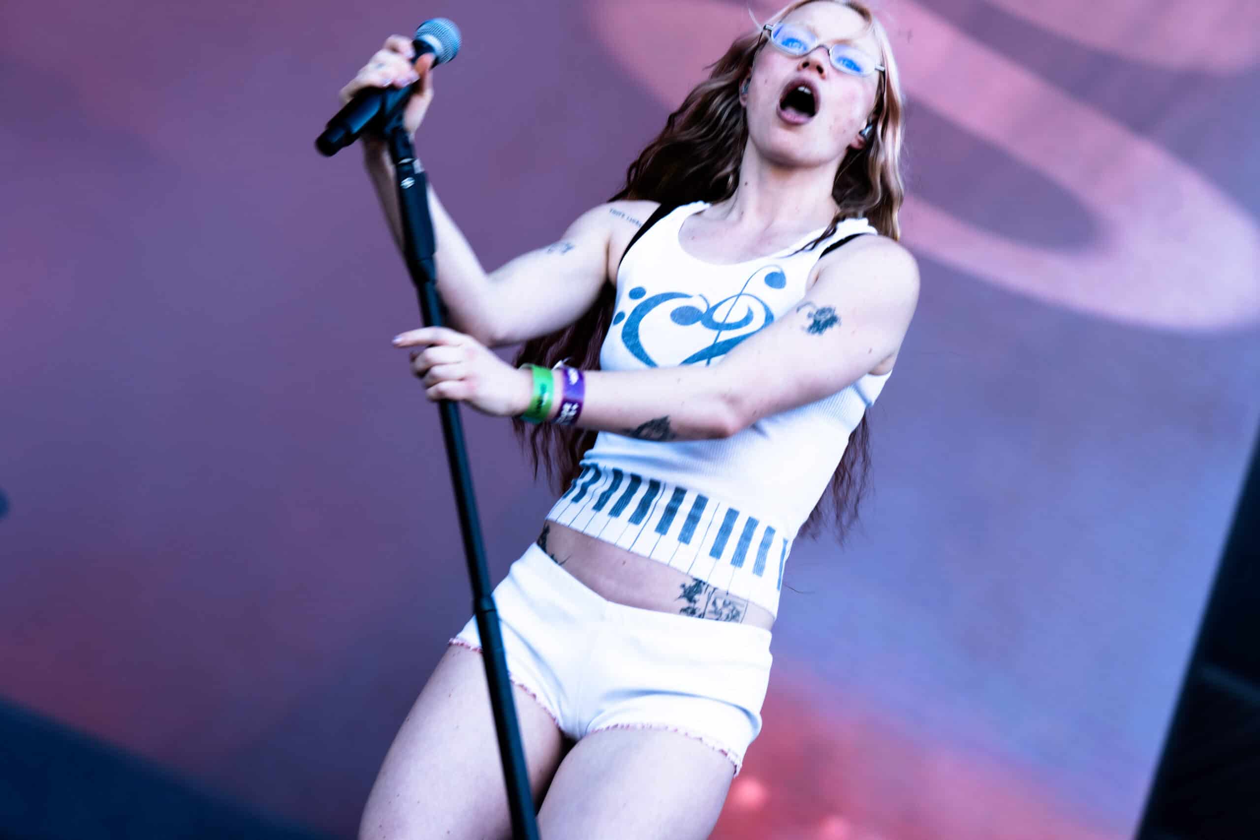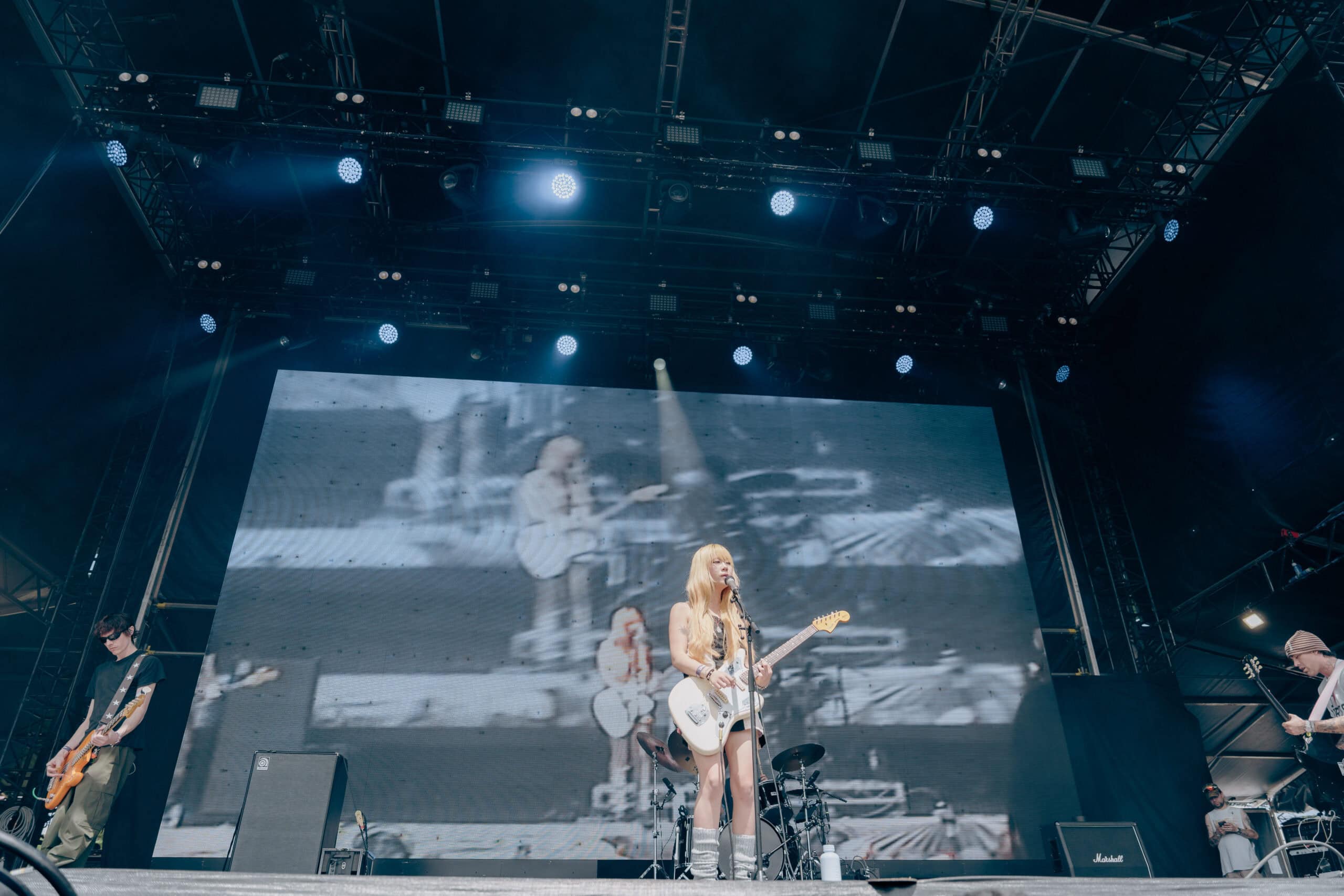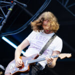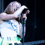 Frontwoman Rhian Teasdale, armed with a transparent neon green guitar, shredded on her knees, strutted the stage’s catwalk, and briefly lost her prescription glasses amongst the chaos. Her outfit — with a bass and treble clef intertwined into a love heart on her chest and “Hardcore For Life” scrawled across the back of her shorts — matched the band’s quirky, overdriven sound. I didn’t know any of the songs, yet I was invested in every single one.