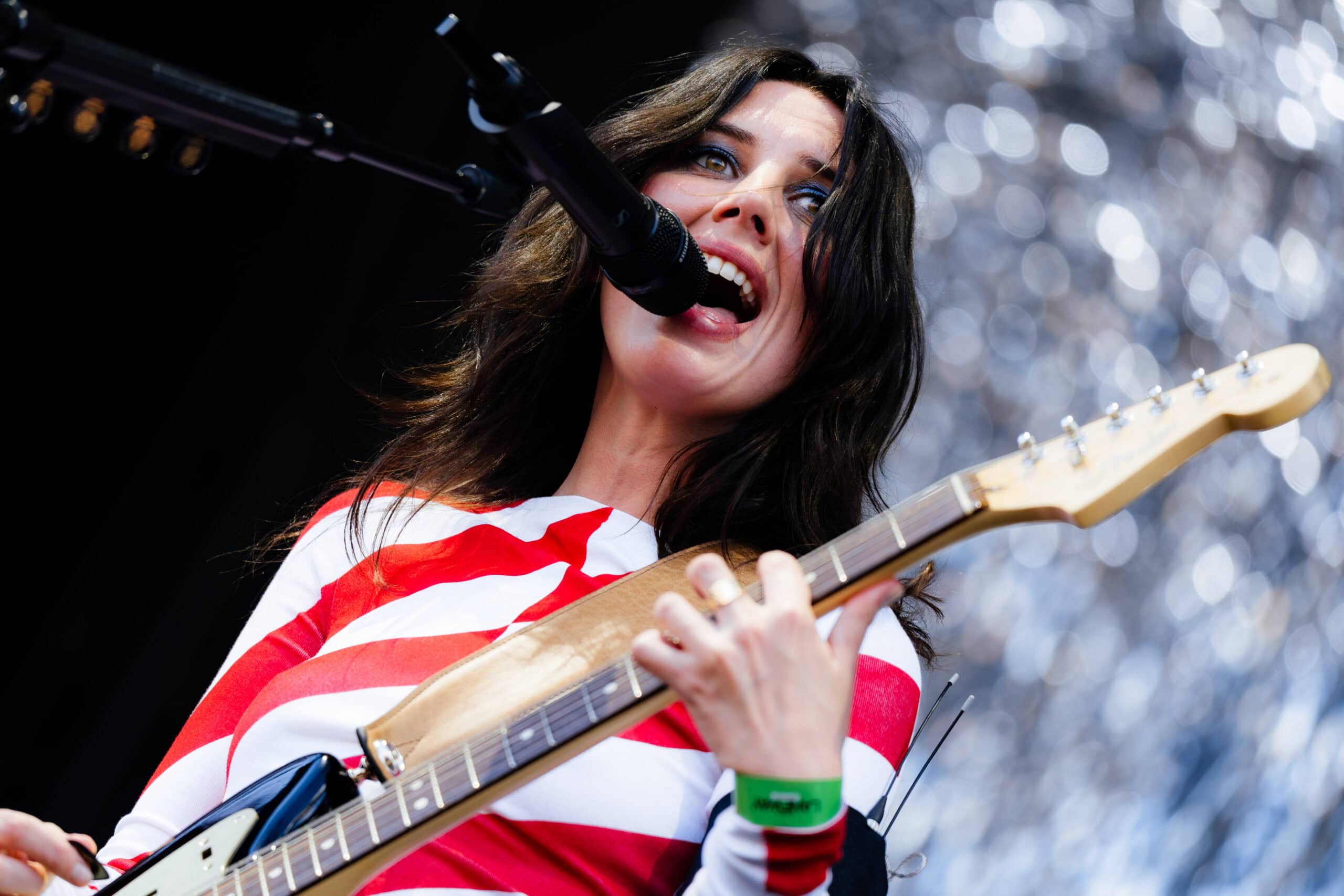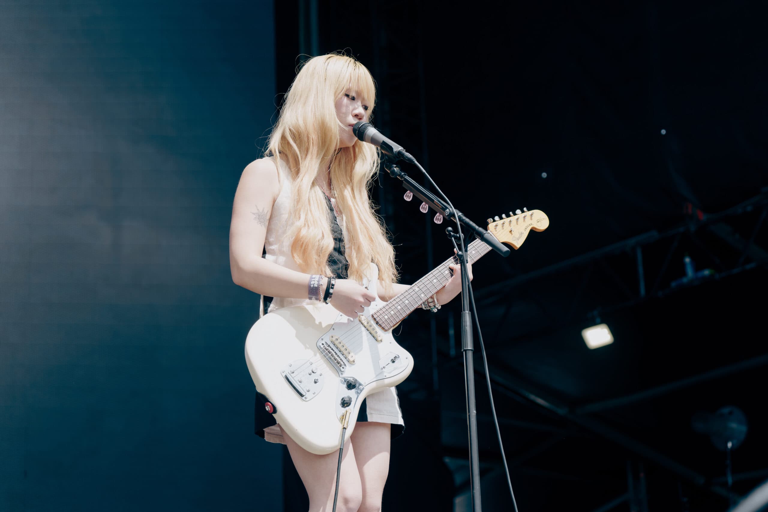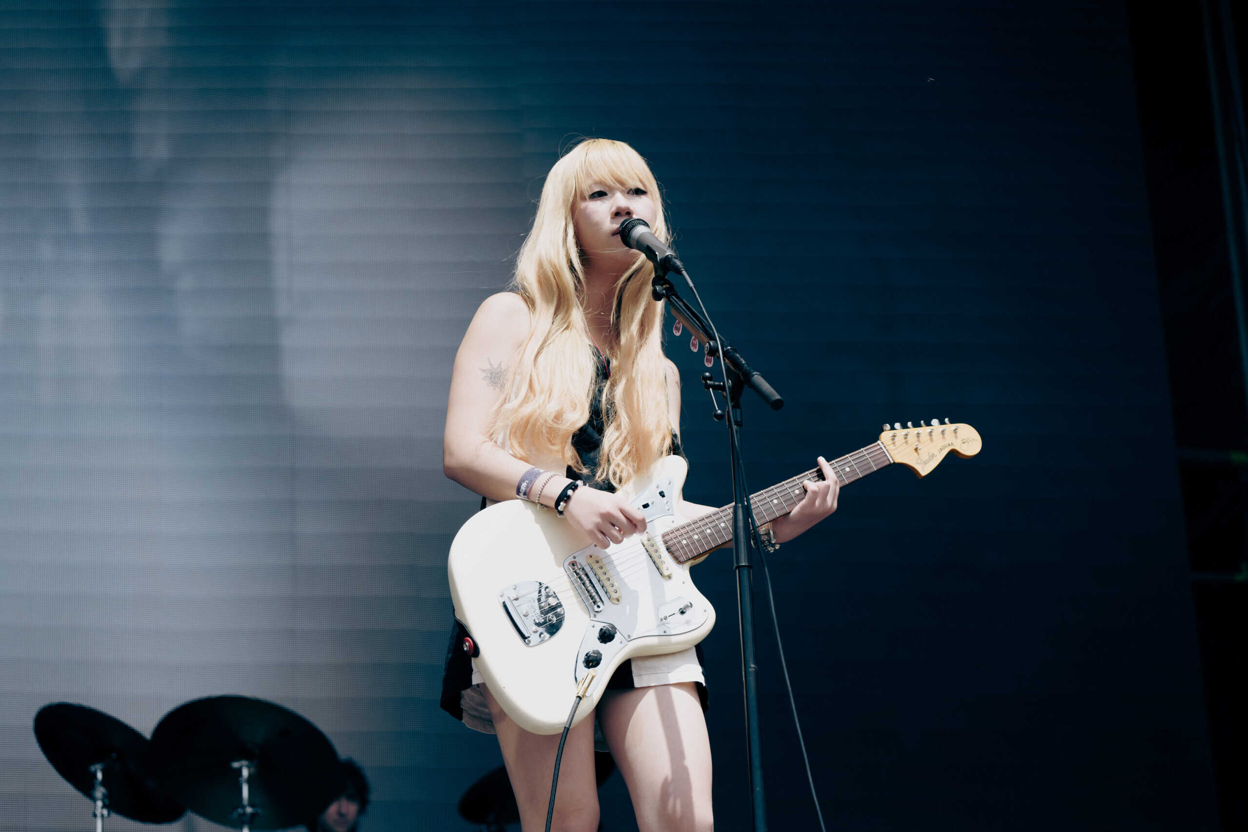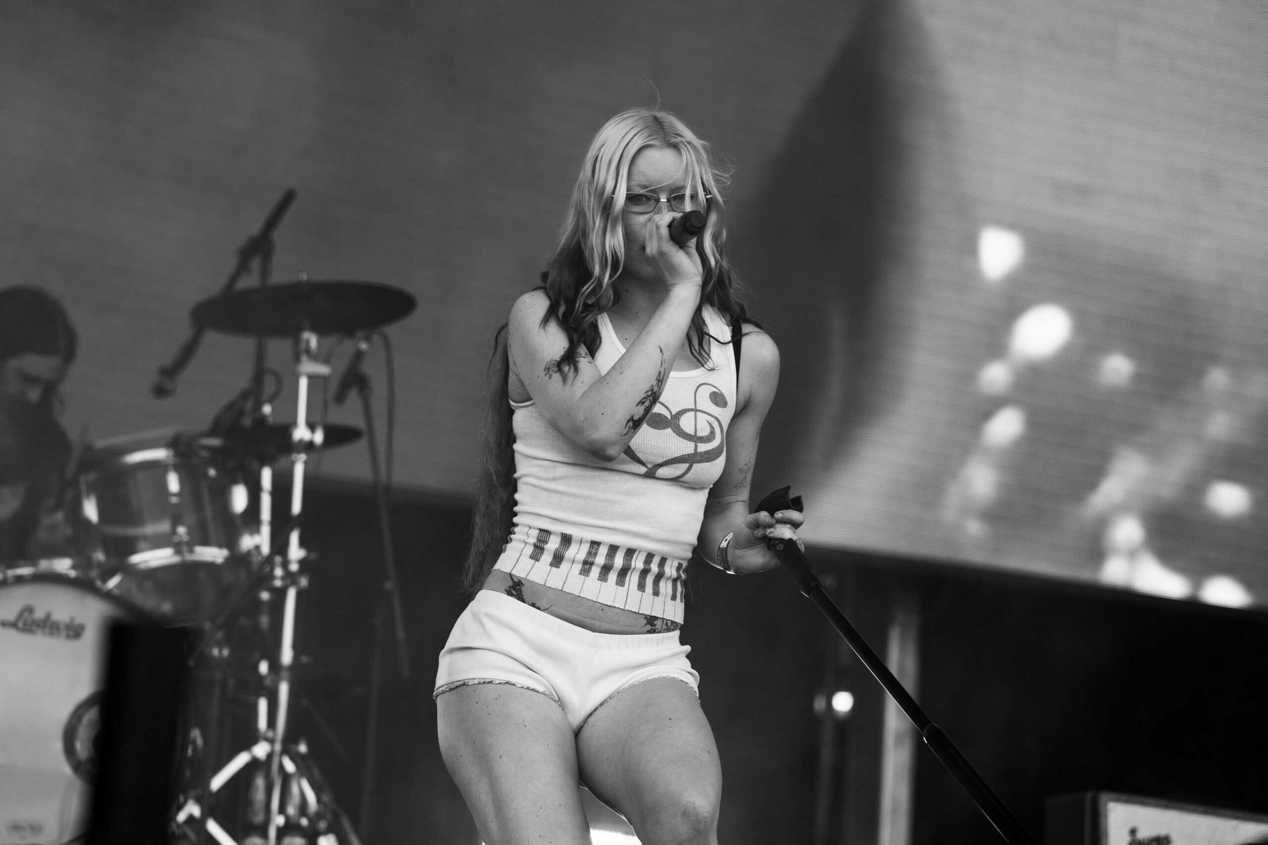 Frontwoman Rhian Teasdale, armed with a transparent neon green guitar, shredded on her knees, strutted the stage’s catwalk, and briefly lost her prescription glasses amongst the chaos. Her outfit — with a bass and treble clef intertwined into a love heart on her chest and “Hardcore For Life” scrawled across the back of her shorts — matched the band’s quirky, overdriven sound. I didn’t know any of the songs, yet I was invested in every single one.