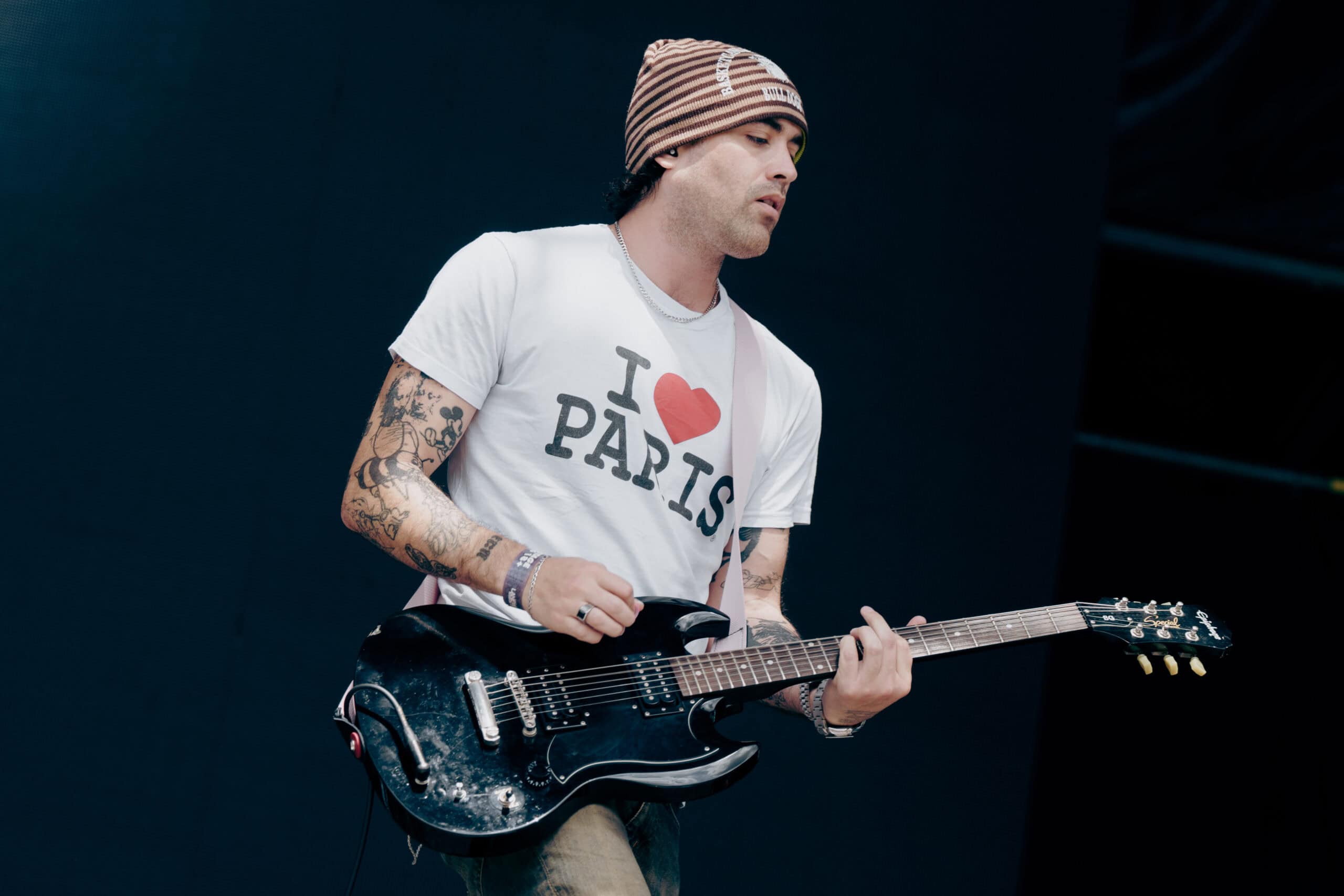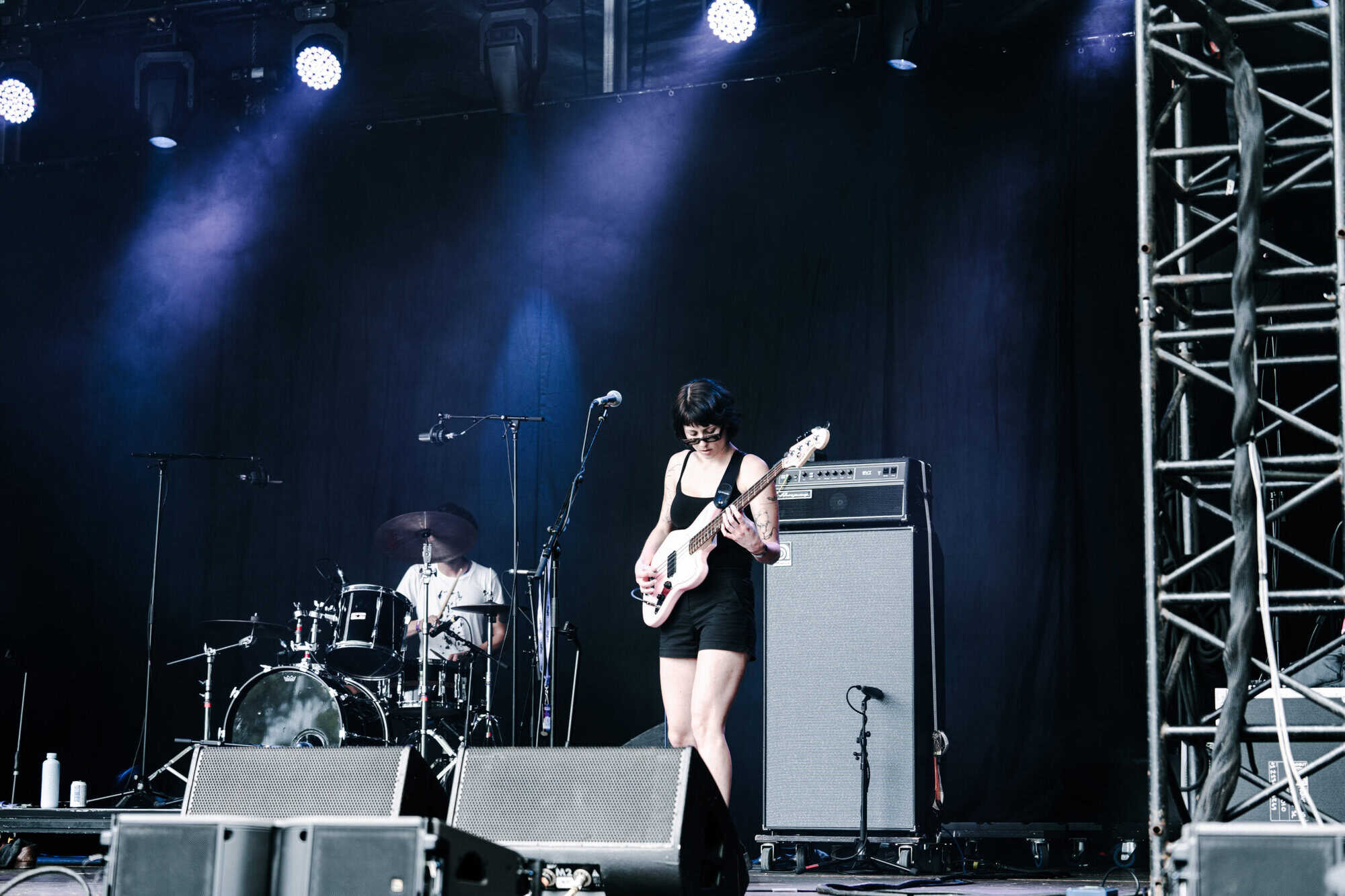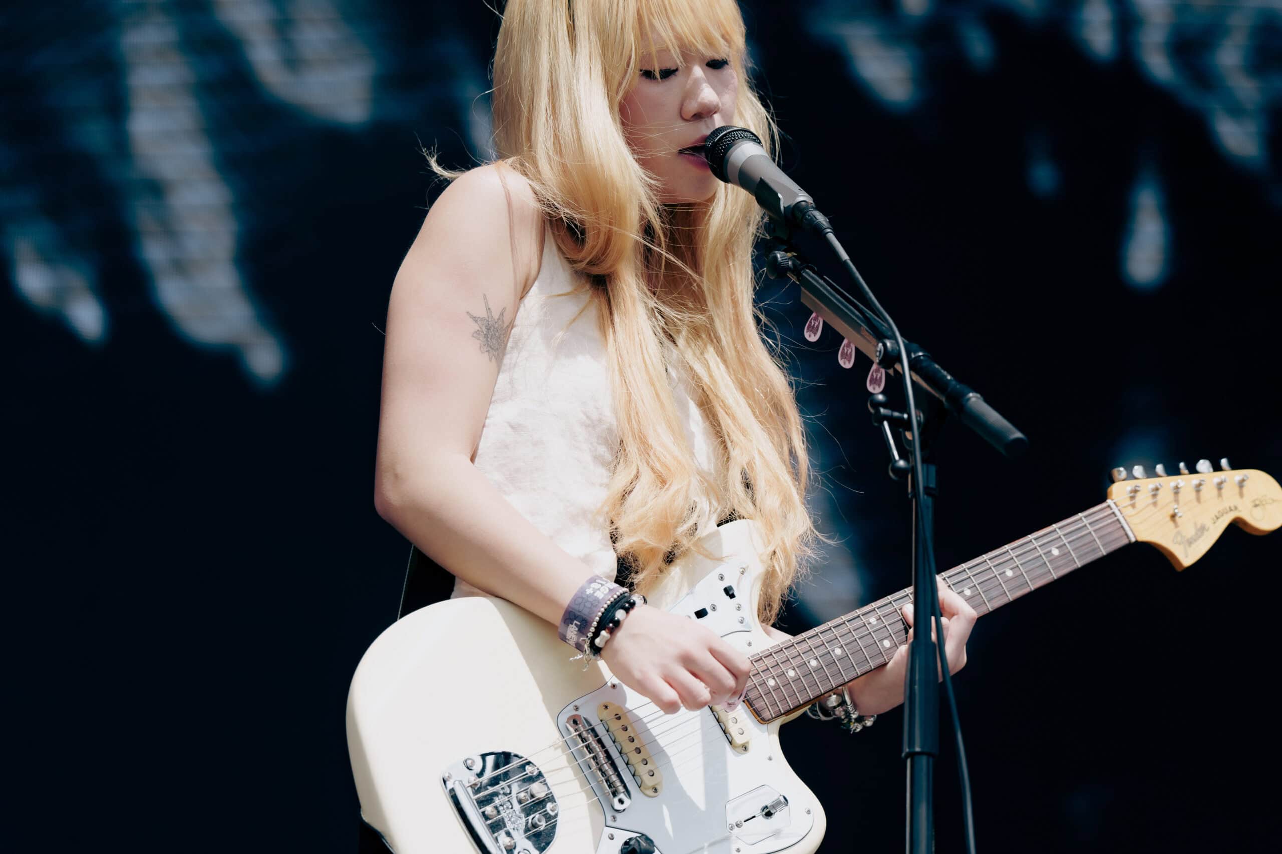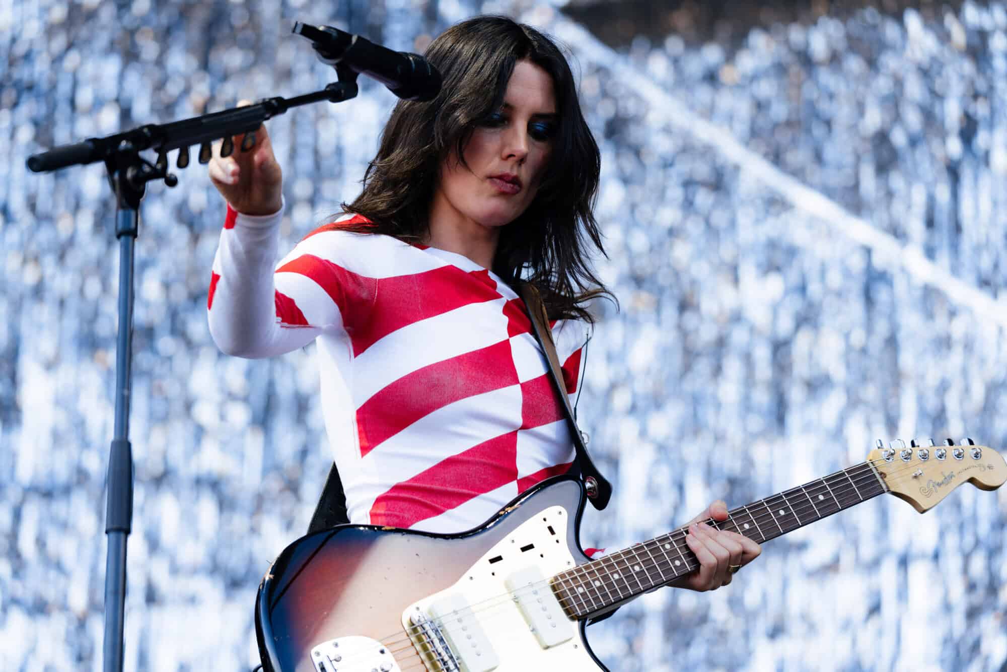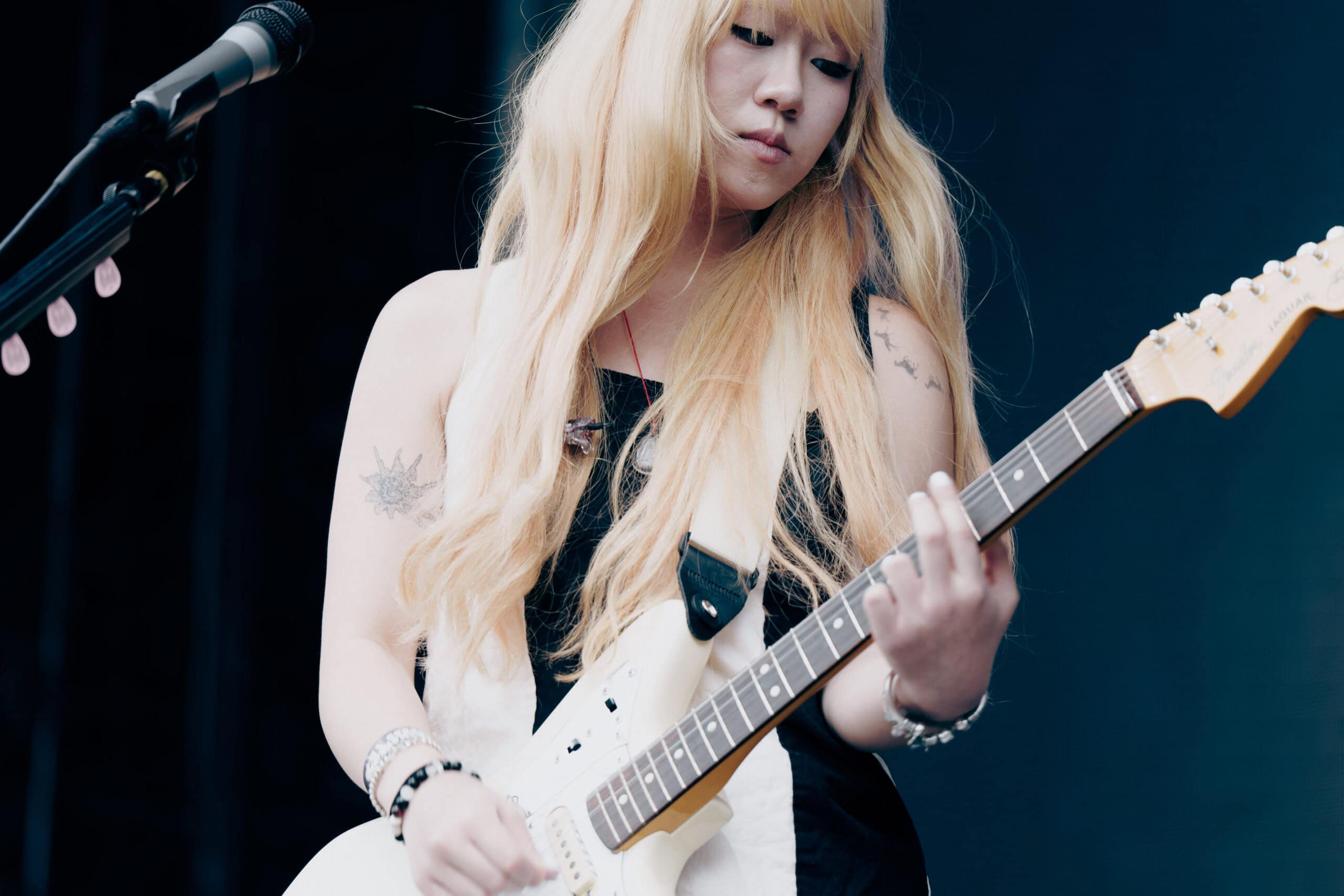 Frontwoman Rhian Teasdale, armed with a transparent neon green guitar, shredded on her knees, strutted the stage’s catwalk, and briefly lost her prescription glasses amongst the chaos. Her outfit — with a bass and treble clef intertwined into a love heart on her chest and “Hardcore For Life” scrawled across the back of her shorts — matched the band’s quirky, overdriven sound. I didn’t know any of the songs, yet I was invested in every single one.