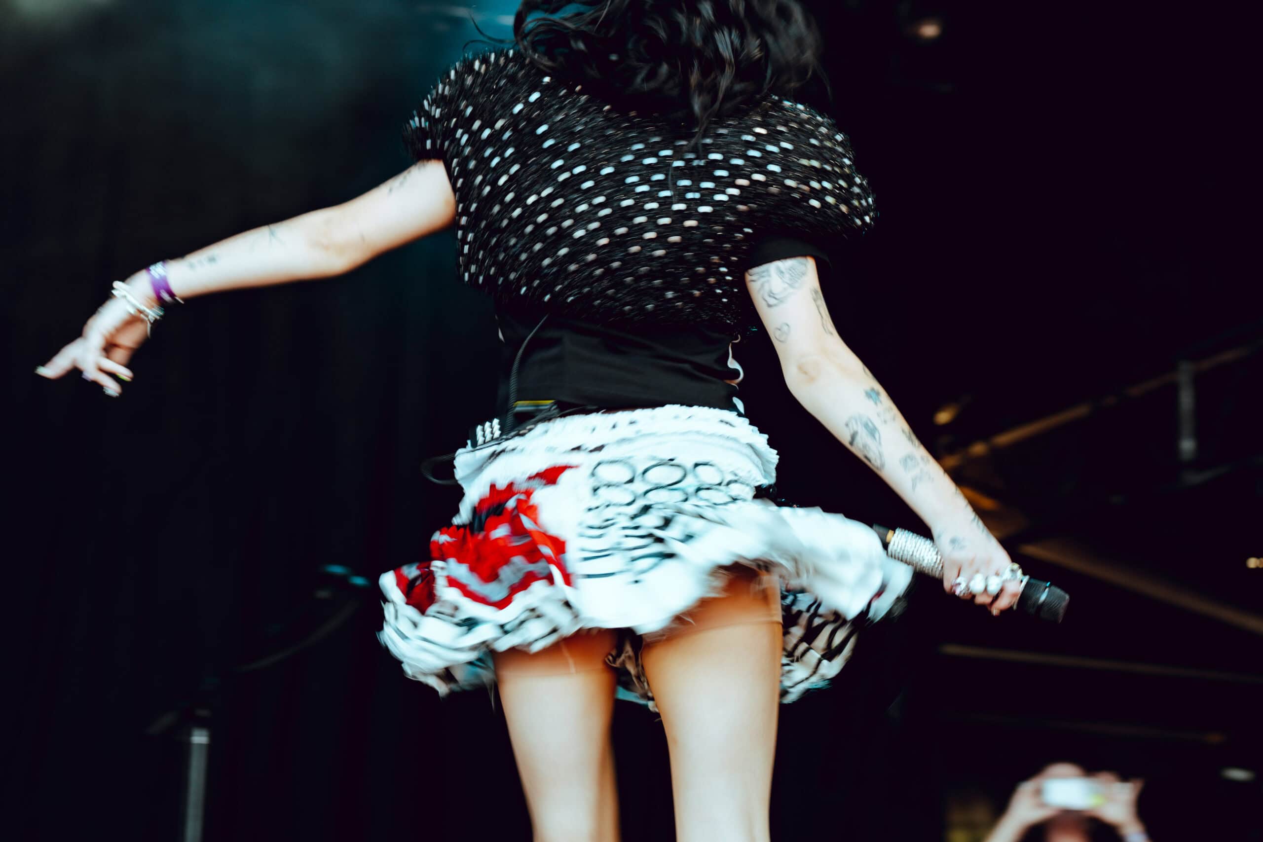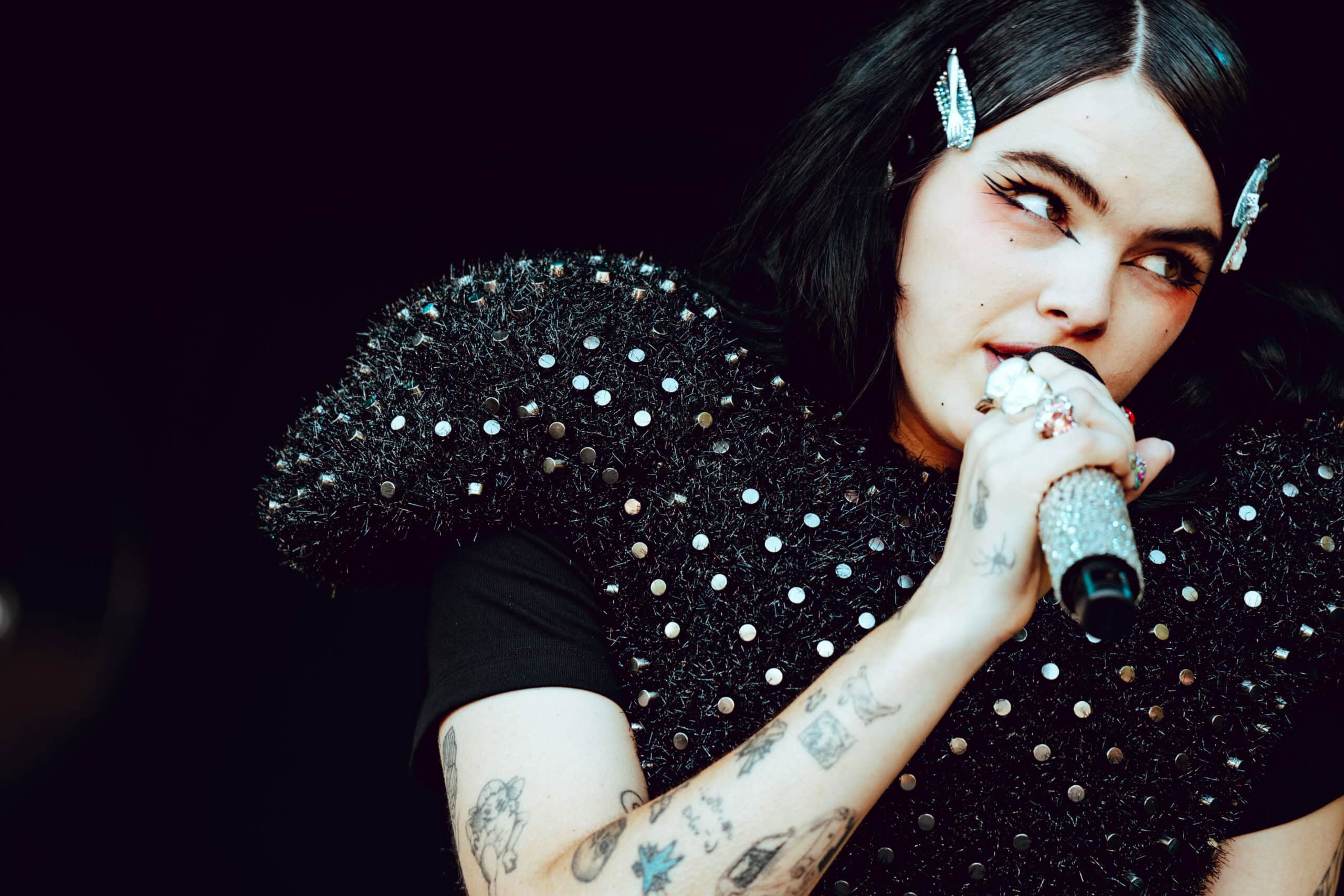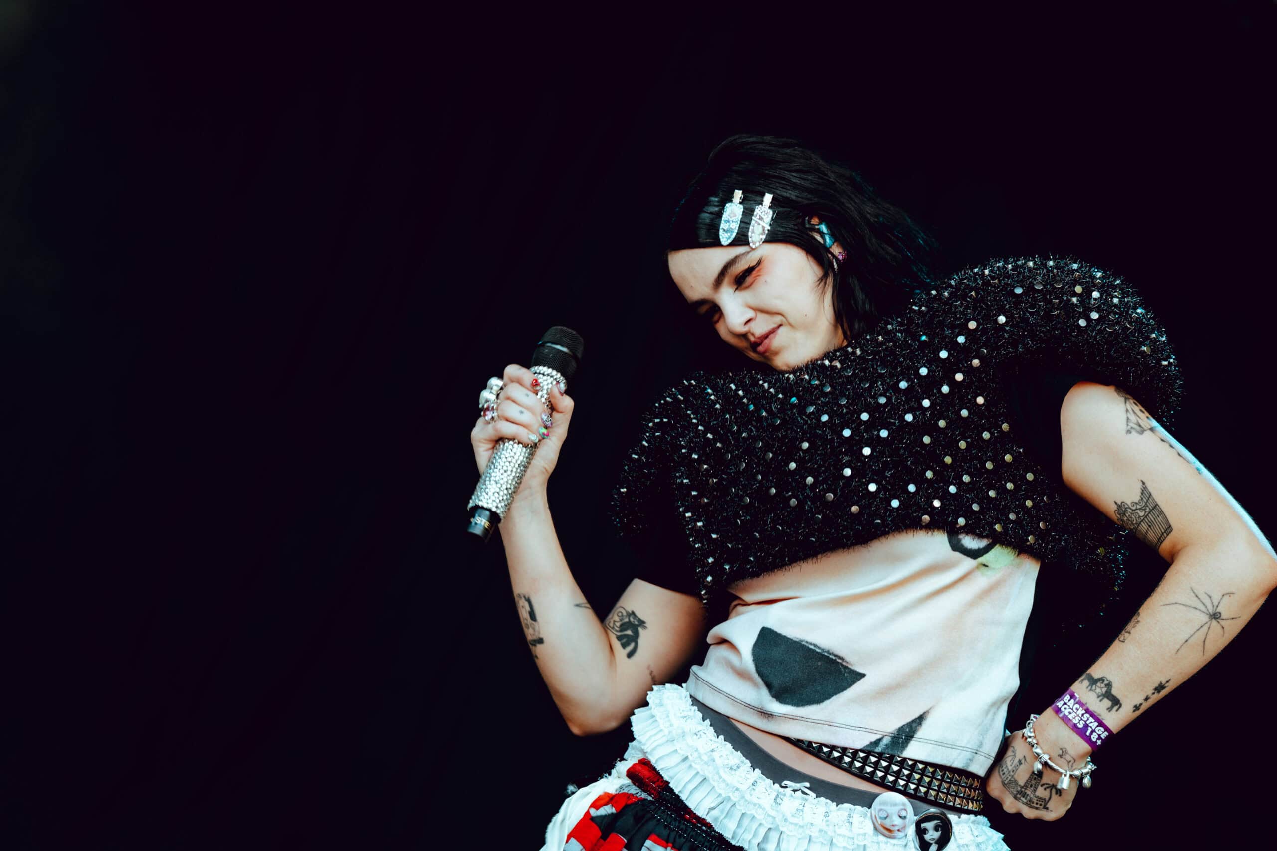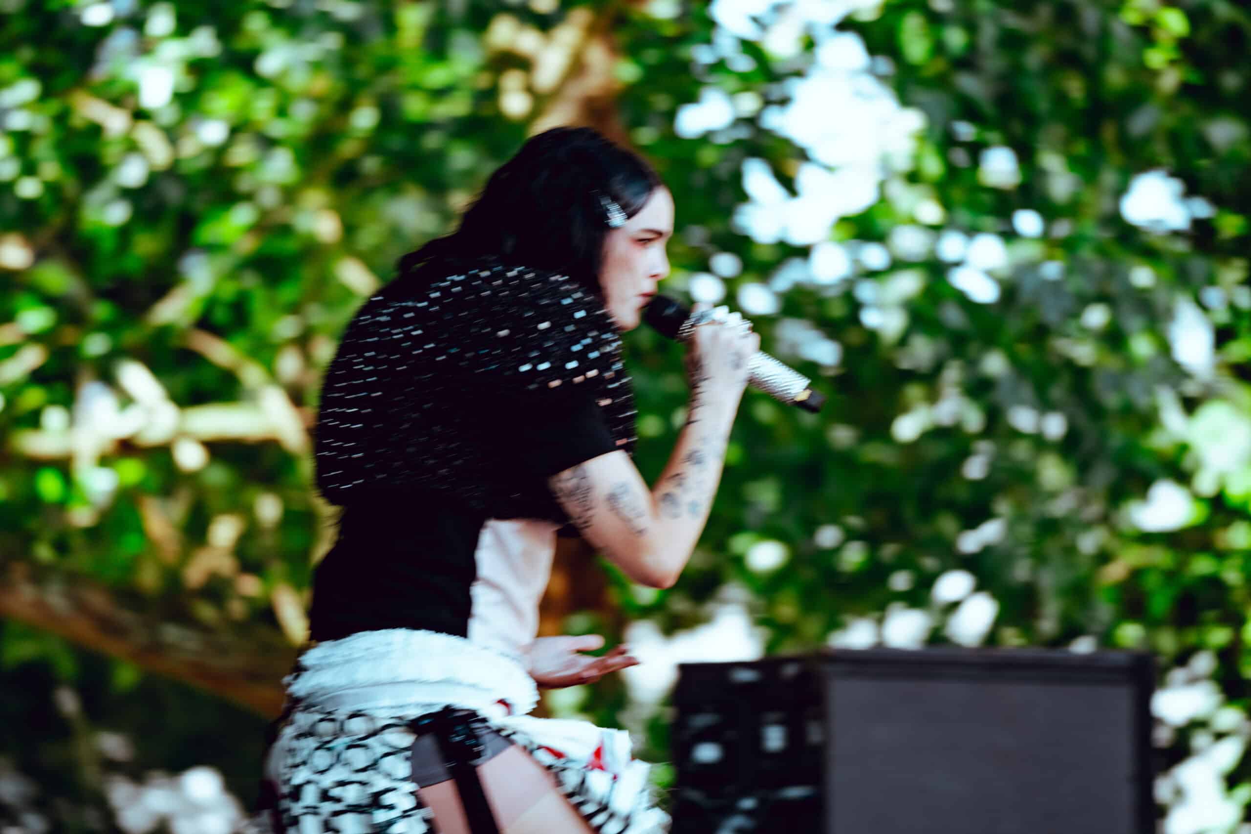 With jet black hair and a metallic spiked crop top, she moved across the stage with hyperactive energy and eccentric poses.