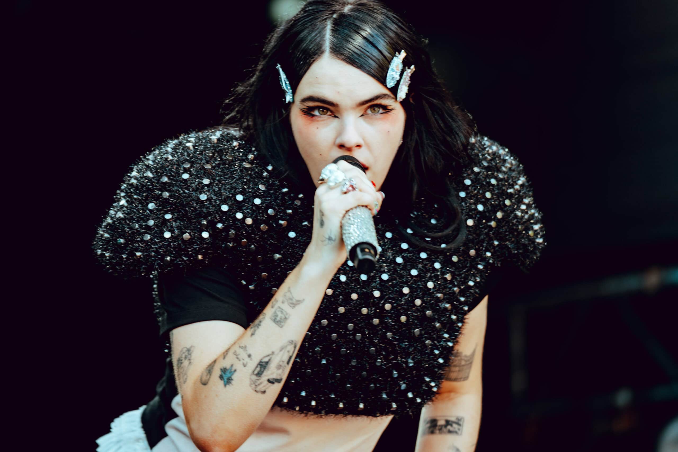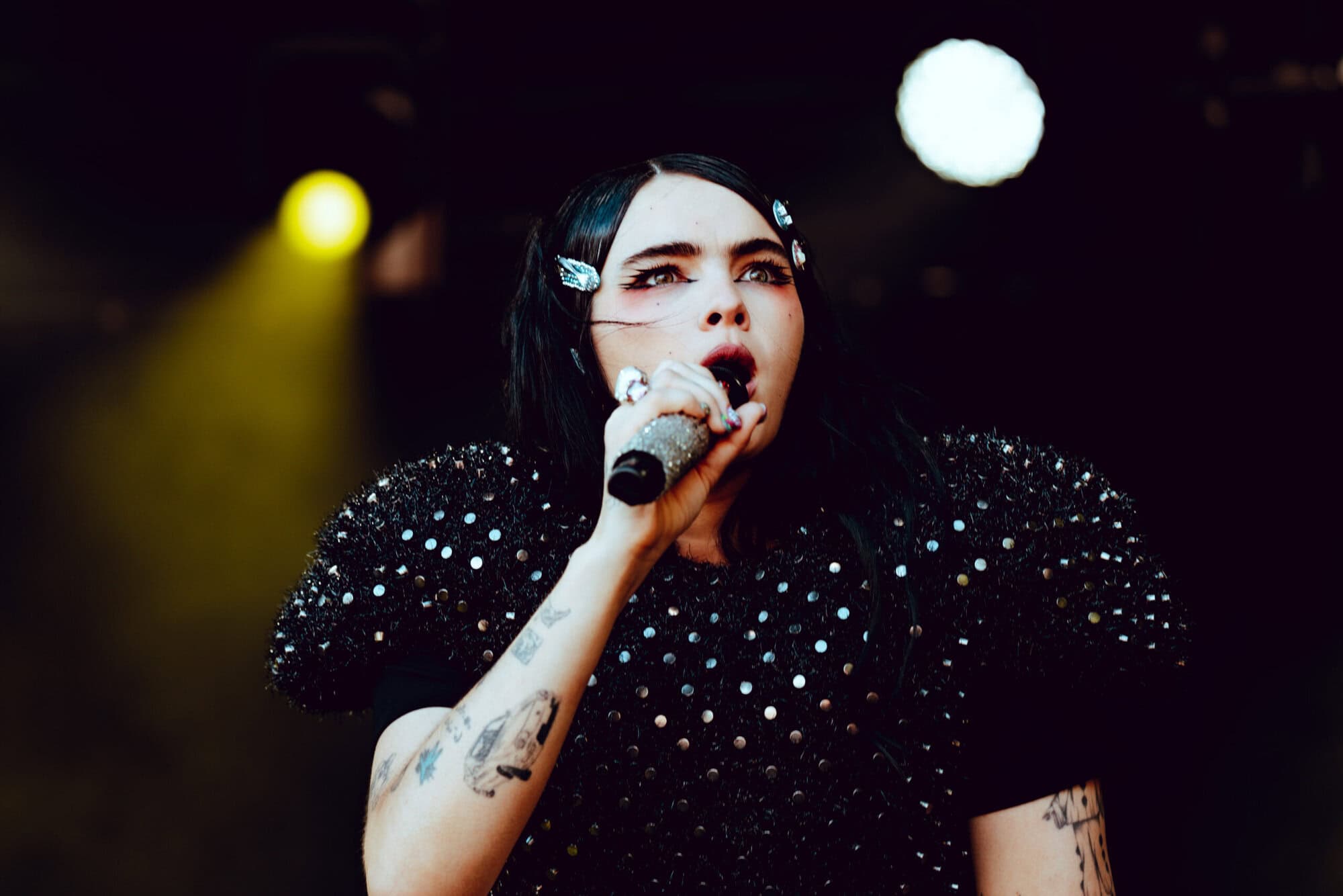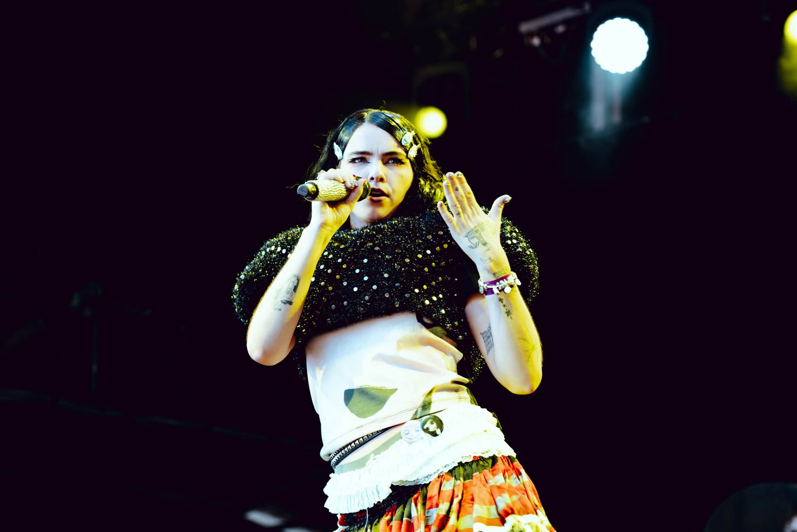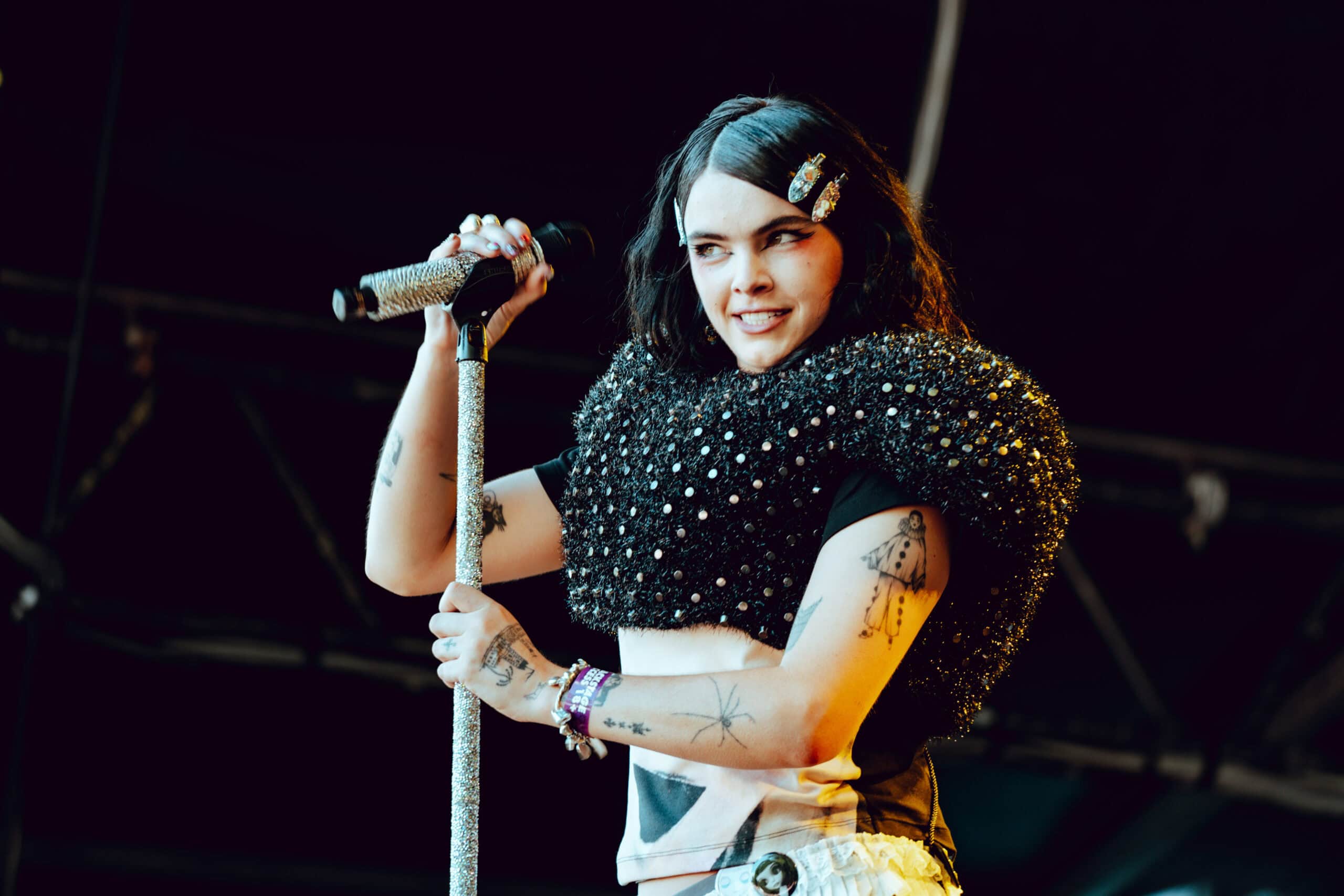 With jet black hair and a metallic spiked crop top, she moved across the stage with hyperactive energy and eccentric poses.