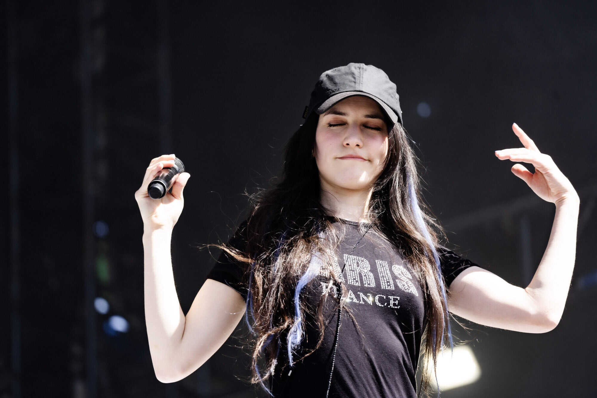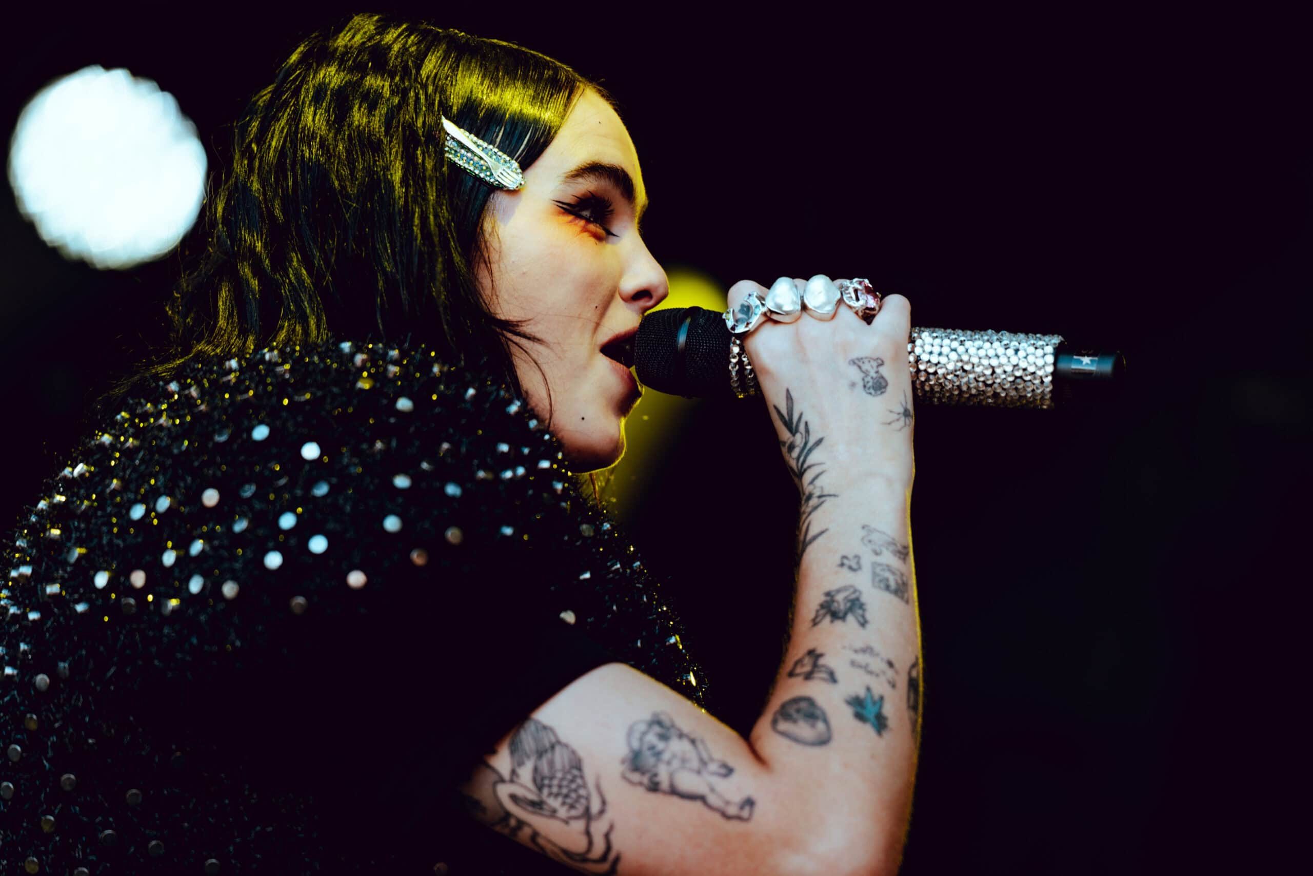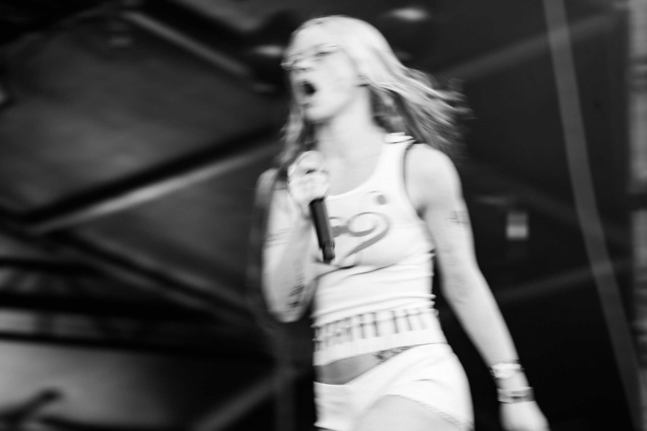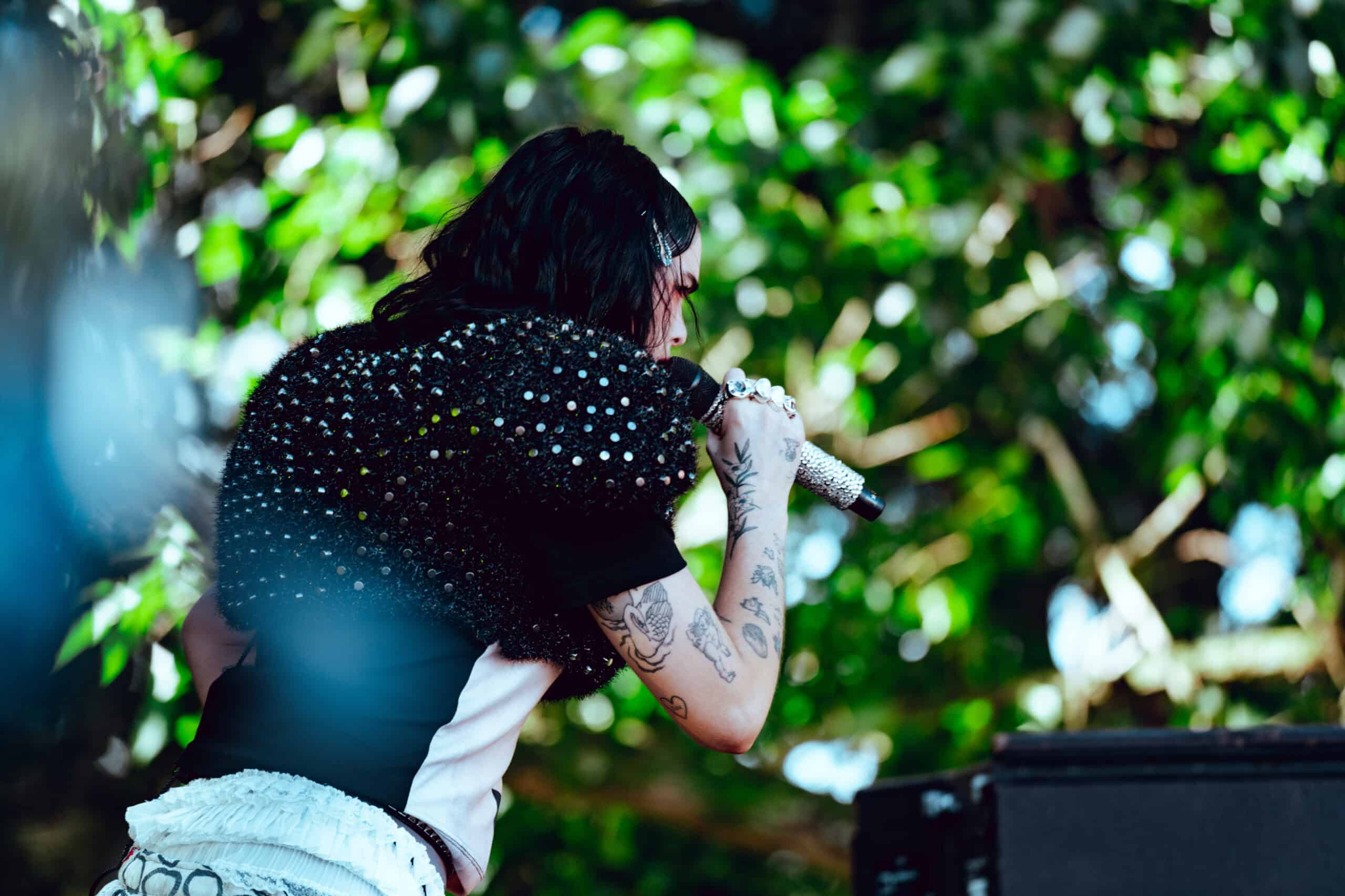 With jet black hair and a metallic spiked crop top, she moved across the stage with hyperactive energy and eccentric poses.