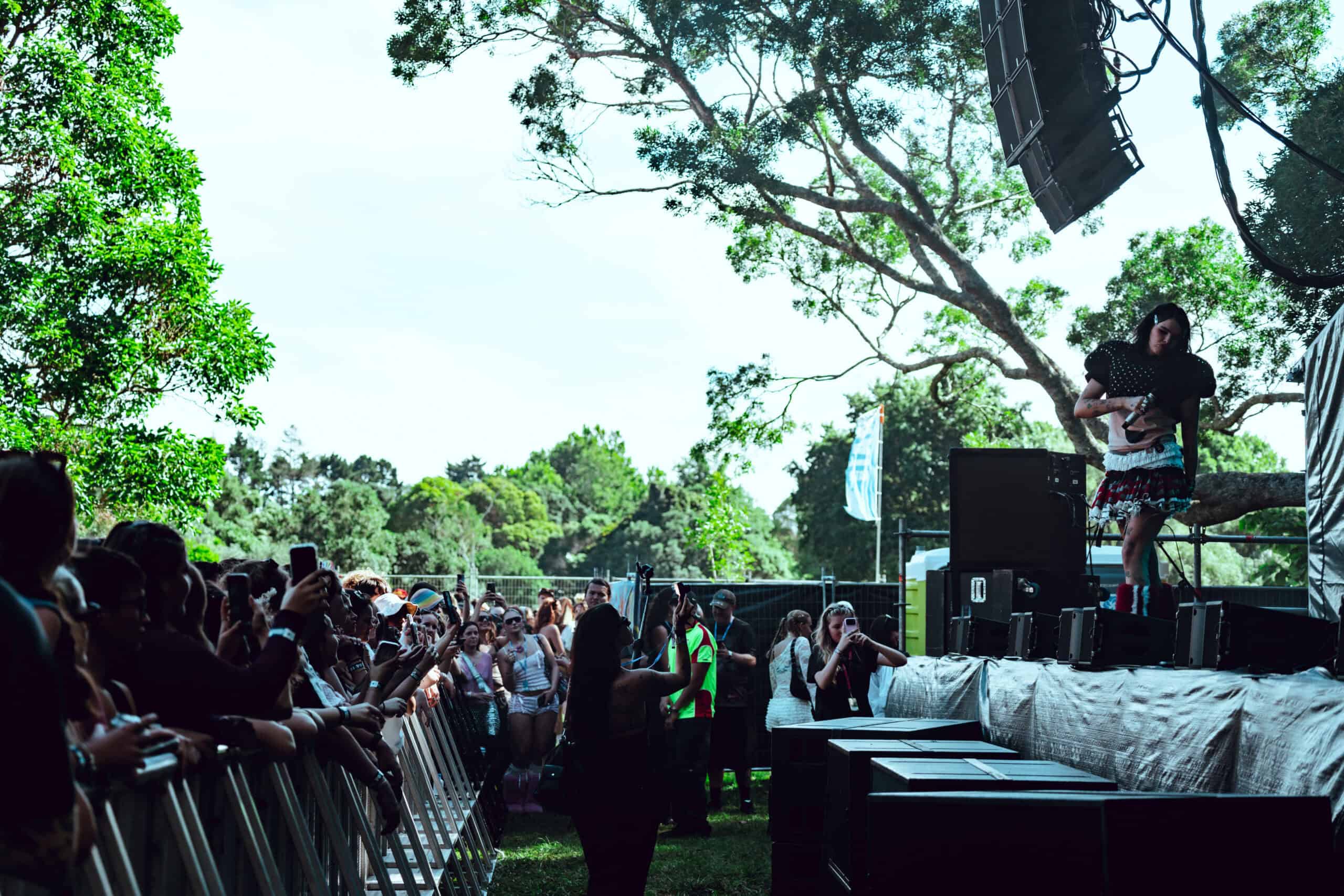 A mad dash back to the Harikoa stage was slowed by bottlenecked foot traffic. Benee was going hard when I arrived to a packed field.